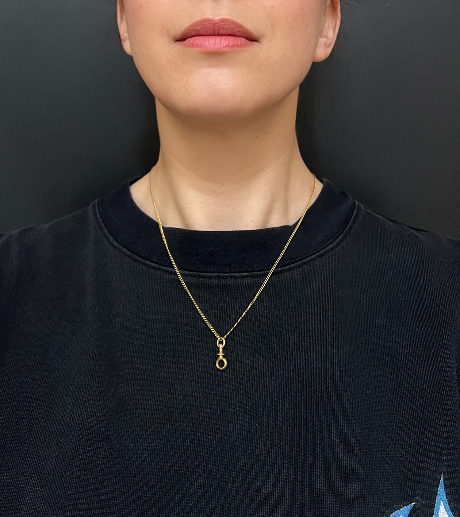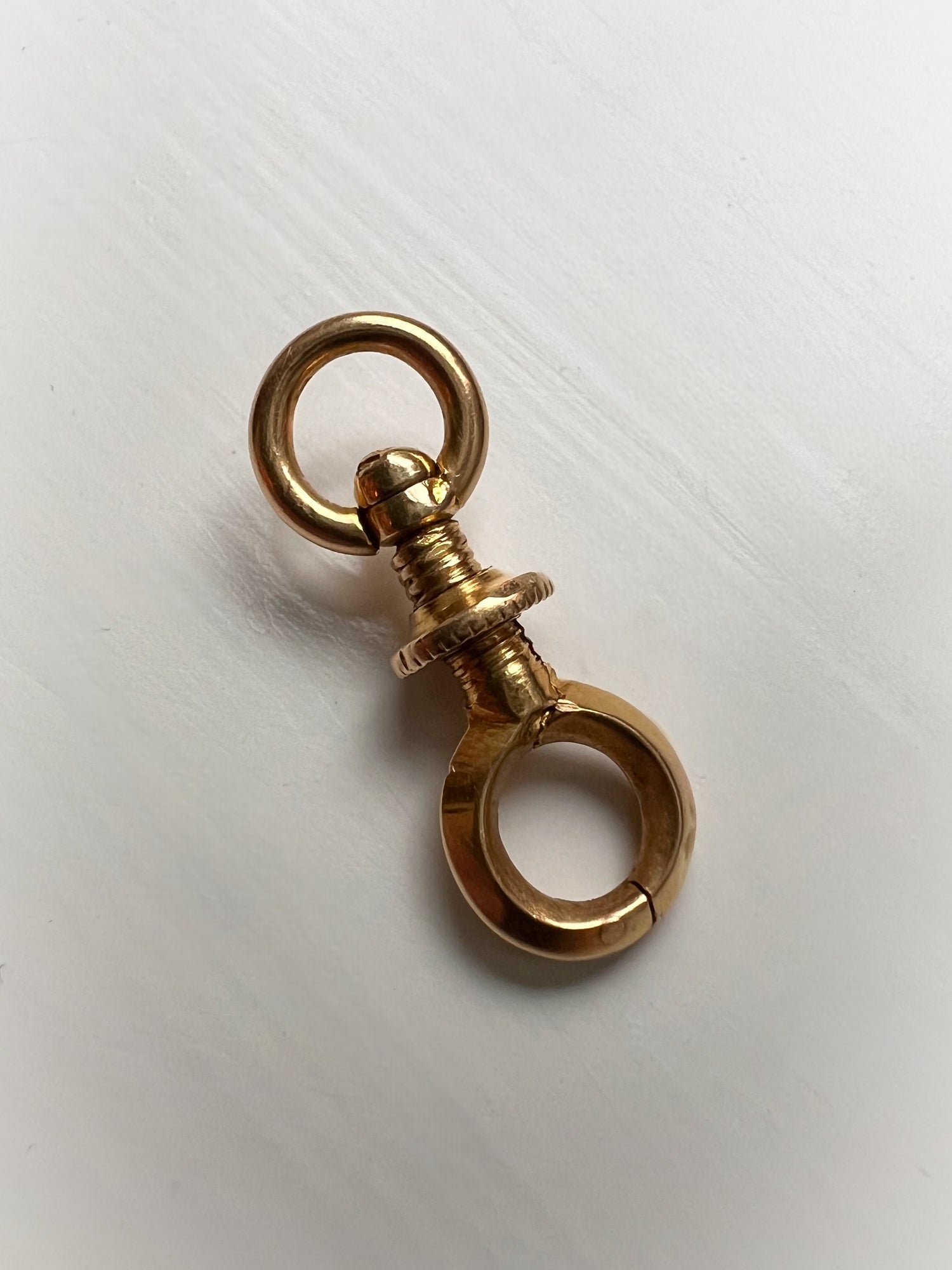The dog clip has the traditional French mechanism locking shut with a screw collar at the base.