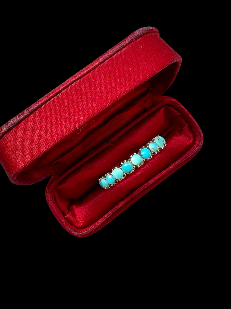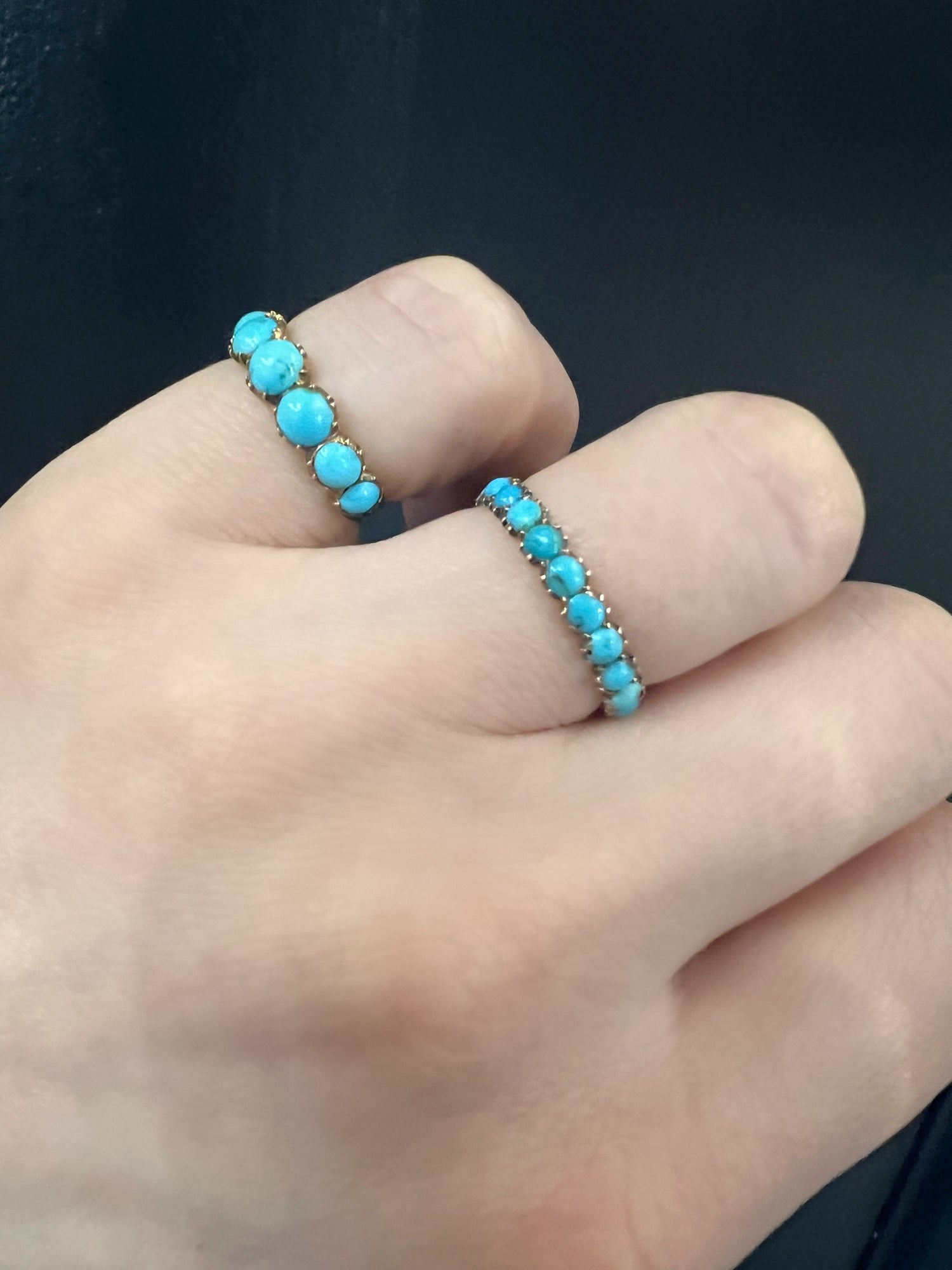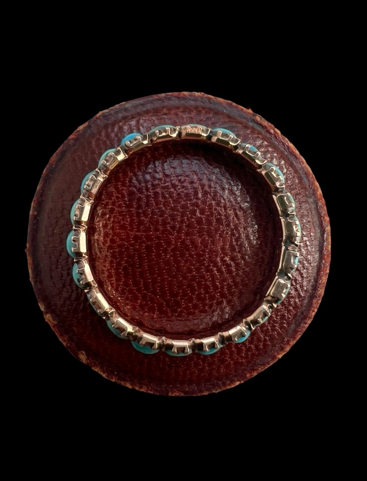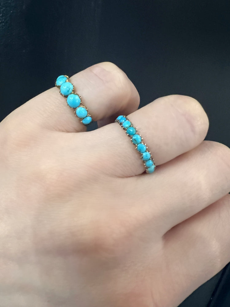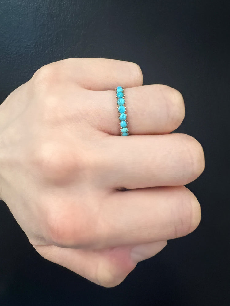 The Turquoise cabochons continue the entire way around the band, and have wonderful shades of blues and greens.