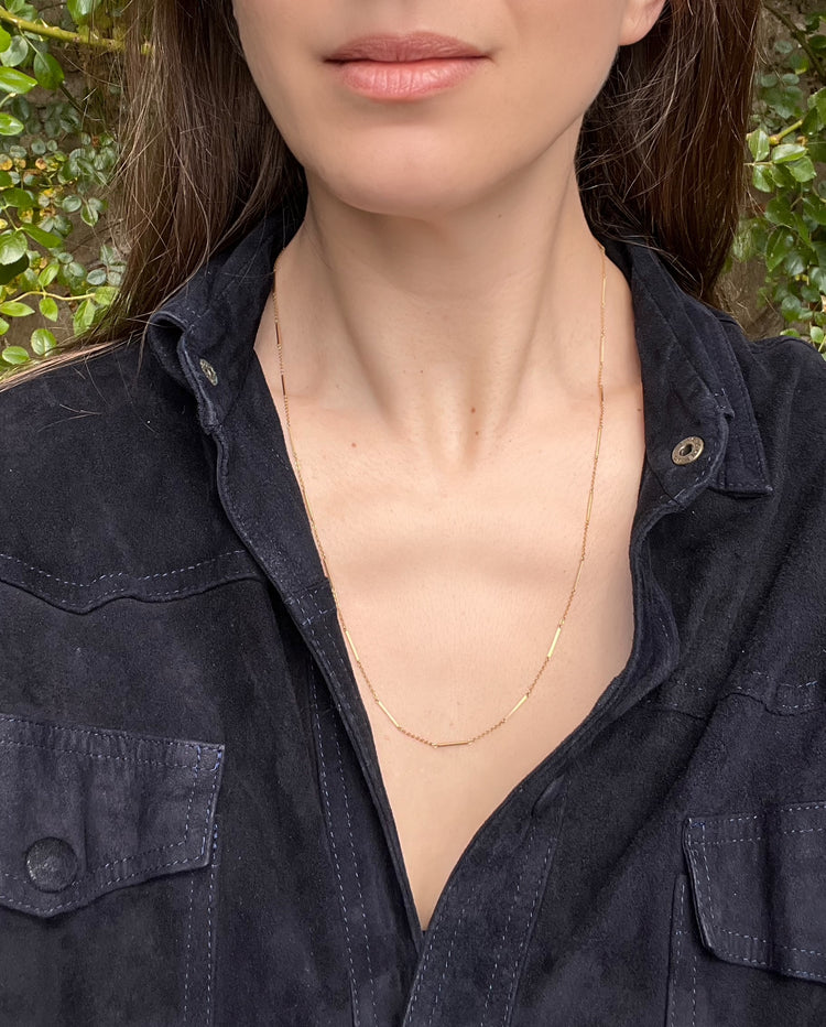 The clean lines of the bar links make the chain look super modern. And the catch light beautifully.