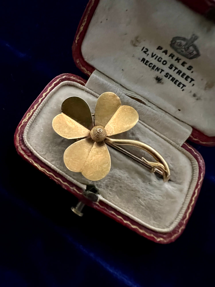 ANTIQUE 15CT GOLD CLOVER BROOCH