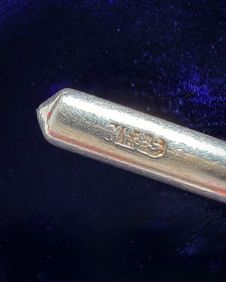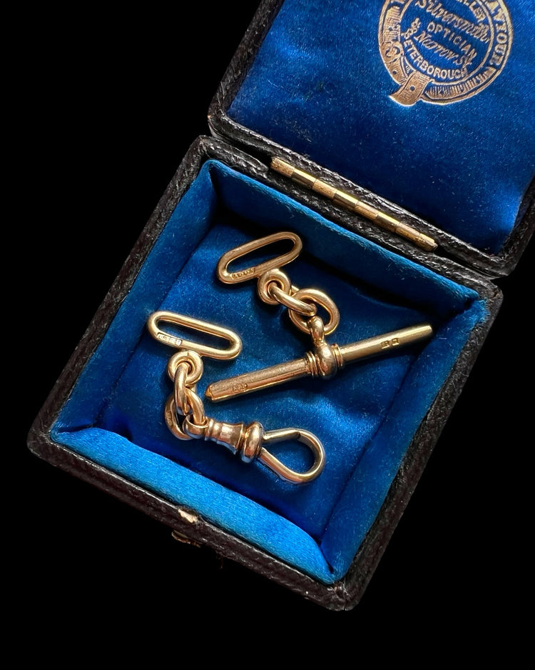 The tbar is also hallmarked for 18ct gold and has the makers mark ‘HF&S’.