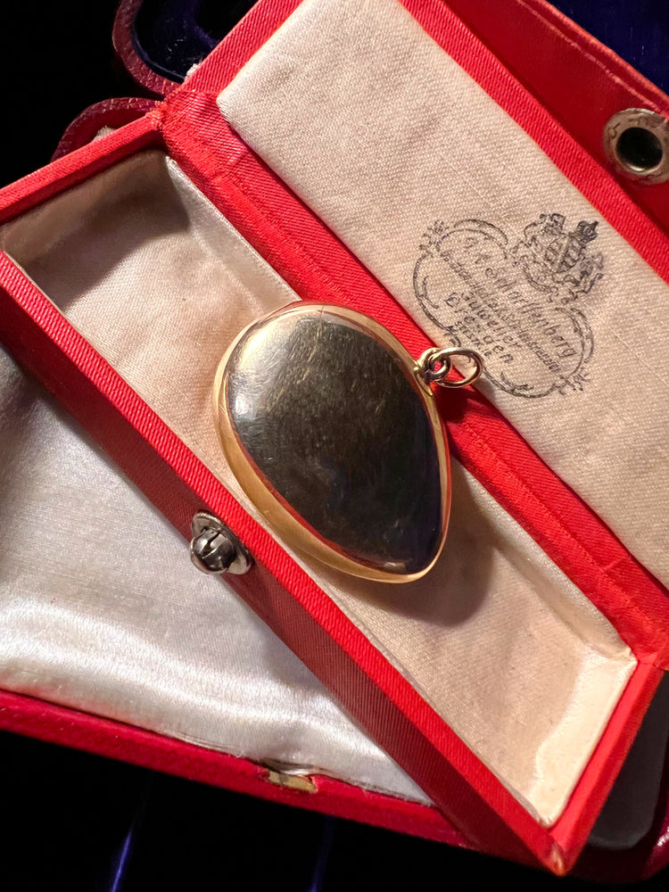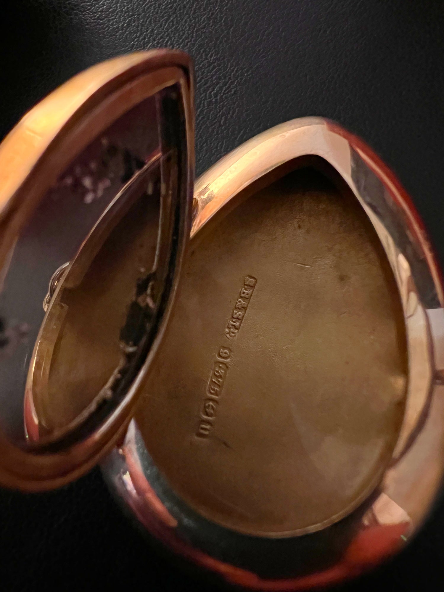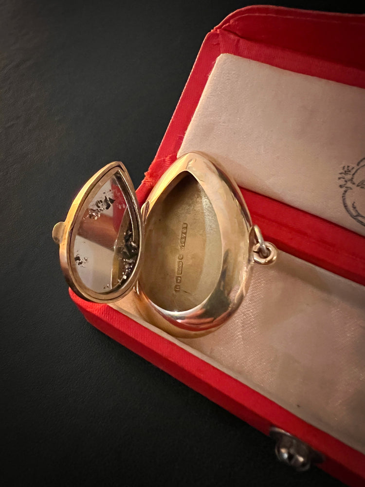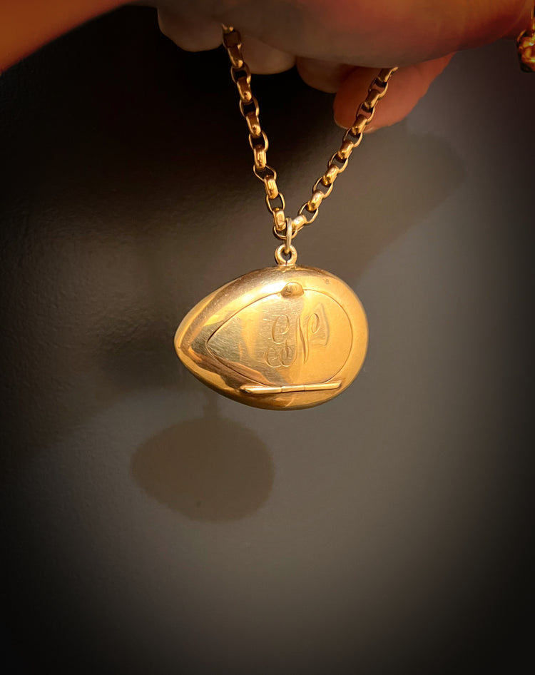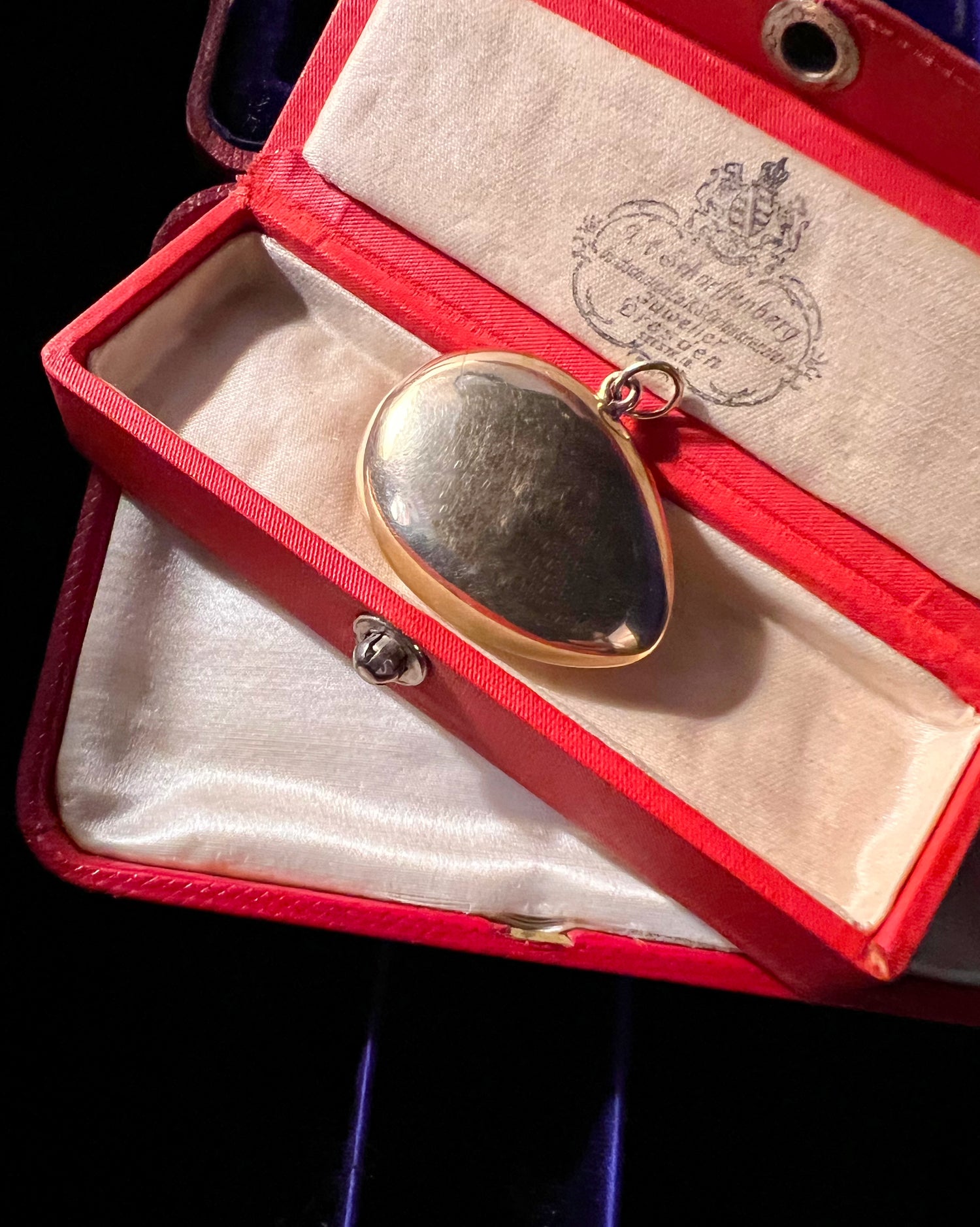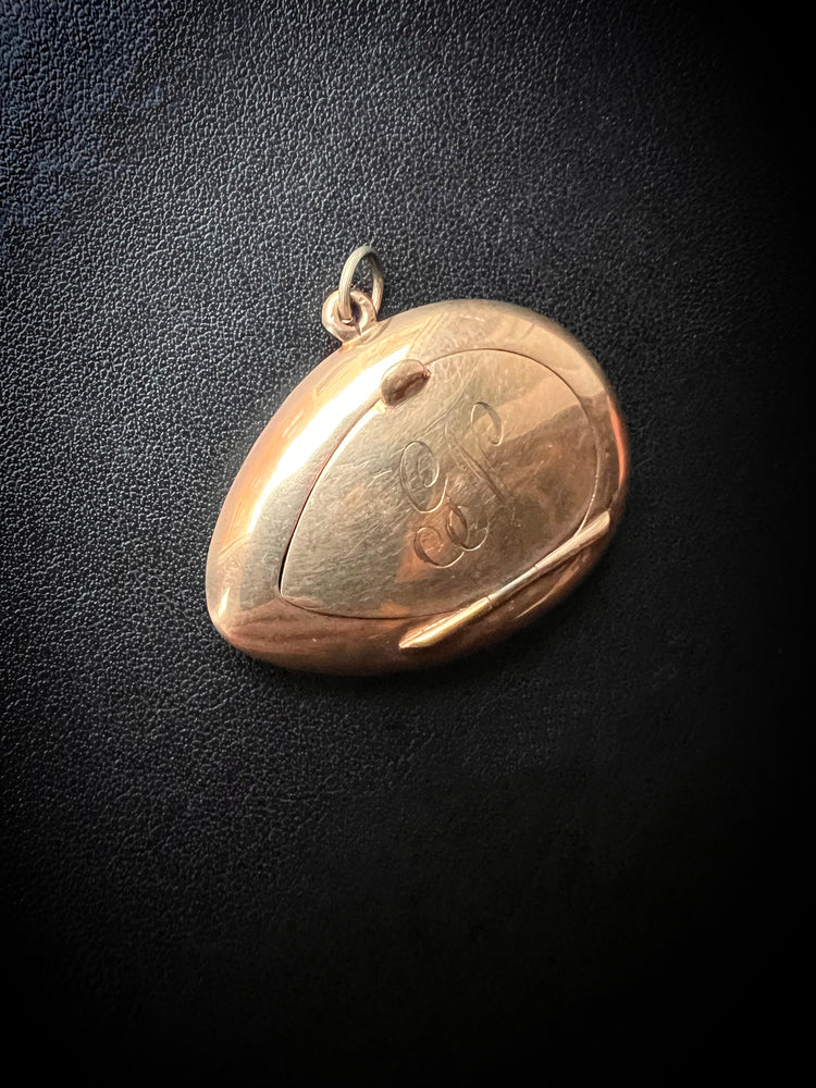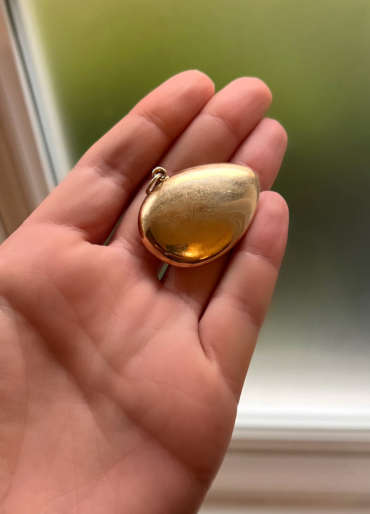 This is a super unique antique 9ct gold egg pendant with a storage locket.