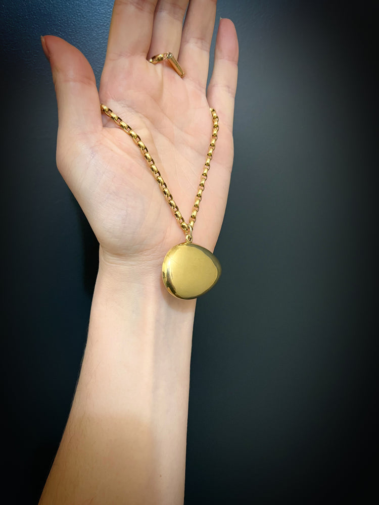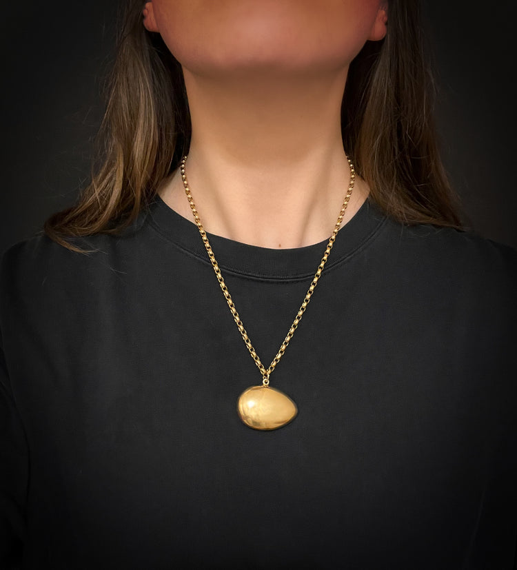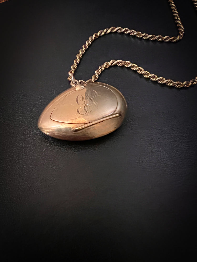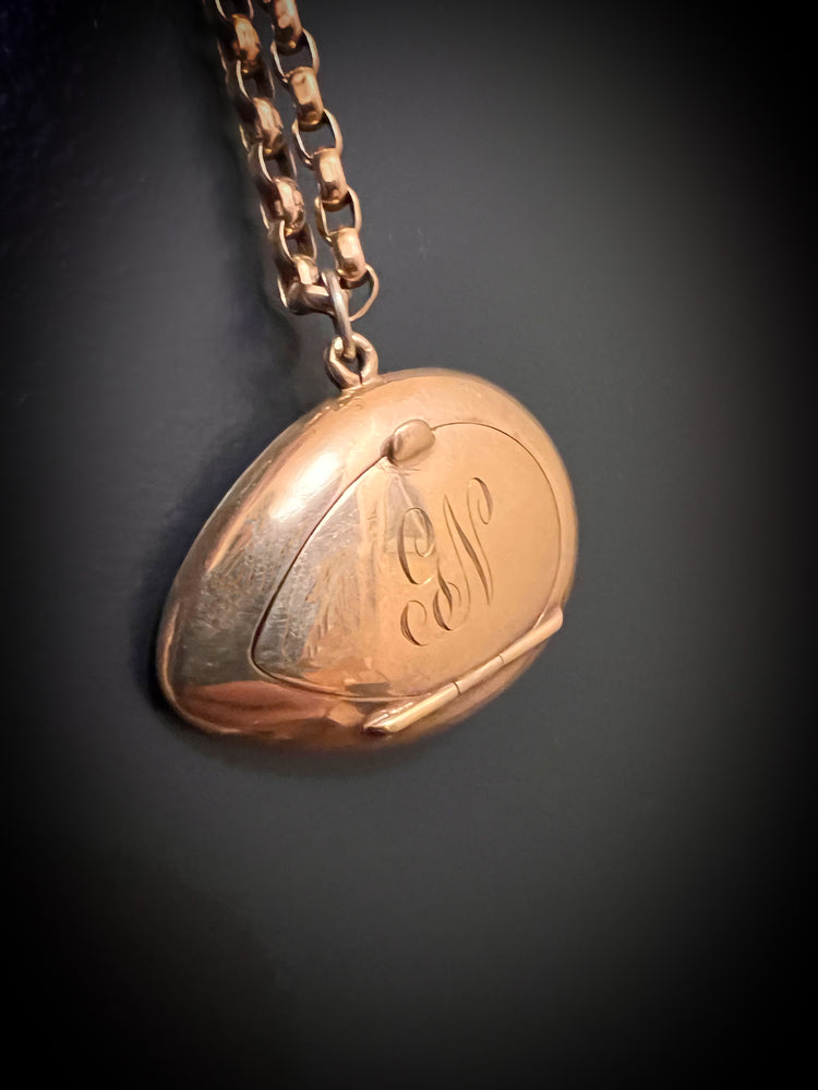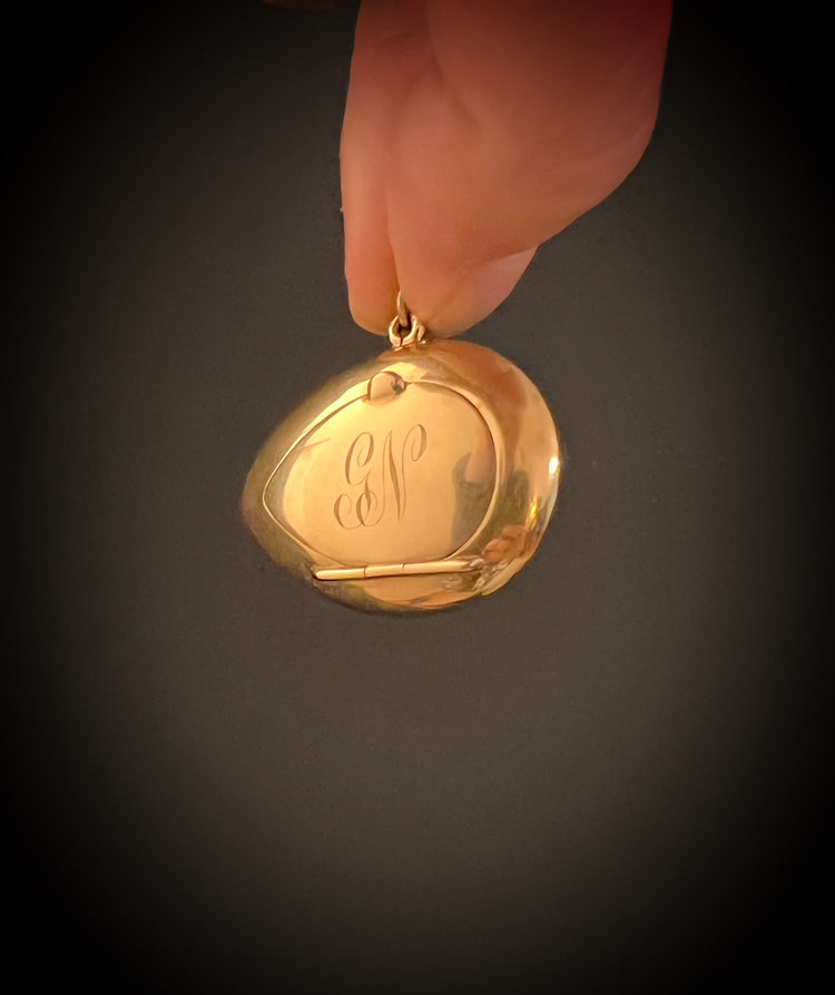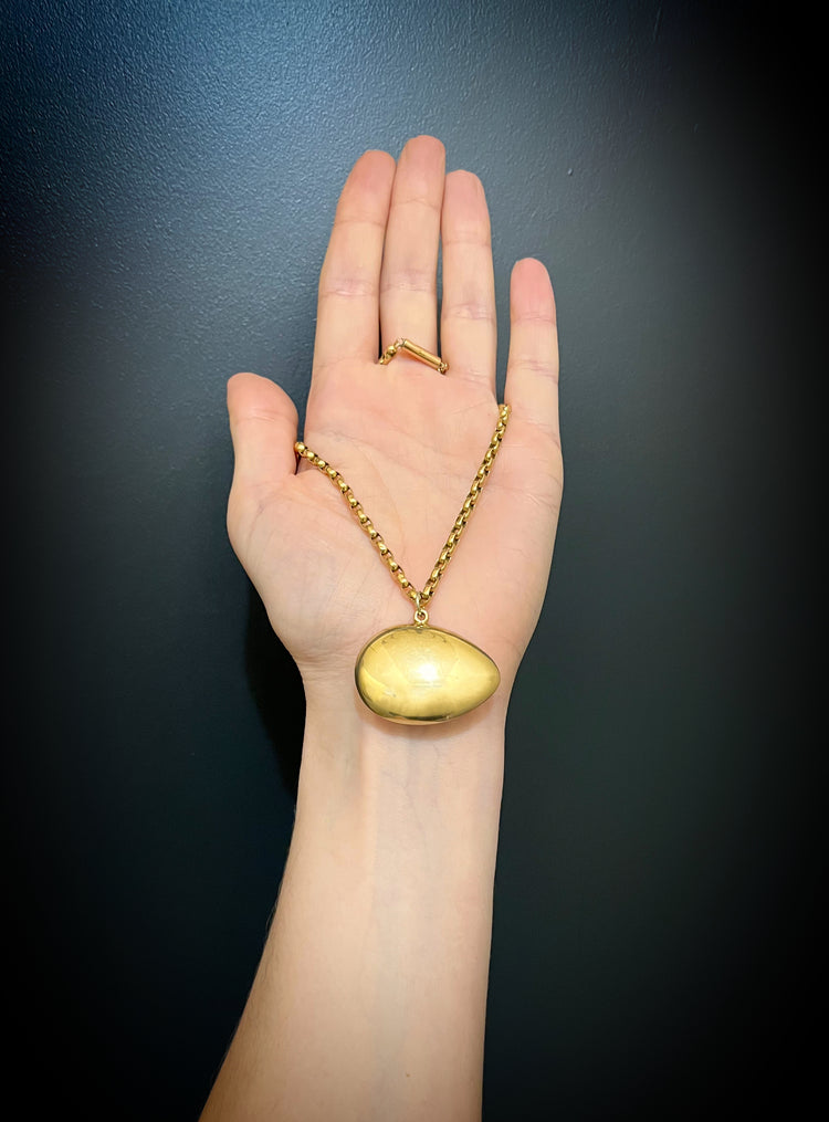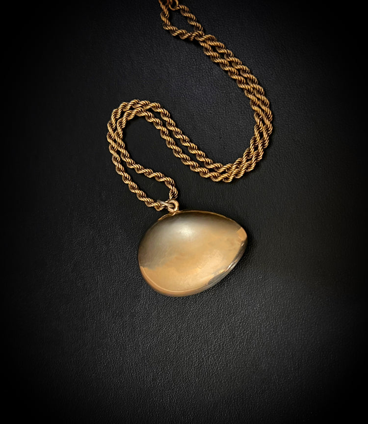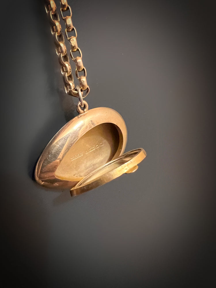 This is a super unique antique 9ct gold egg pendant with a storage locket.