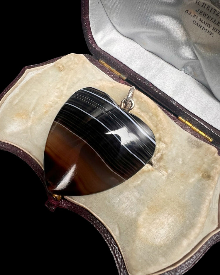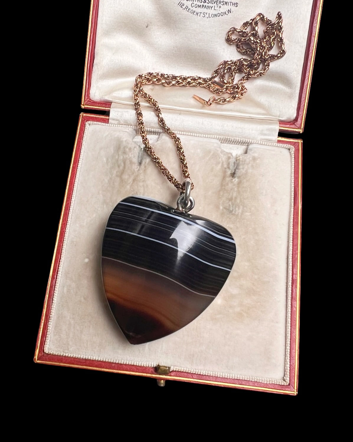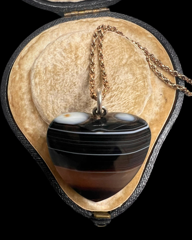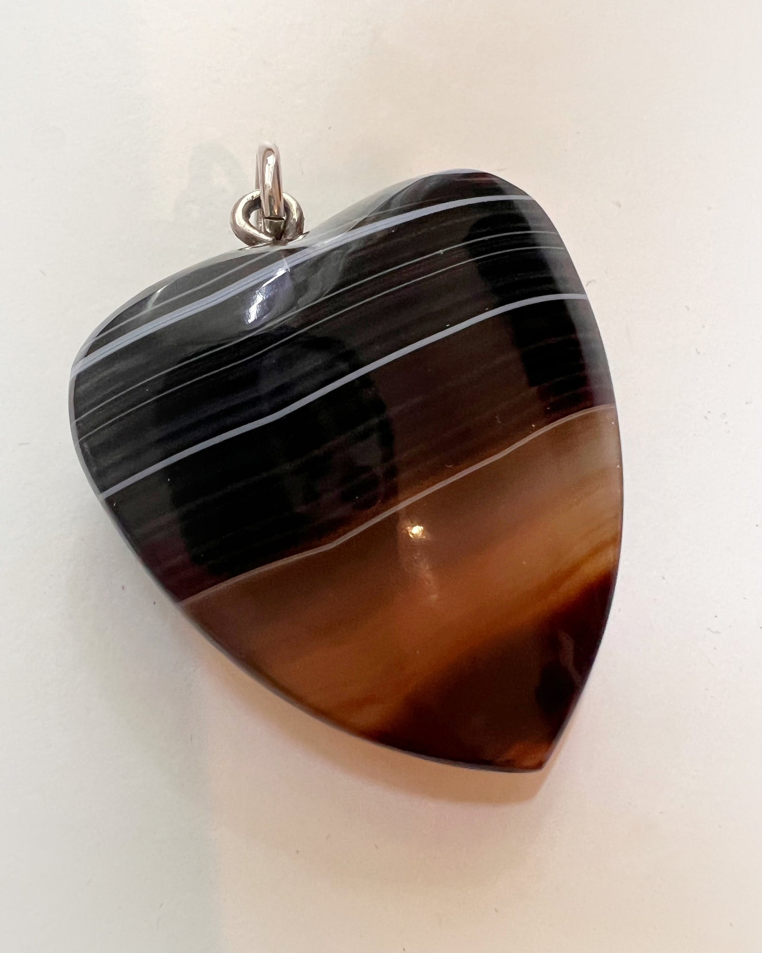 ANTIQUE HUGE BANDED AGATE HEART PENDANT