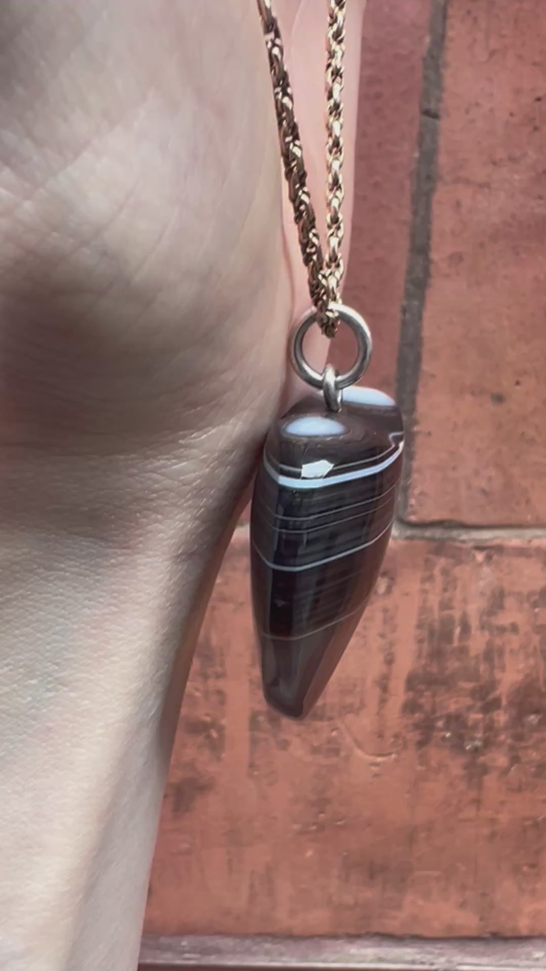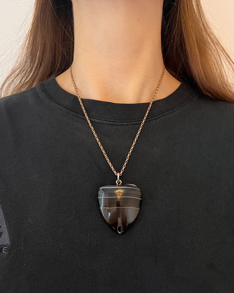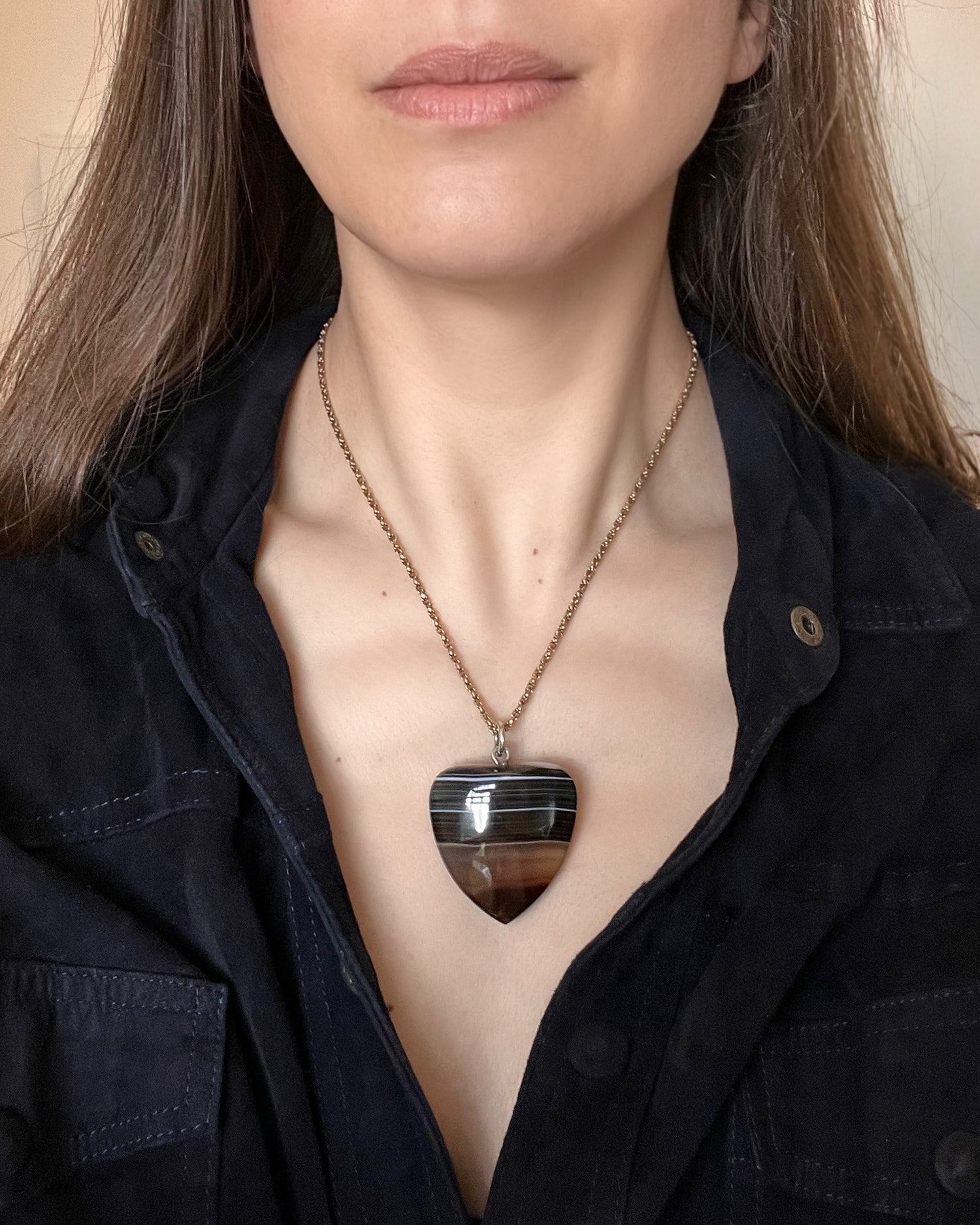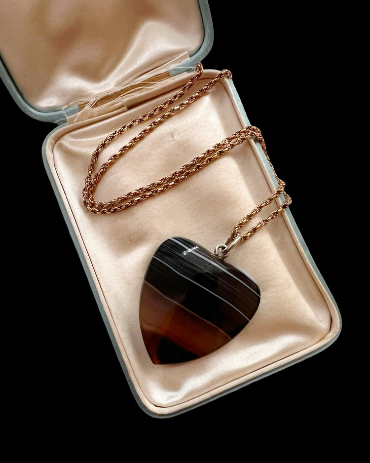 ANTIQUE HUGE BANDED AGATE HEART PENDANT