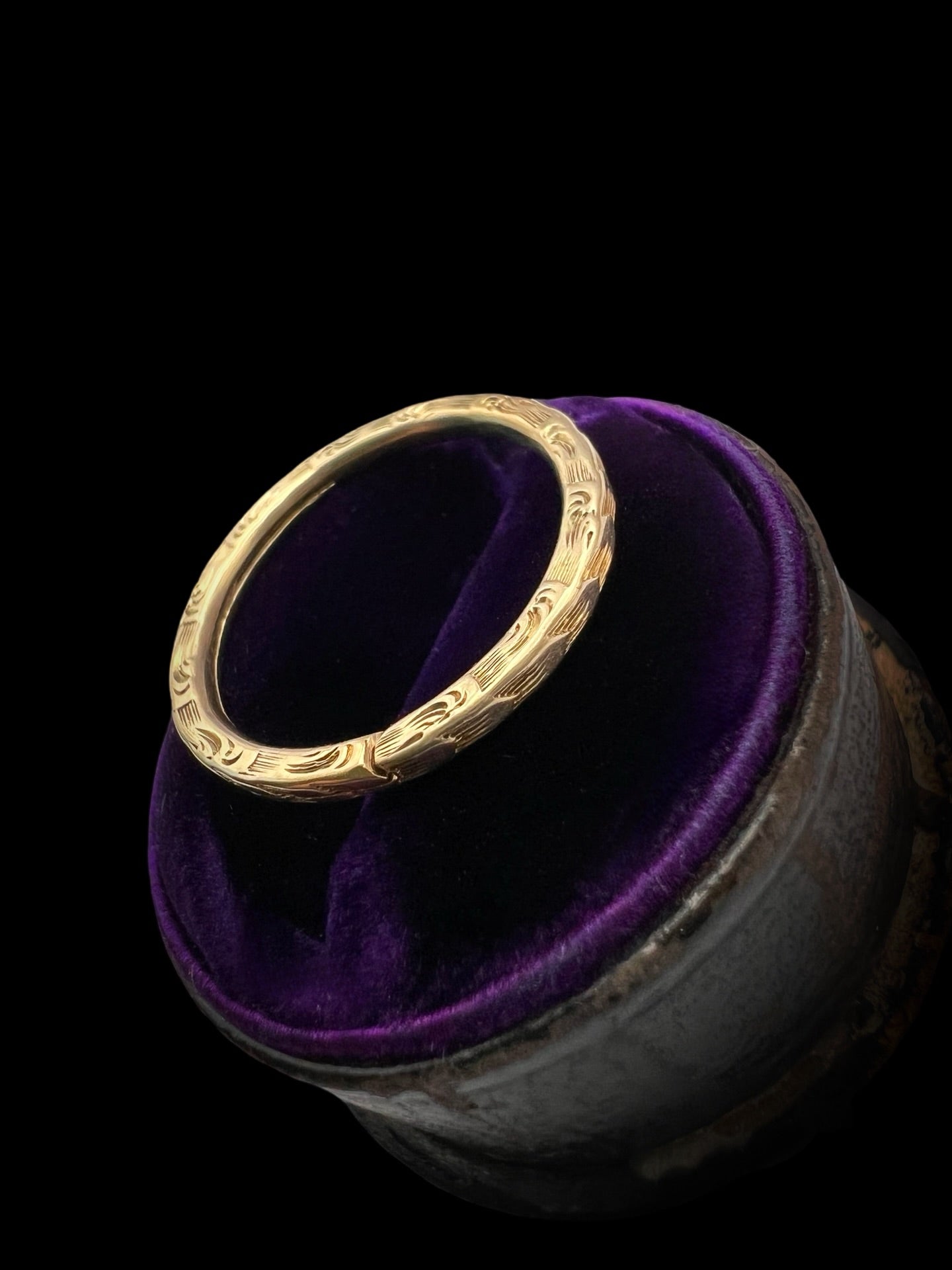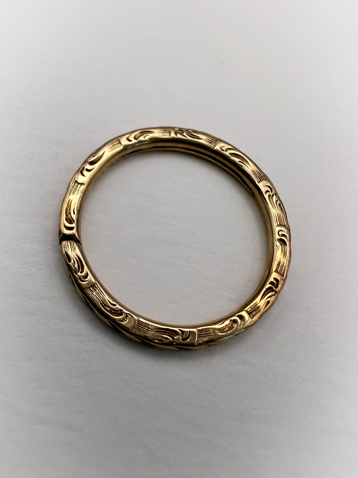 The ring is made of 15ct gold with lovely chasing detail all over.