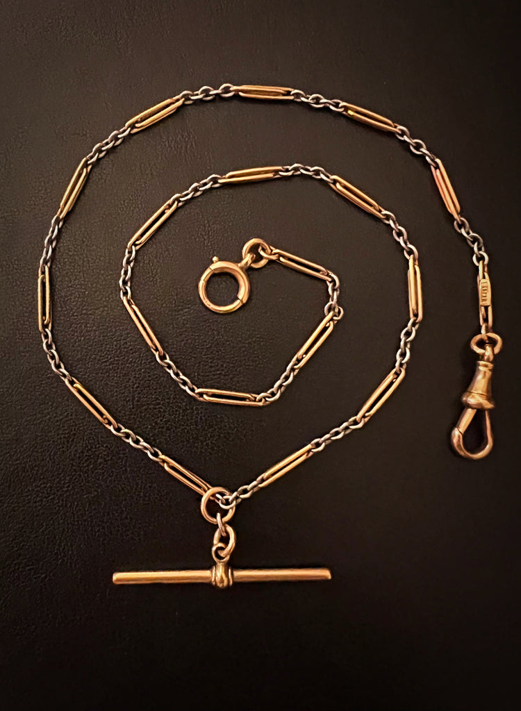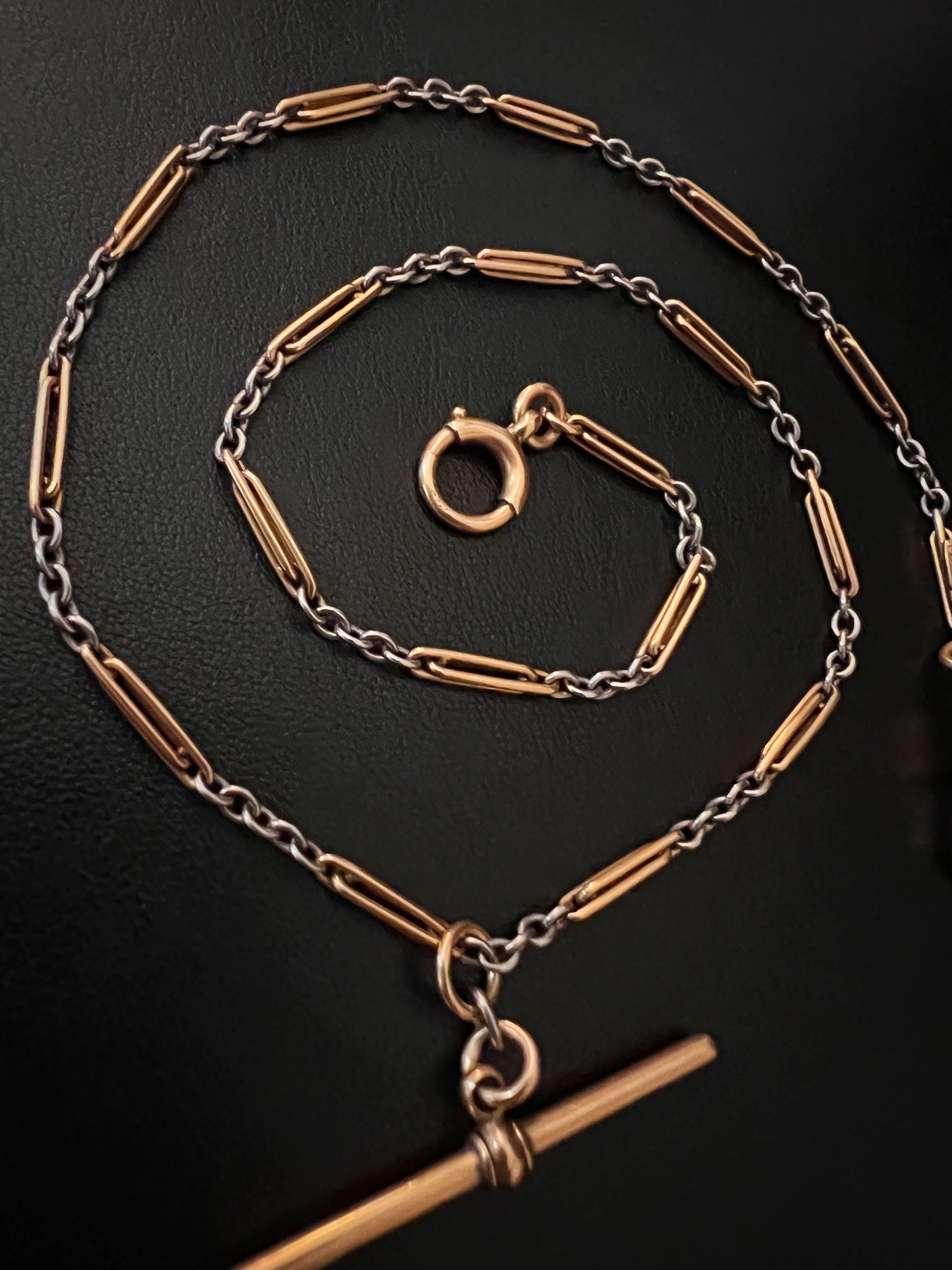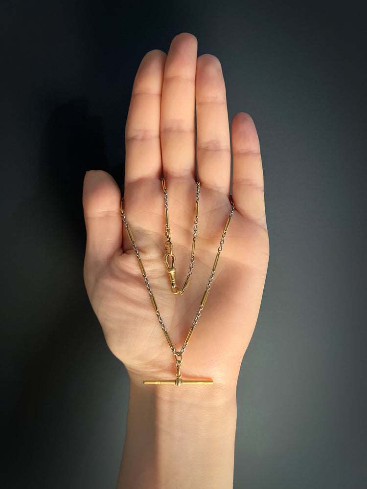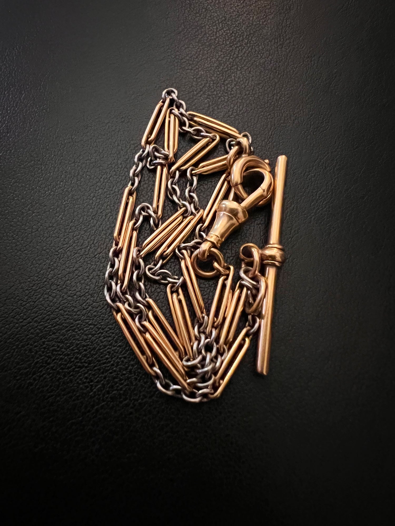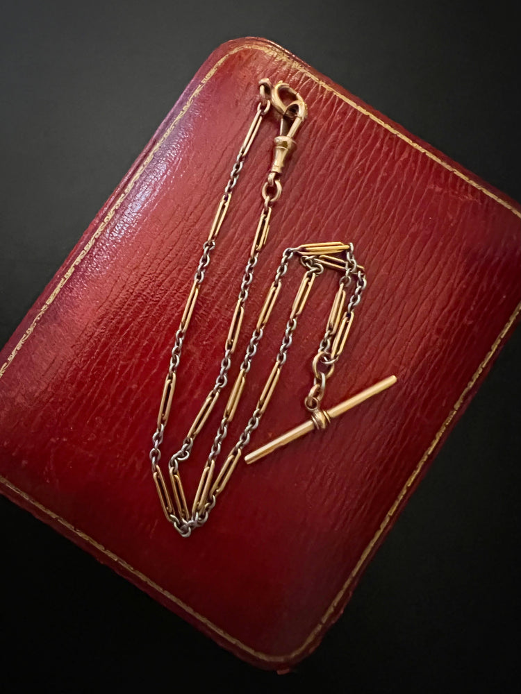 ANTIQUE PLATINUM & 18CT GOLD ALBERT CHAIN