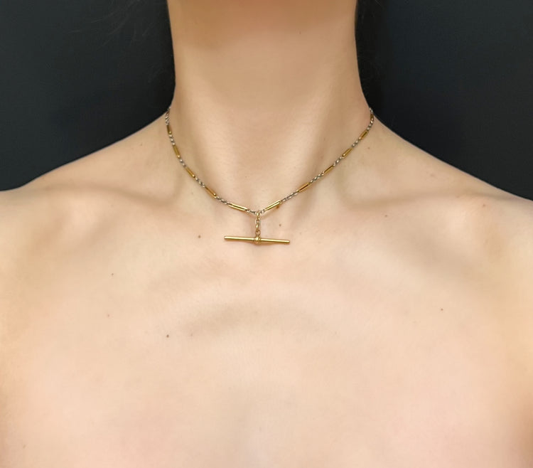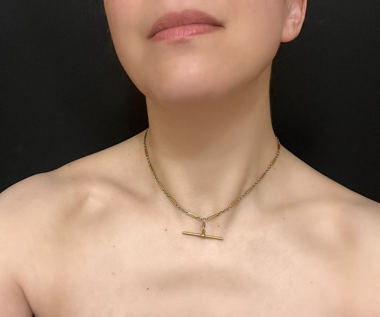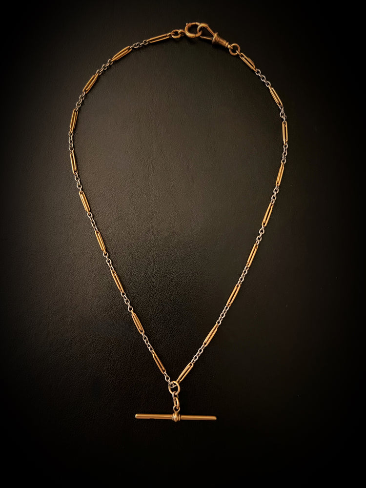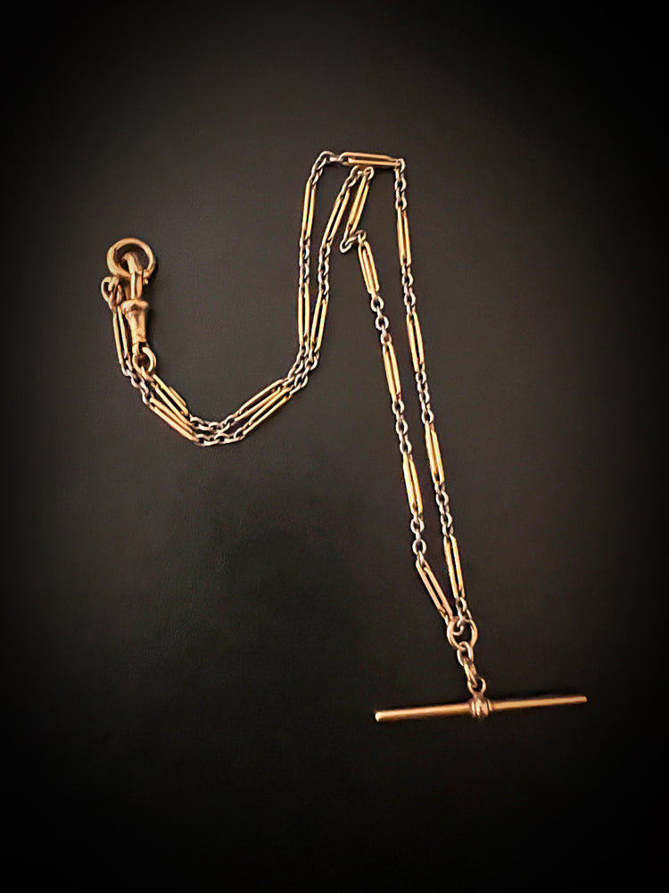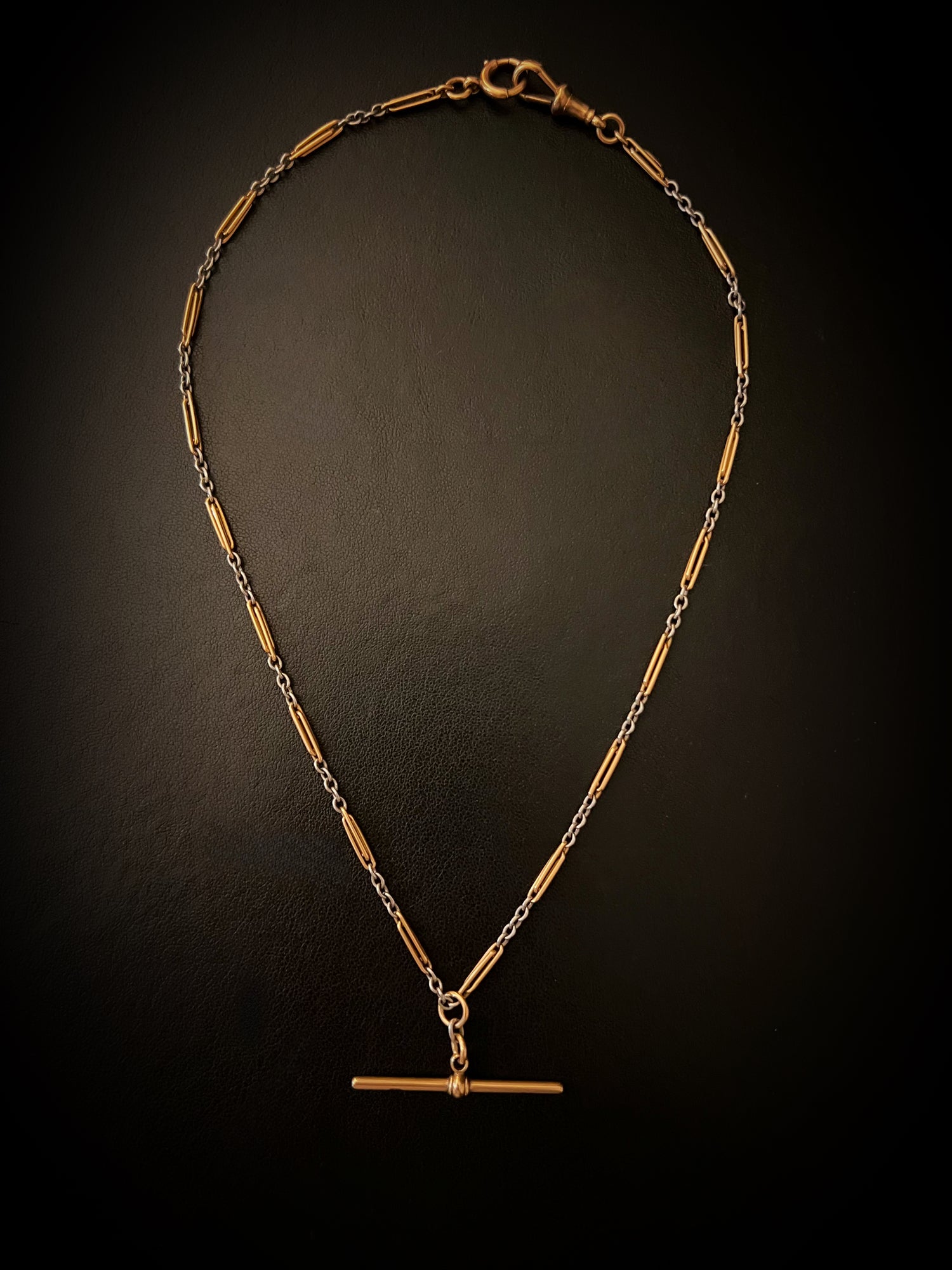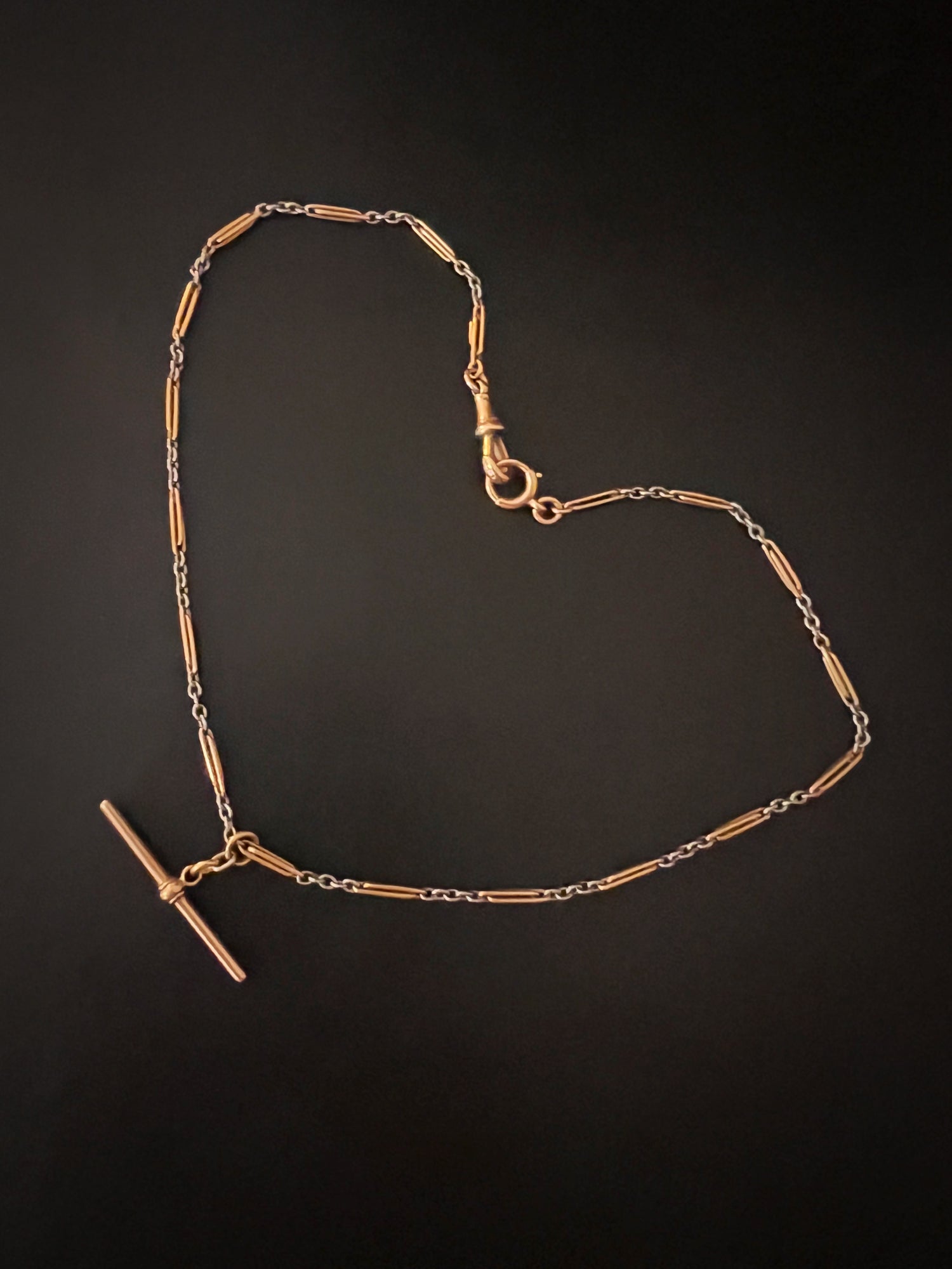ANTIQUE PLATINUM & 18CT GOLD ALBERT CHAIN