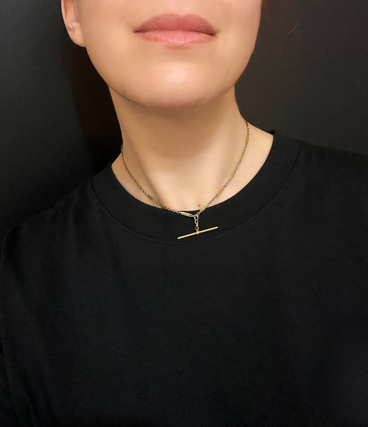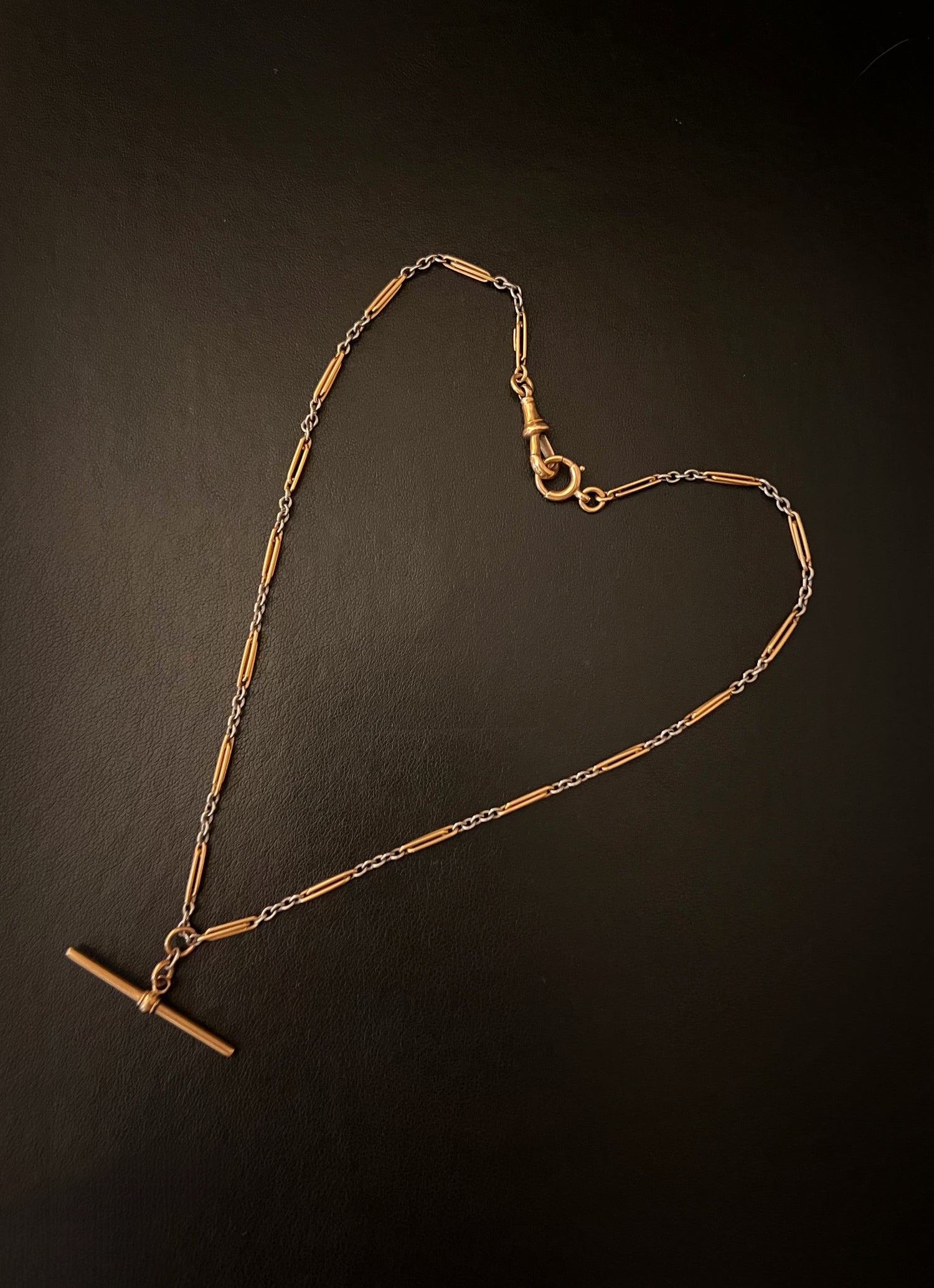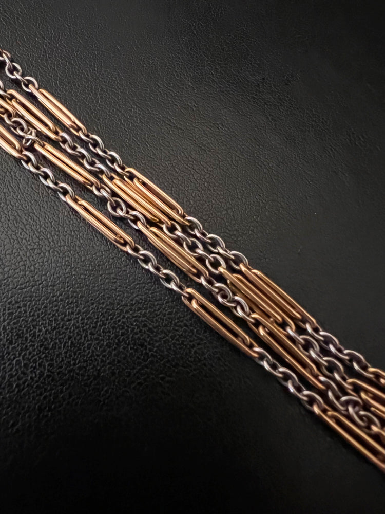 This chain is so elegant when worn, it has 18ct gold trombone links alternating with platinum fine belcher links.