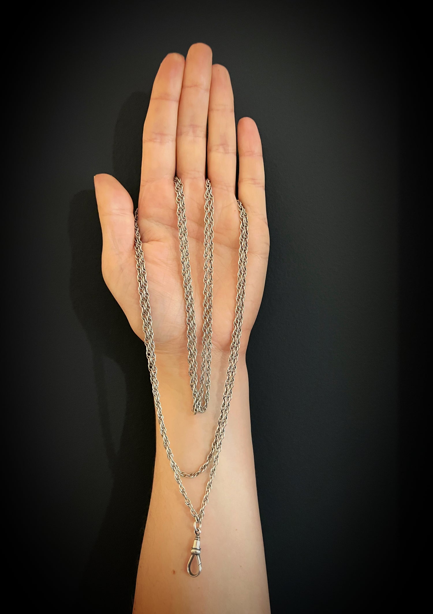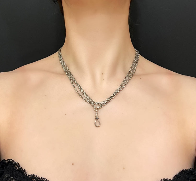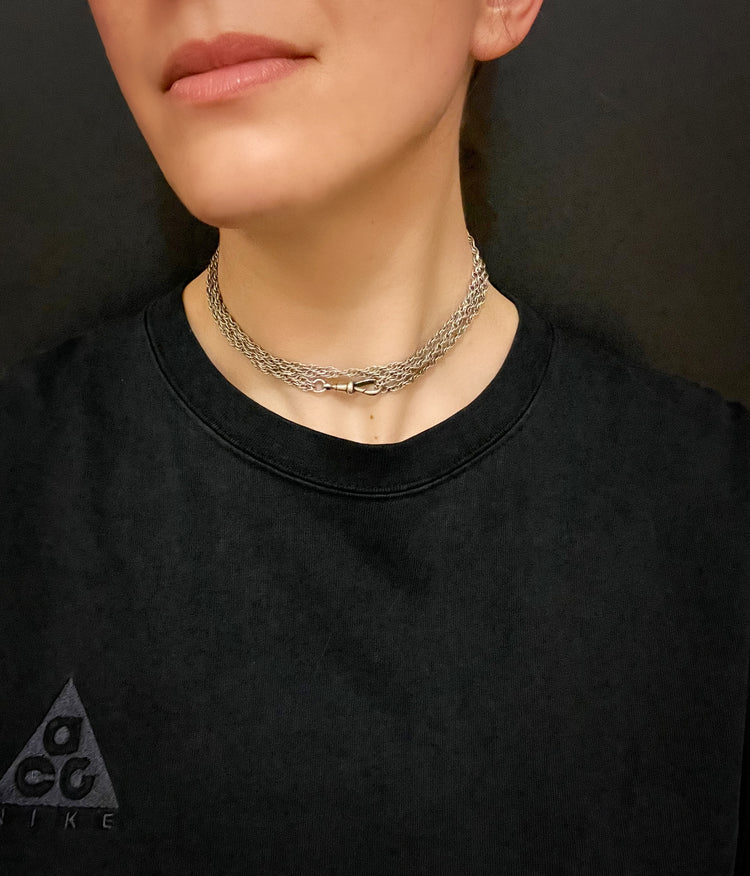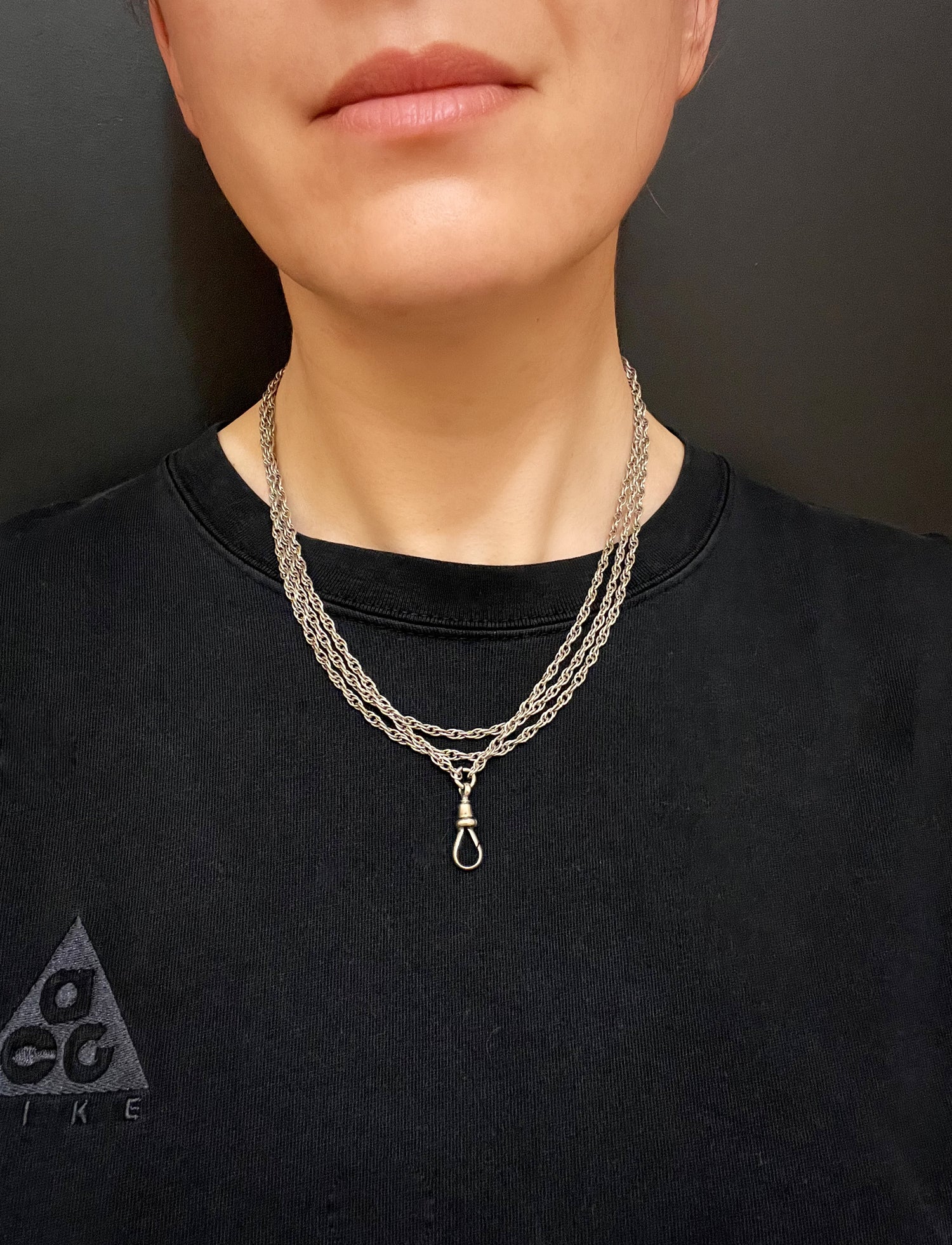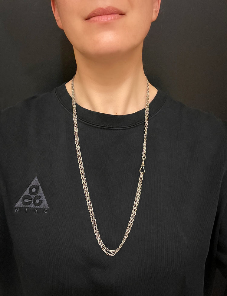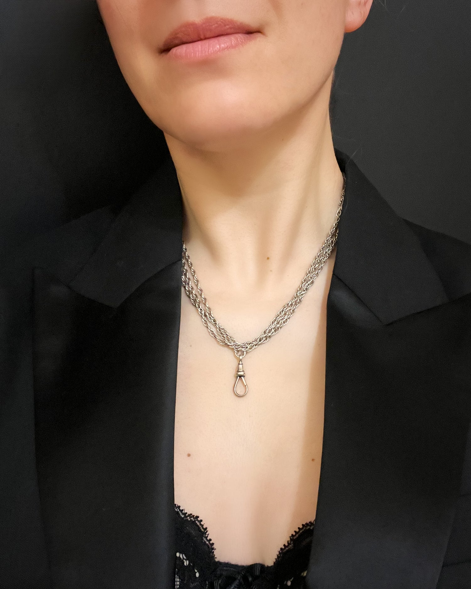 A gorgeous twisted multi-link silver chain with a suspended chunky dog clip.