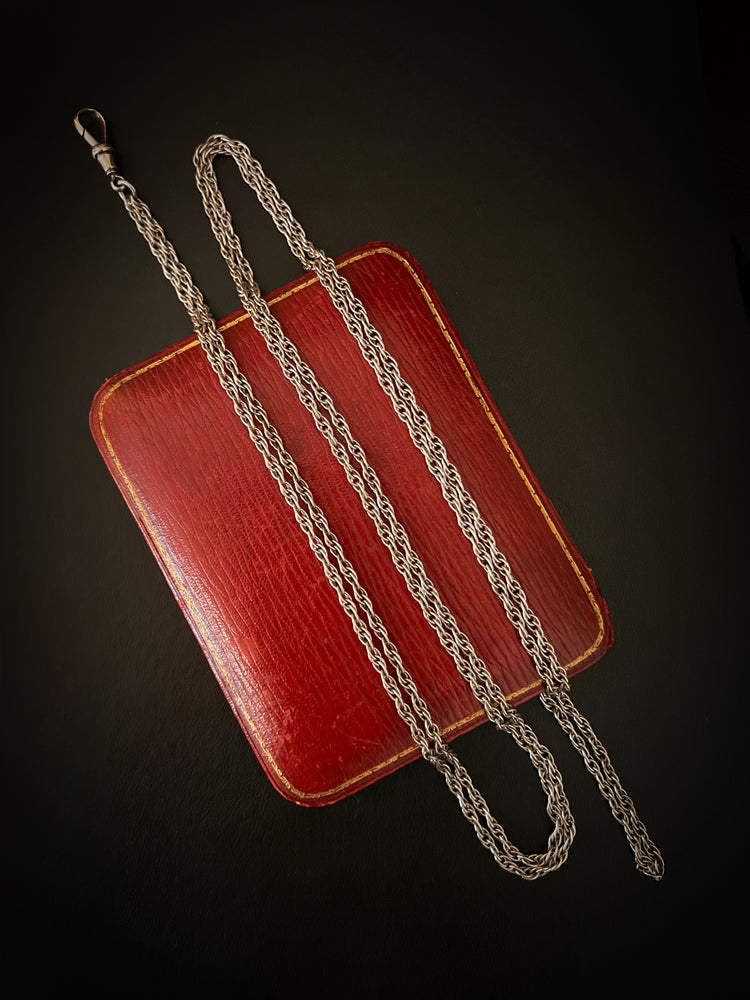 The chain is circa 1900, and bares the makers mark ‘SS’ on the dog clip.