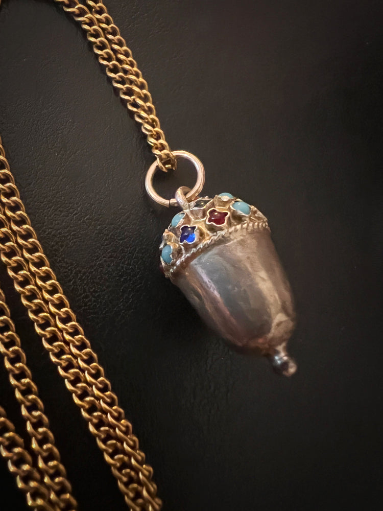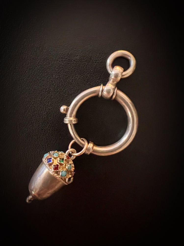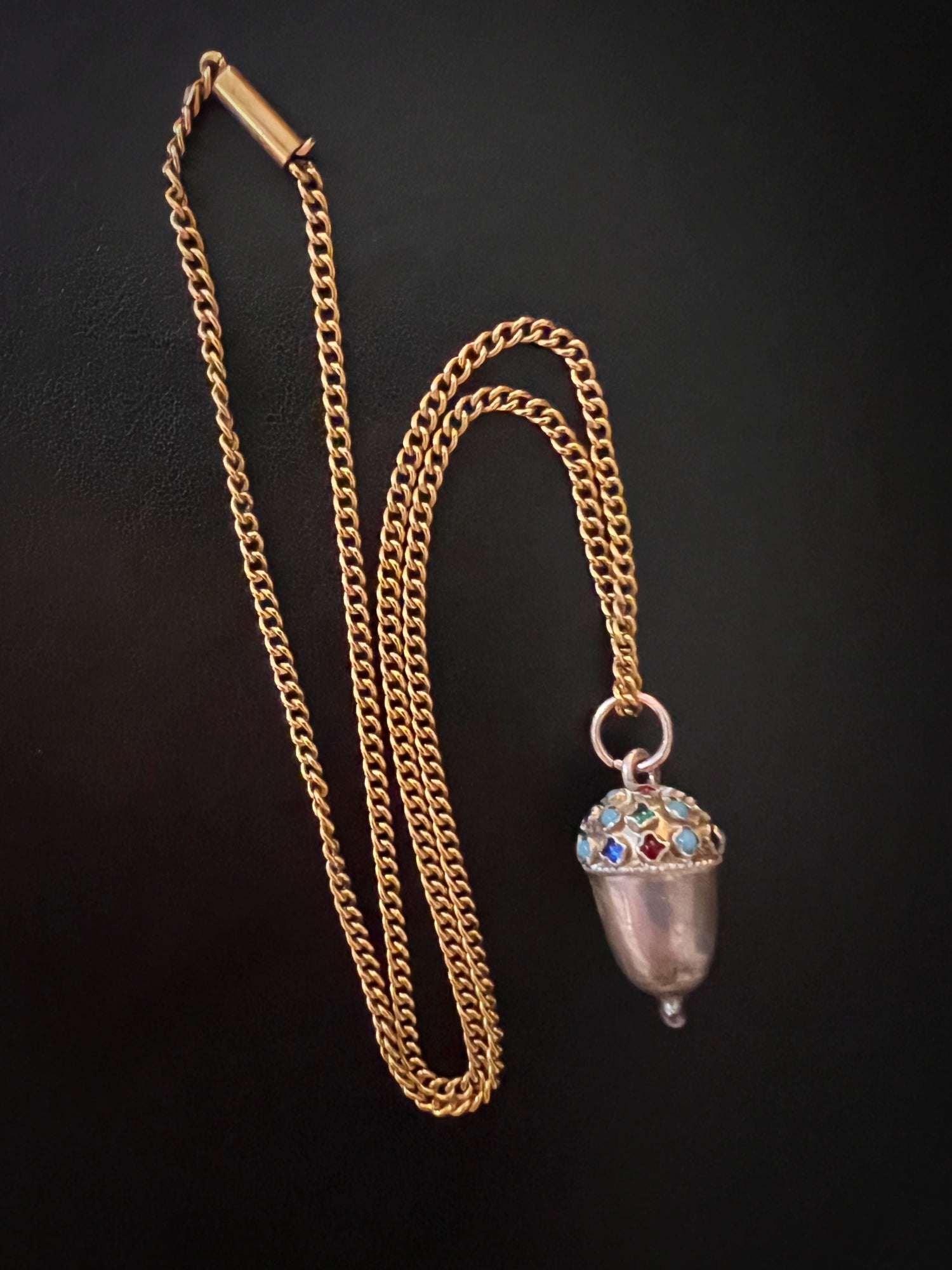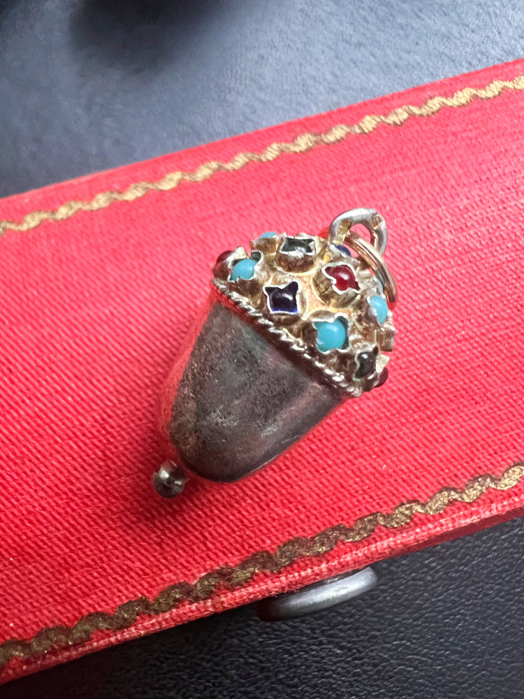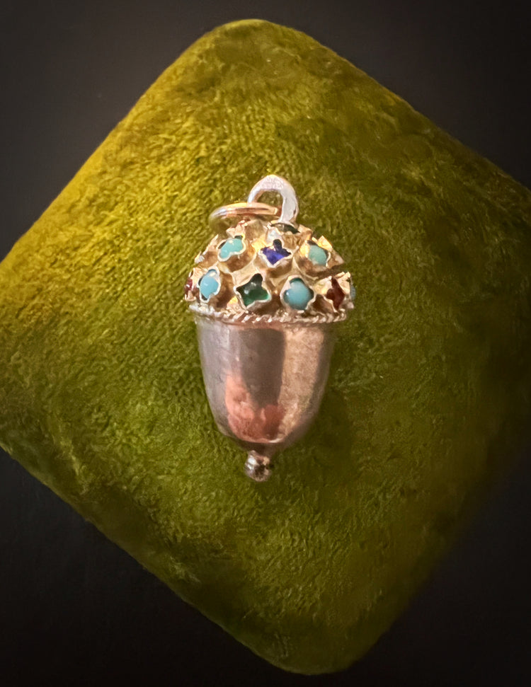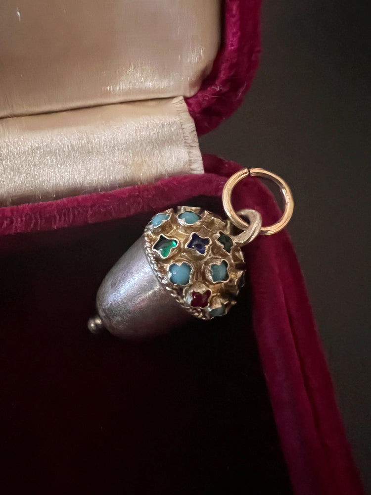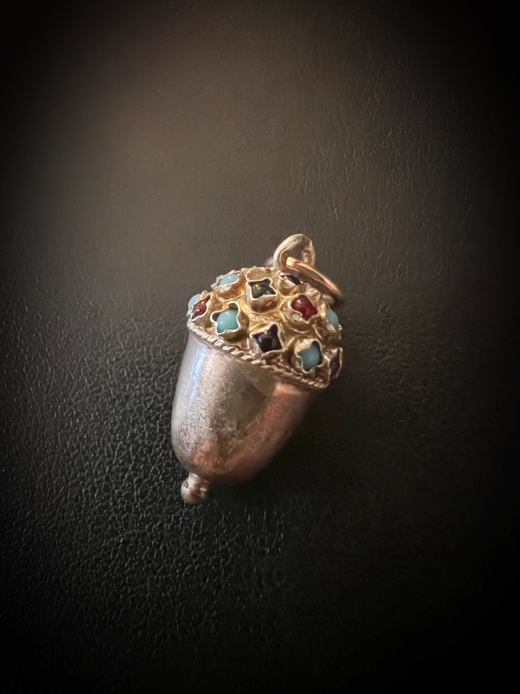 A super cool silver acorn pendant with a multigem Sputnik top.
