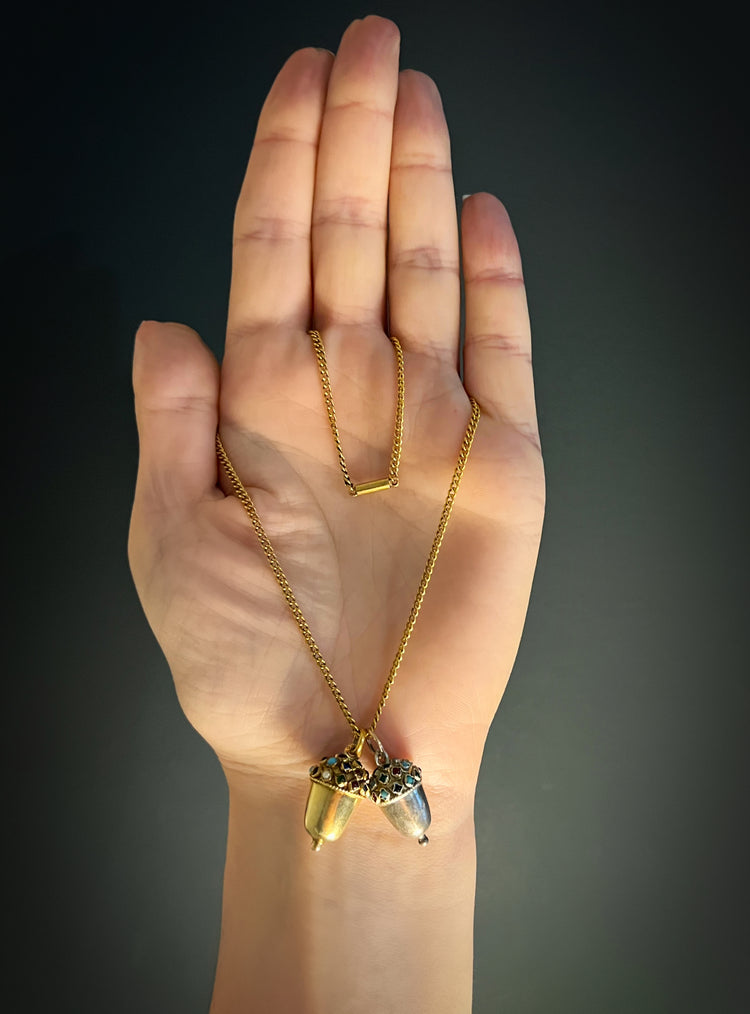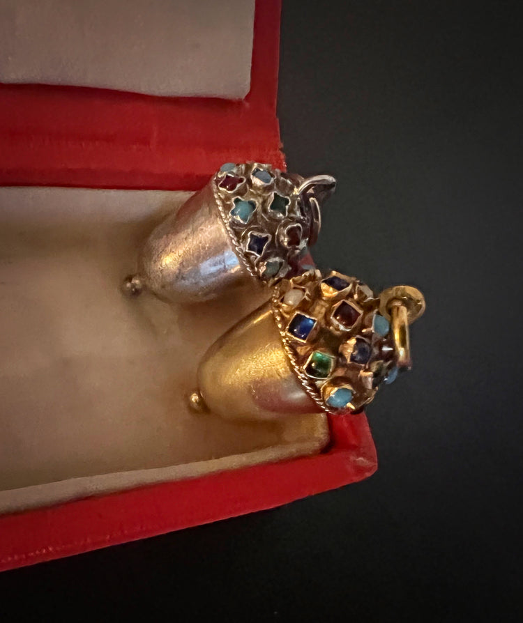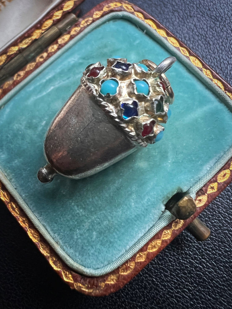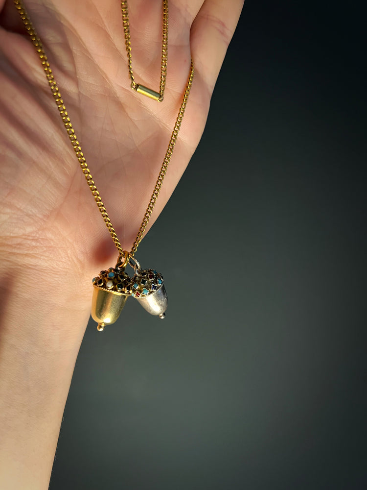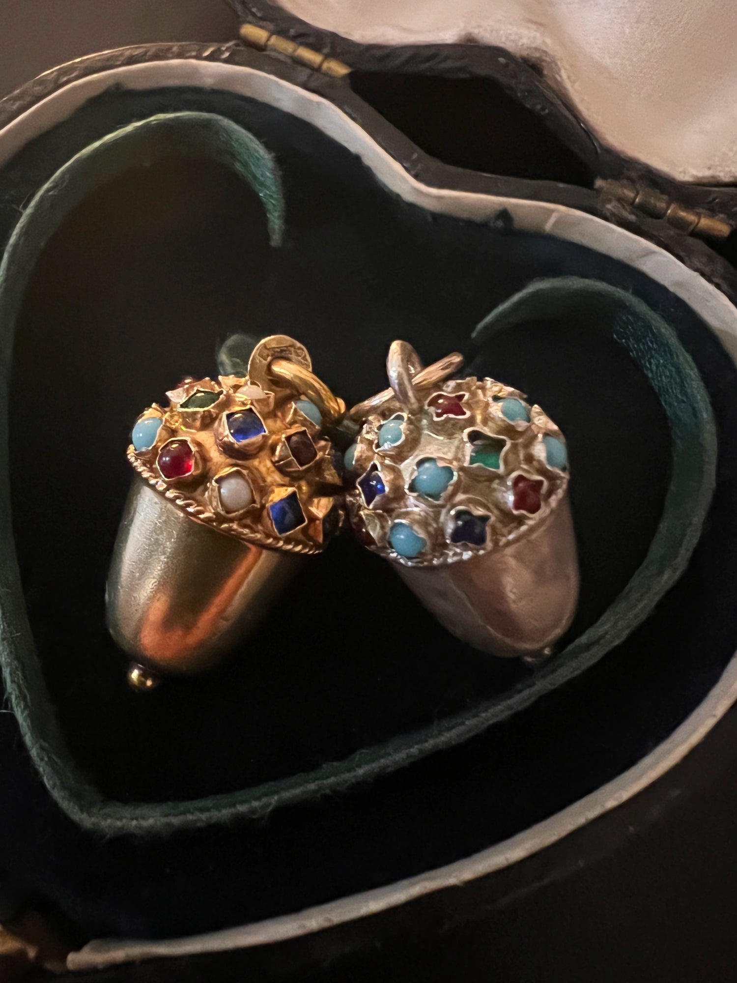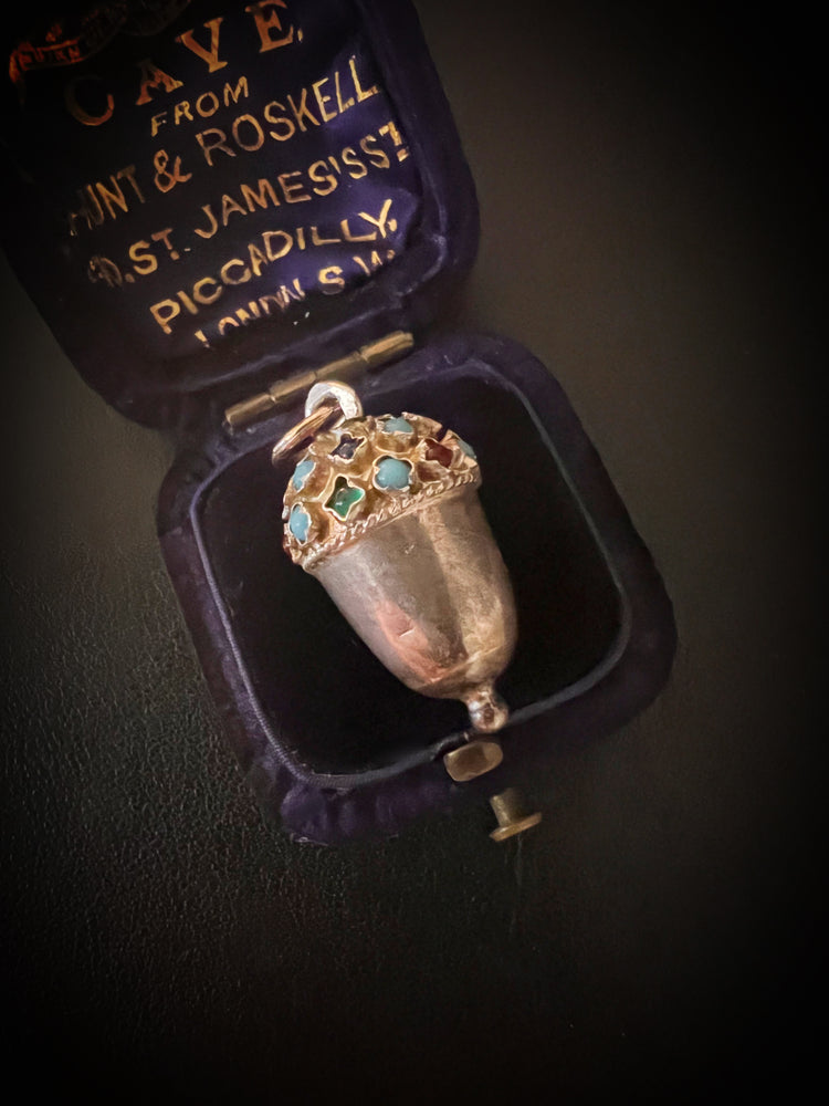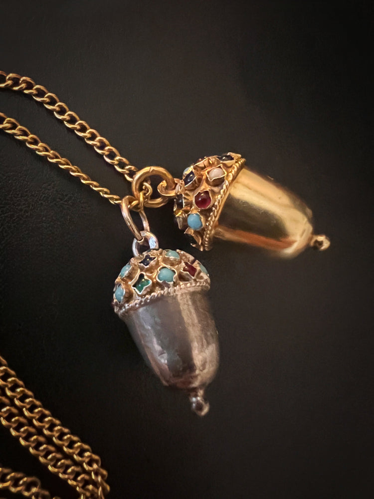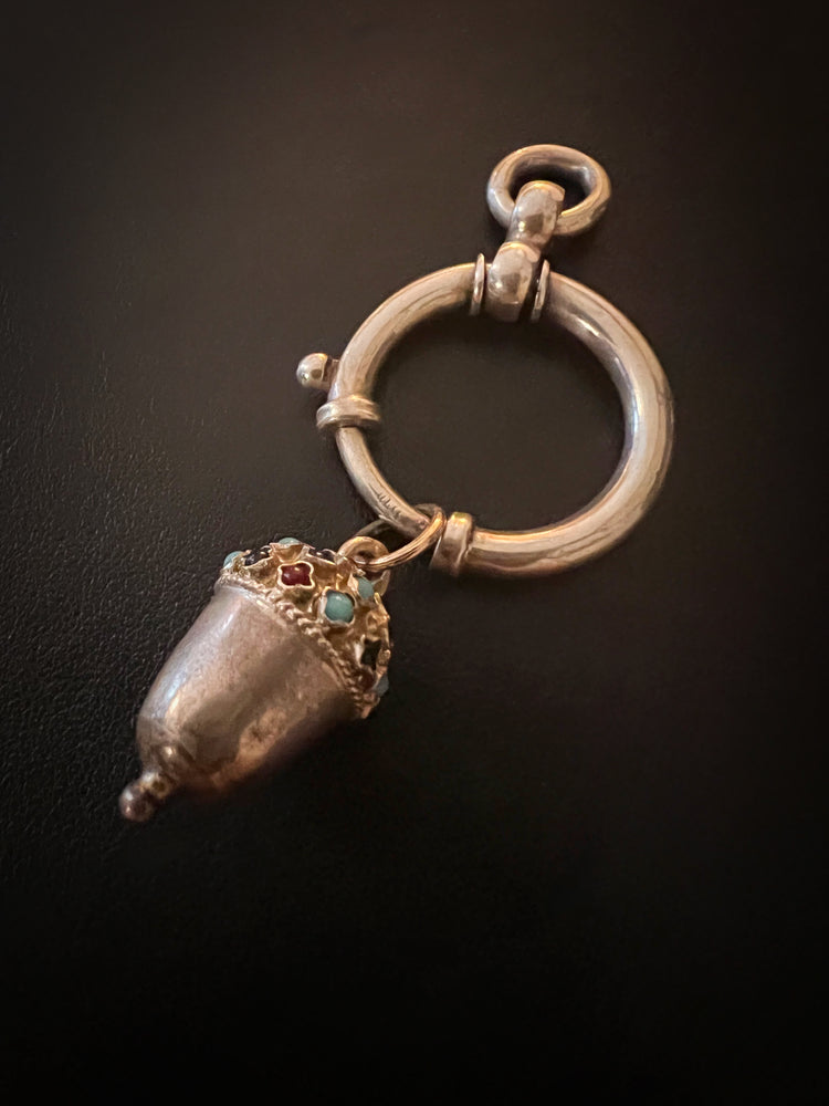 A super cool silver acorn pendant with a multigem Sputnik top.