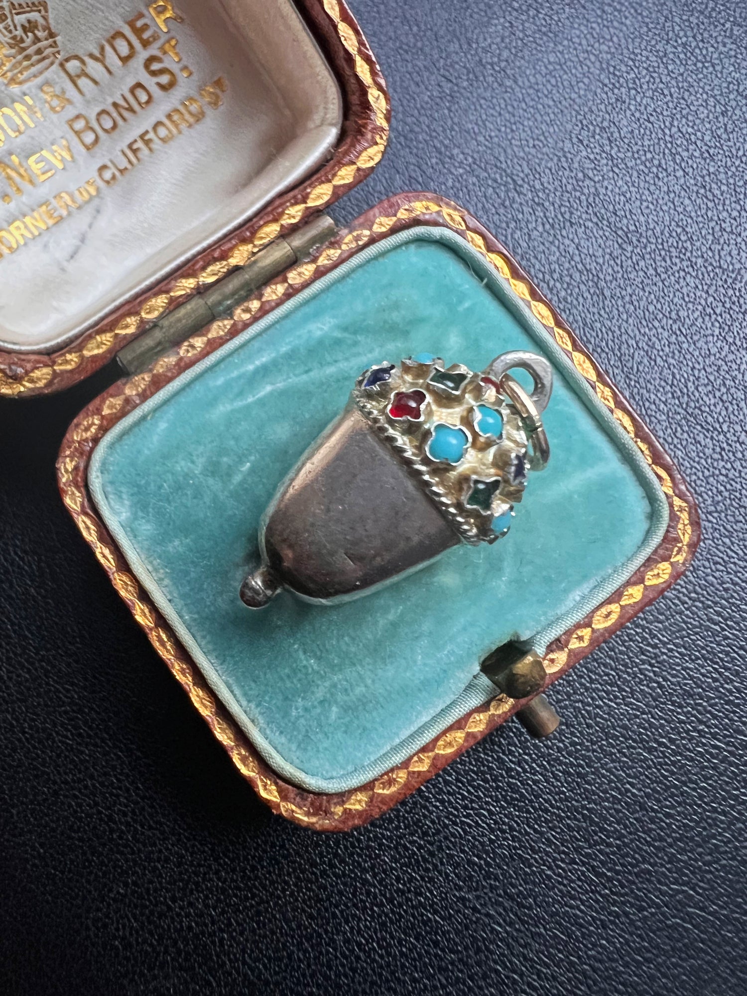 EARLY 20TH CENTURY SILVER MULTI GEM ACORN PENDANT