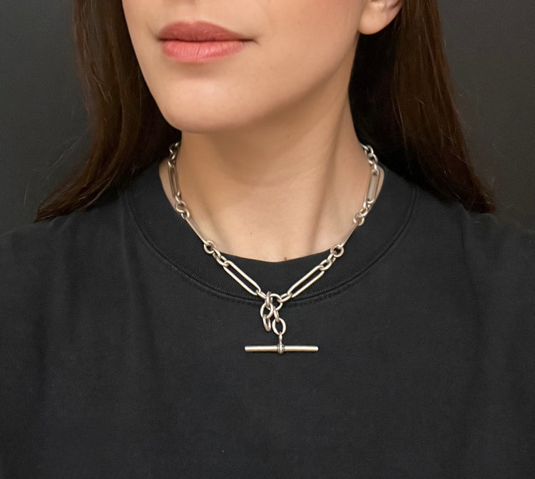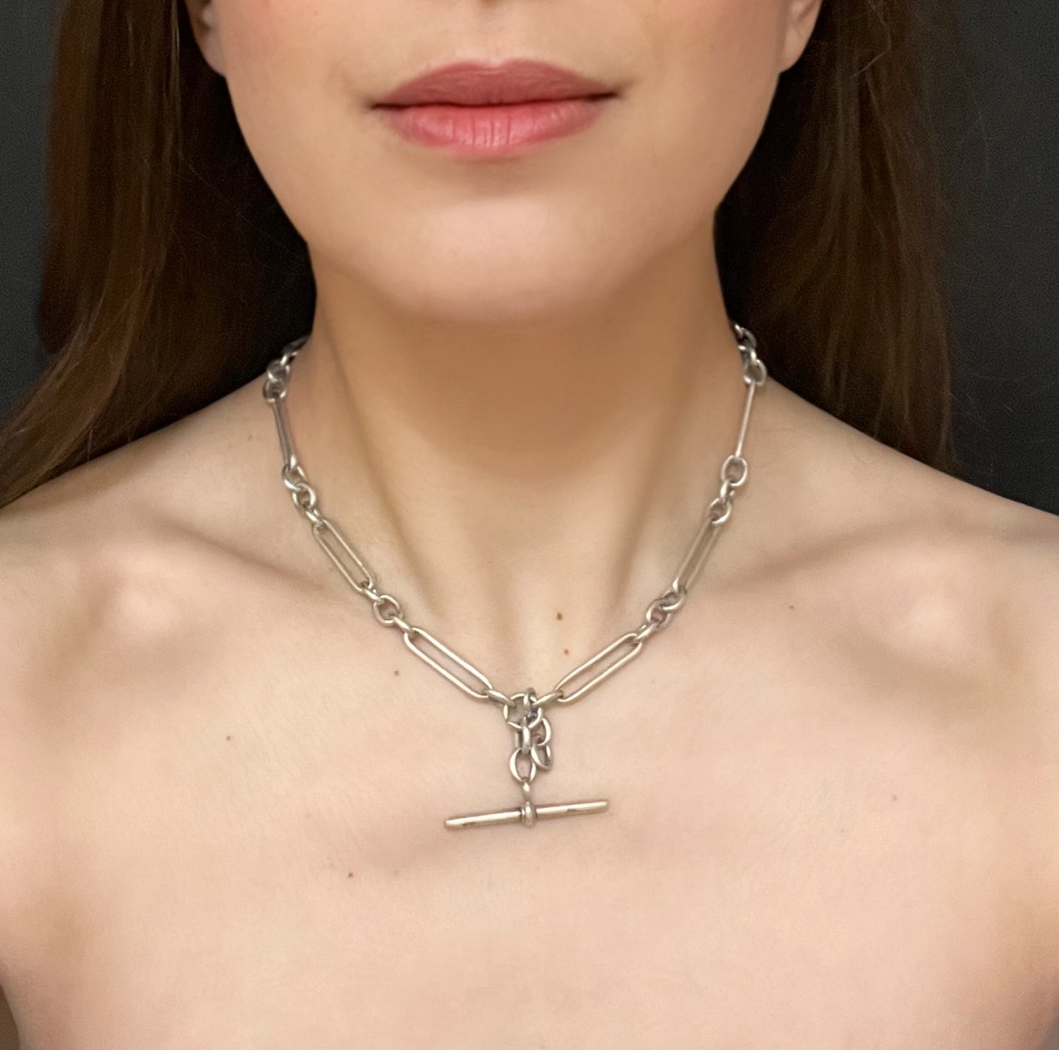 ANTIQUE SILVER PAPERCLIP ALBERT CHAIN