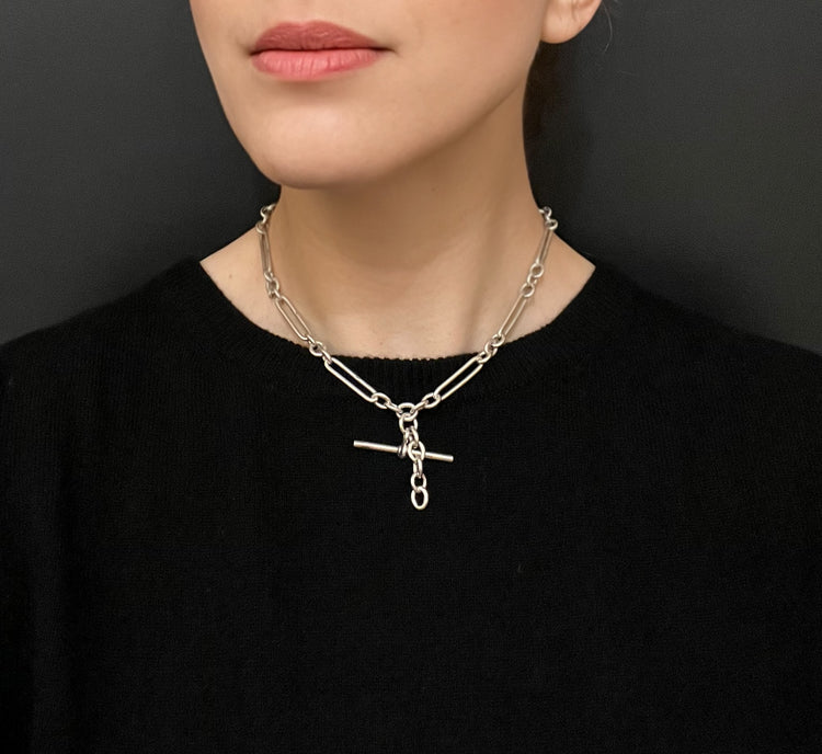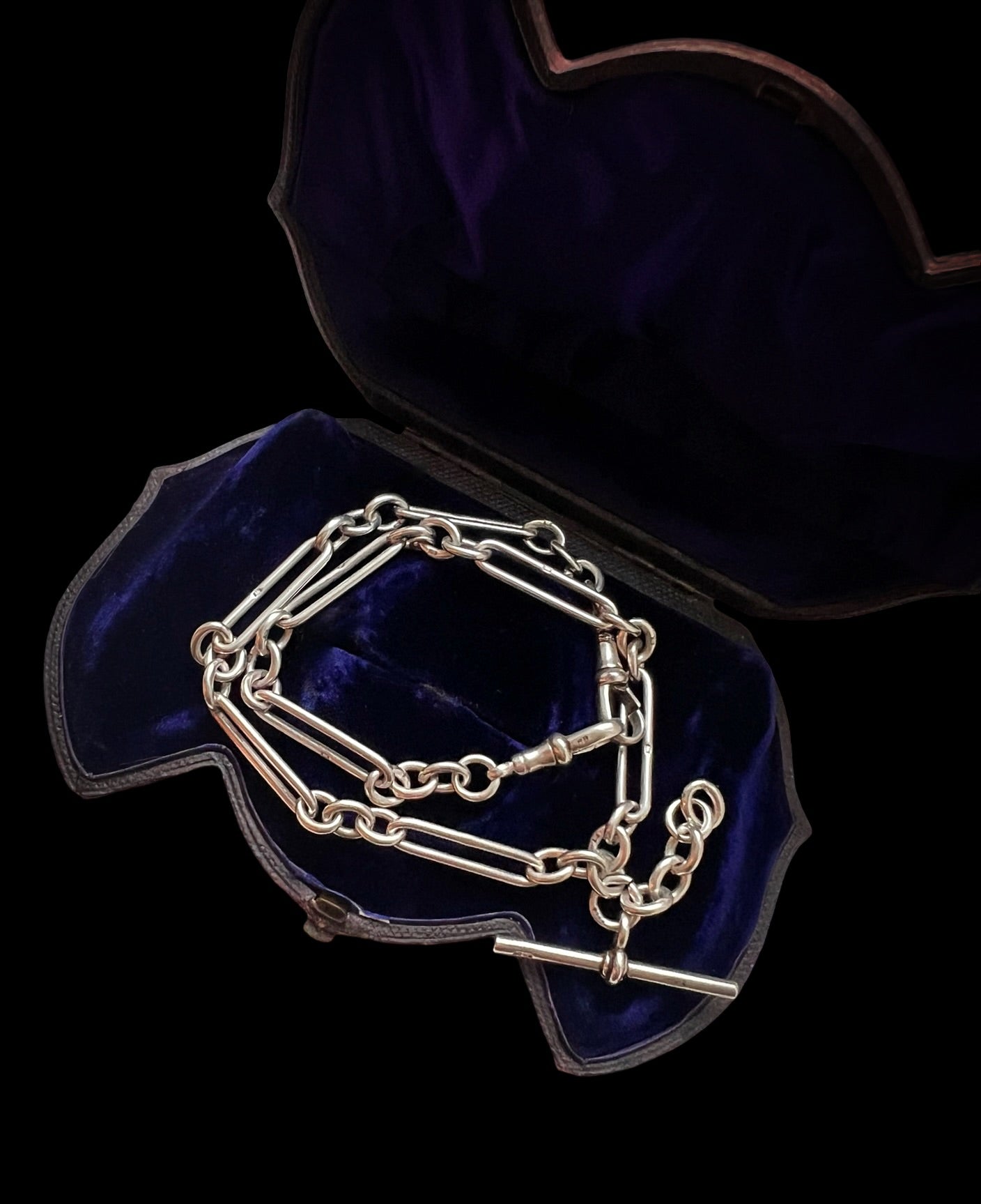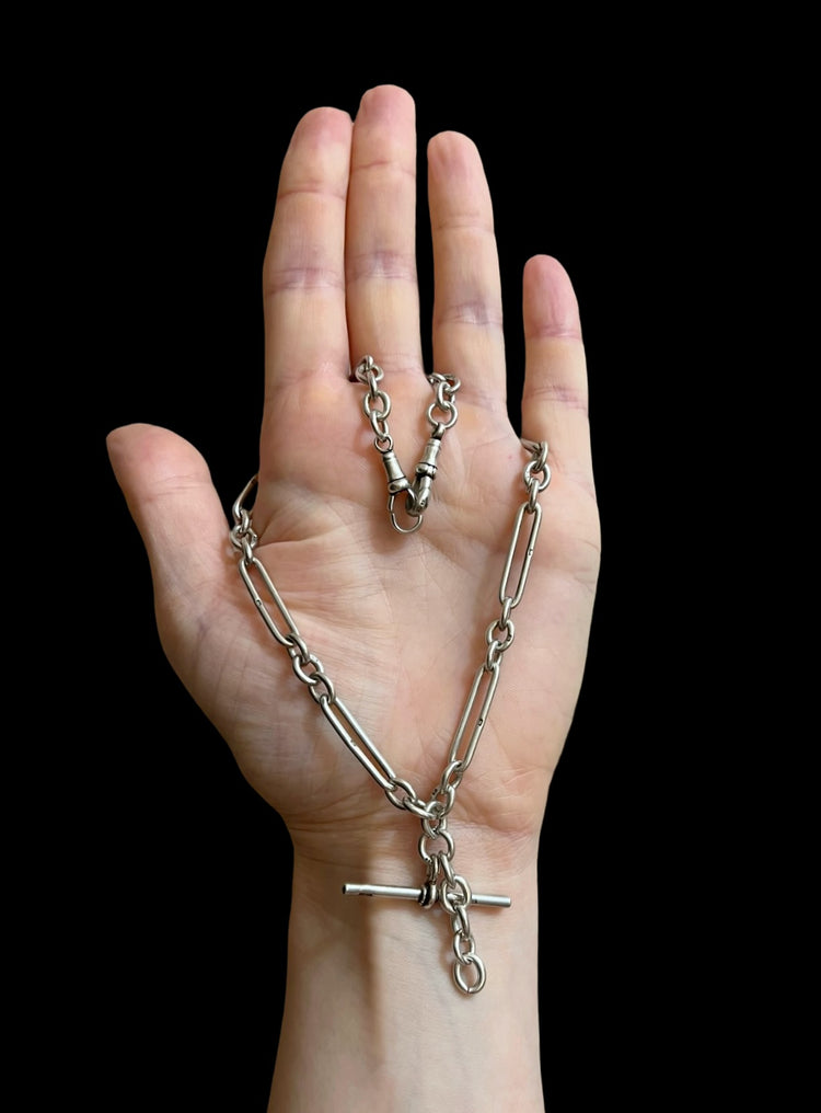 ANTIQUE SILVER PAPERCLIP ALBERT CHAIN