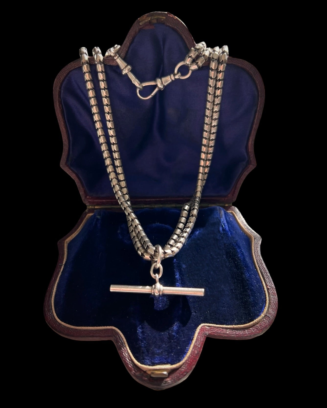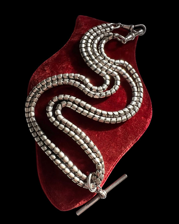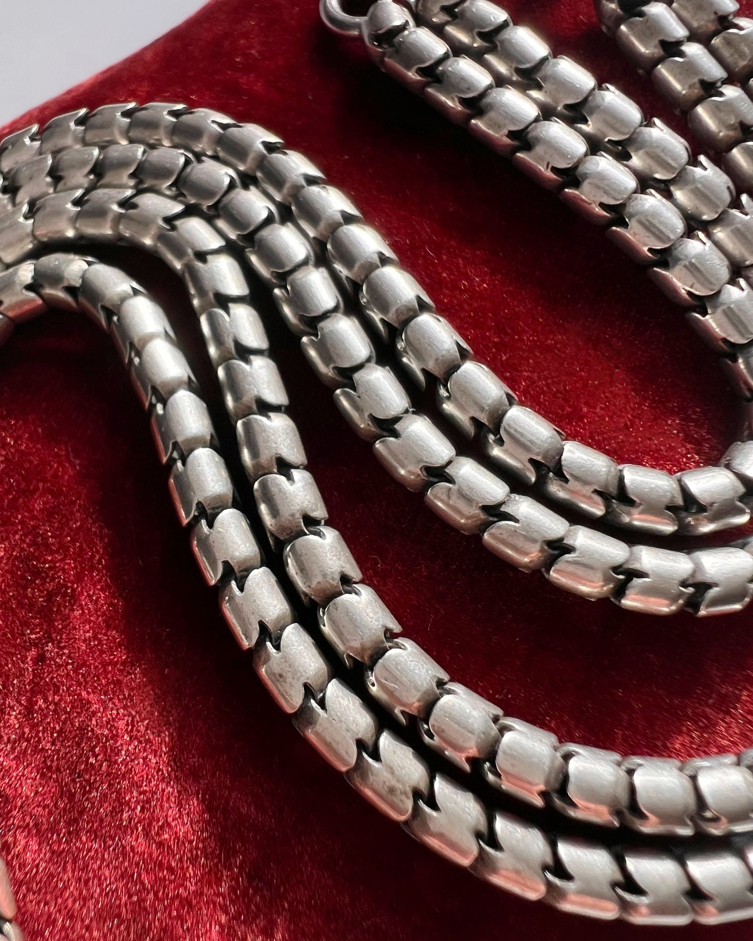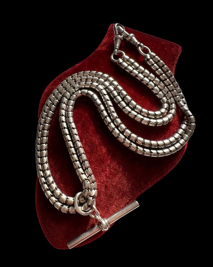 ANTIQUE SILVER SNAKE LINK ALBERT CHAIN