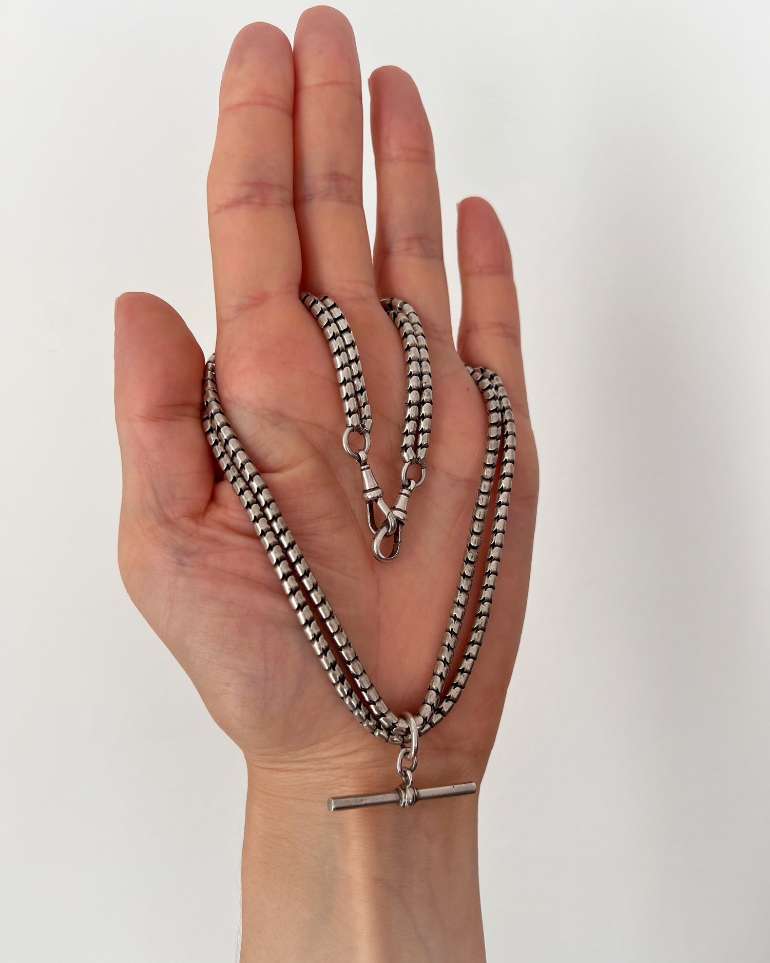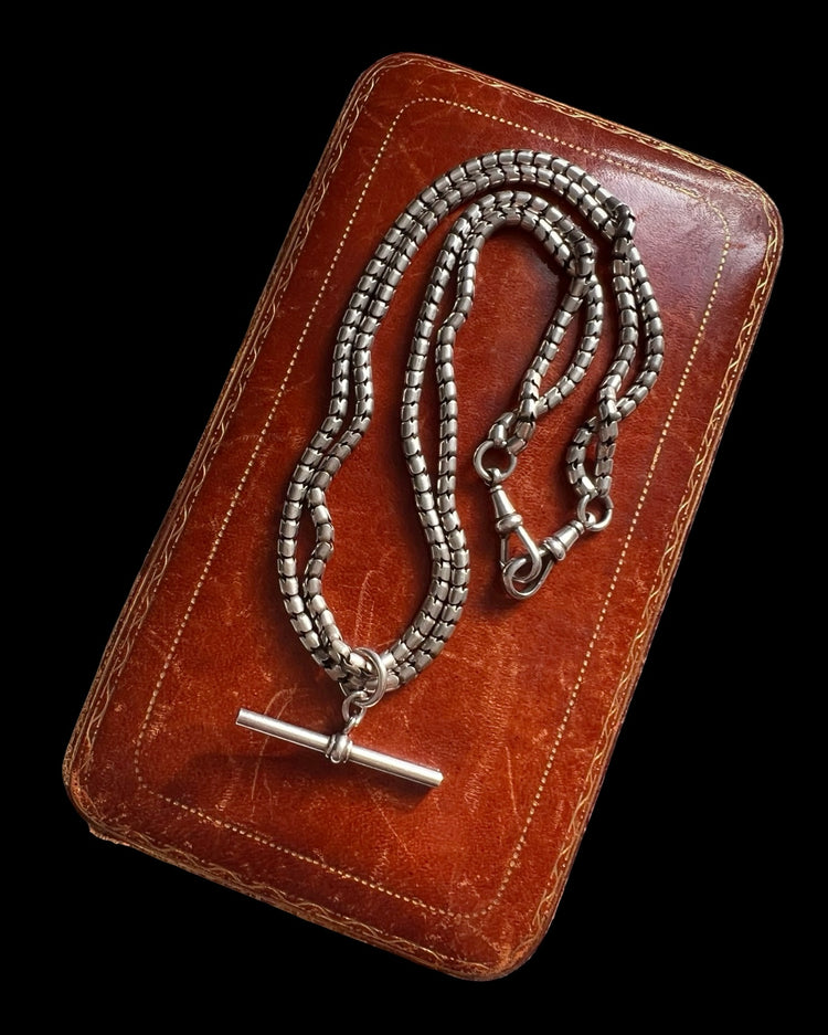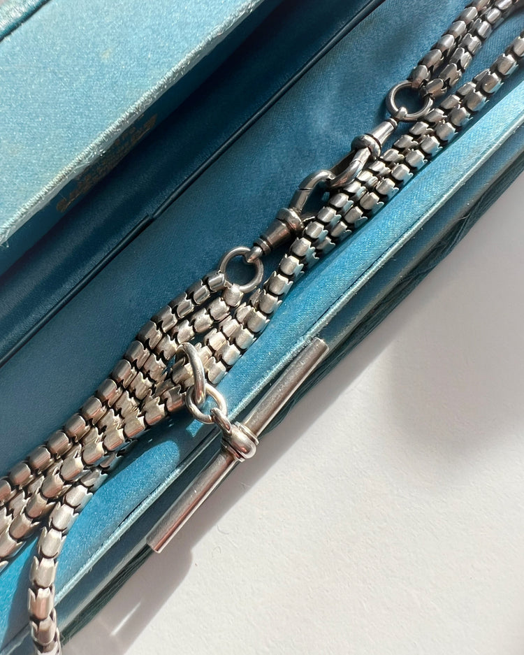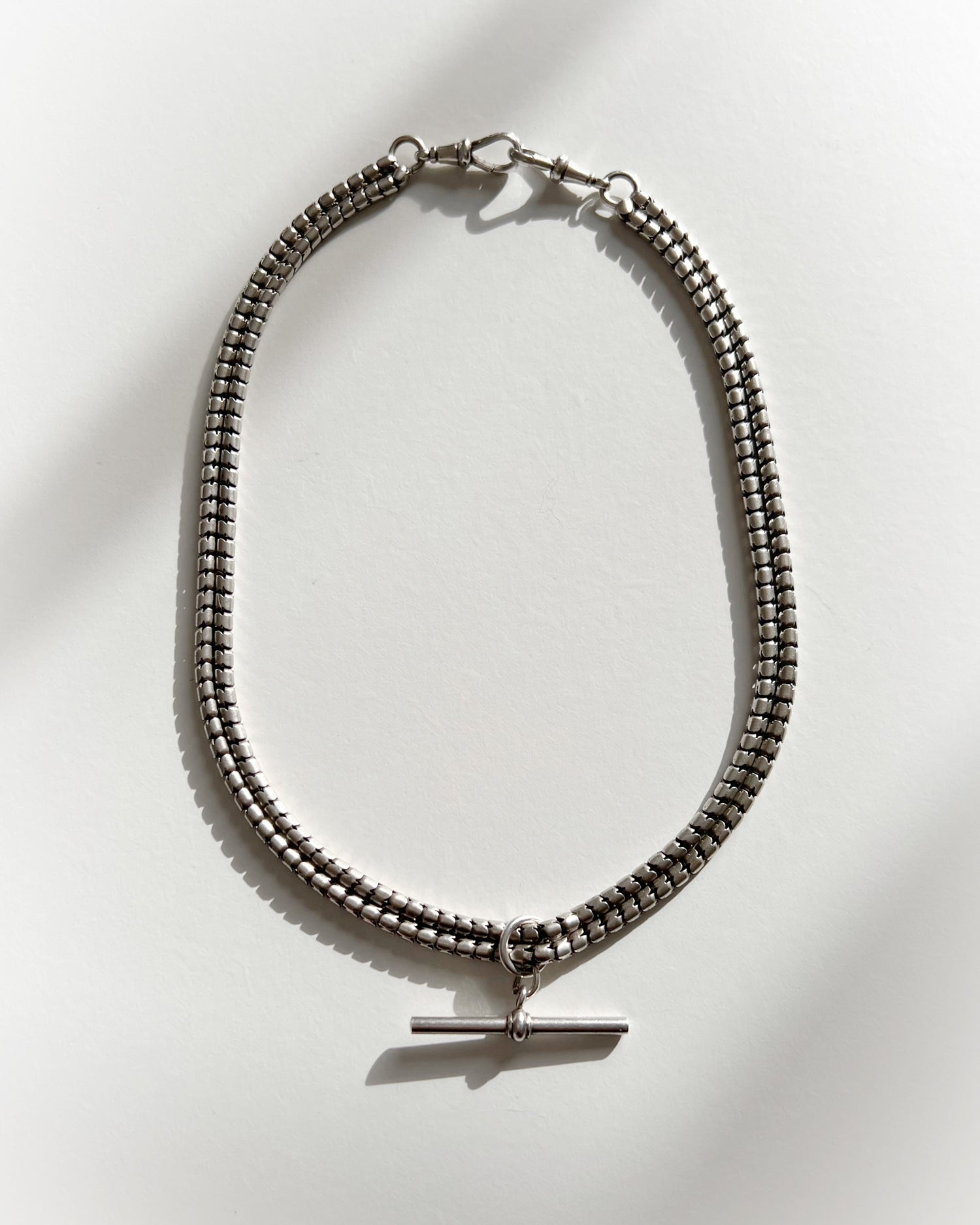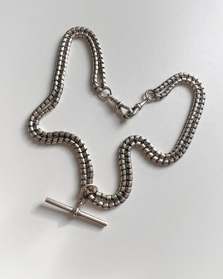 ANTIQUE SILVER SNAKE LINK ALBERT CHAIN