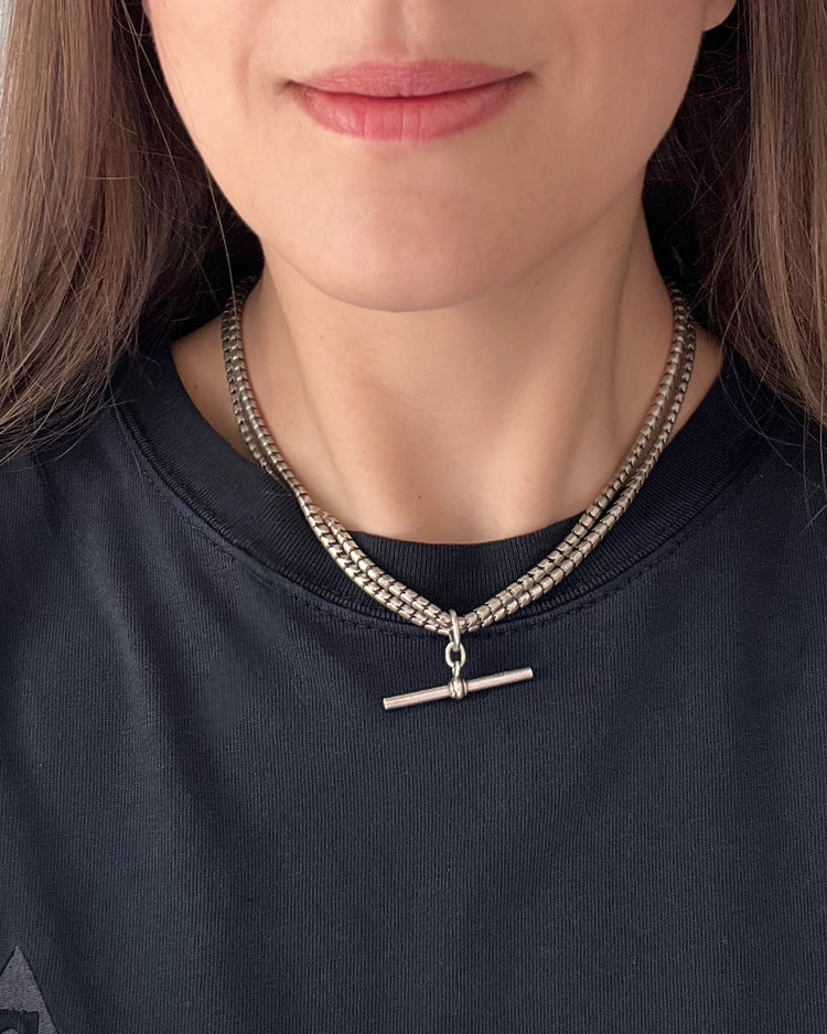 This chunky double chain has lovely articulated snake links, allowing the chain to sit really well around the neck.