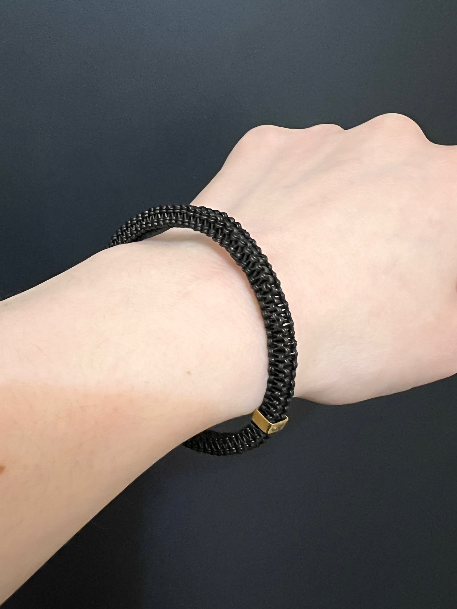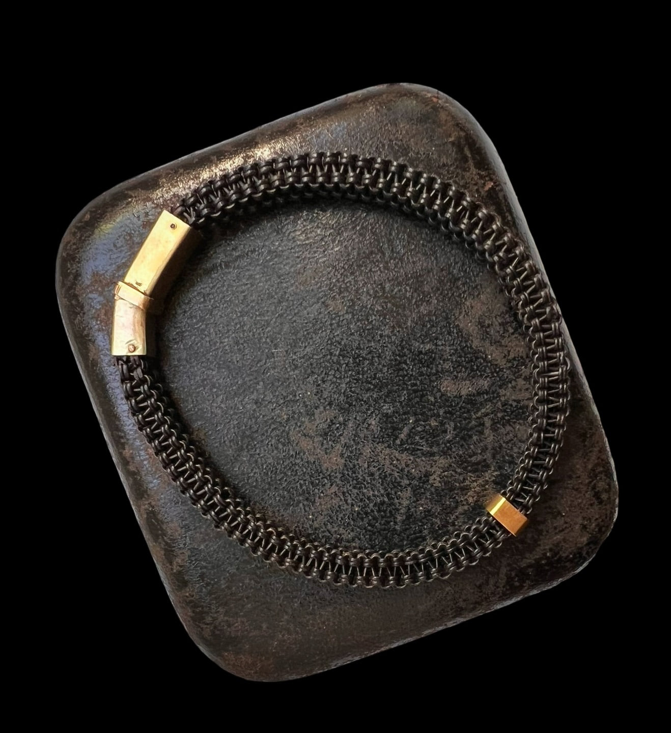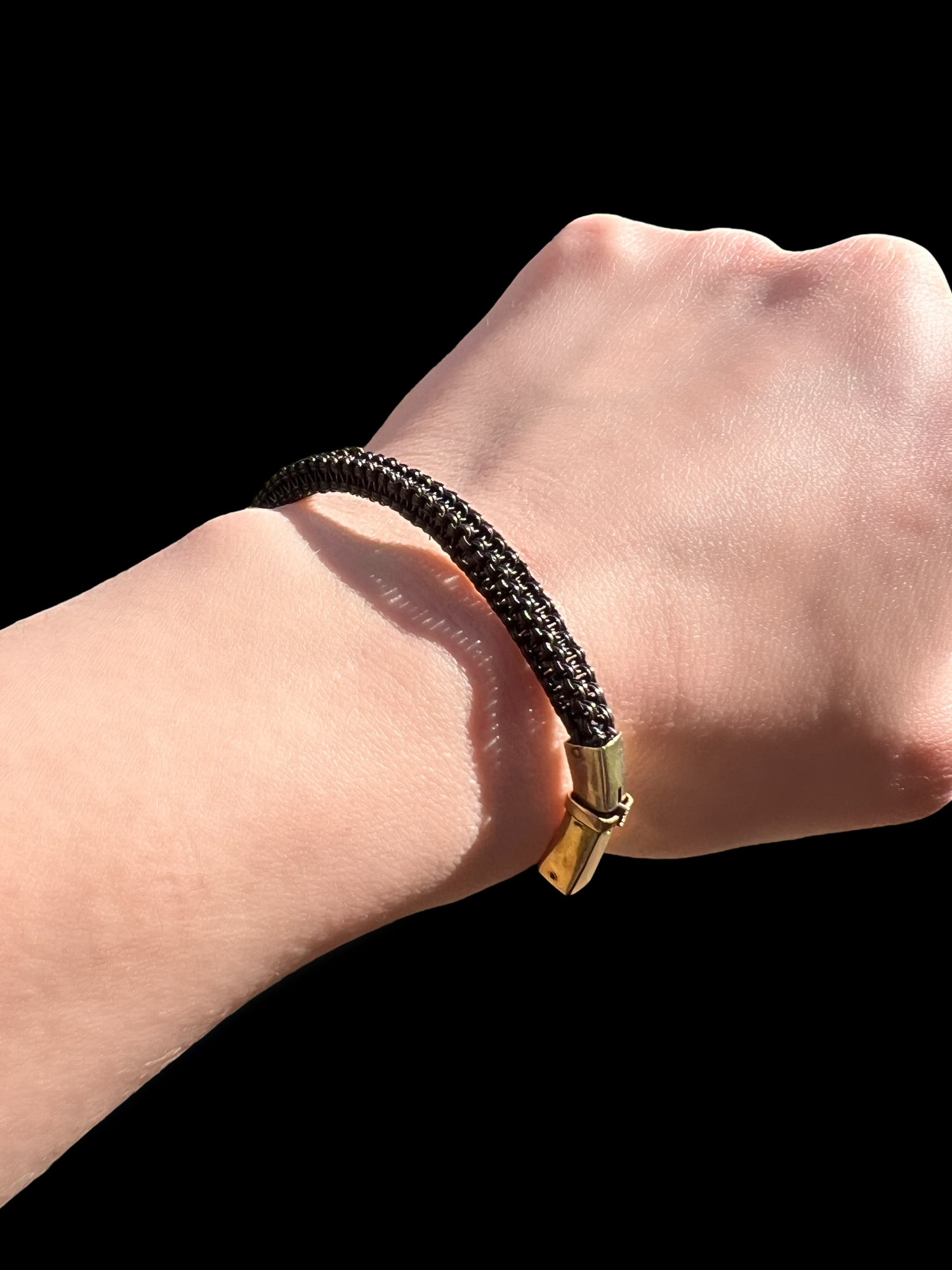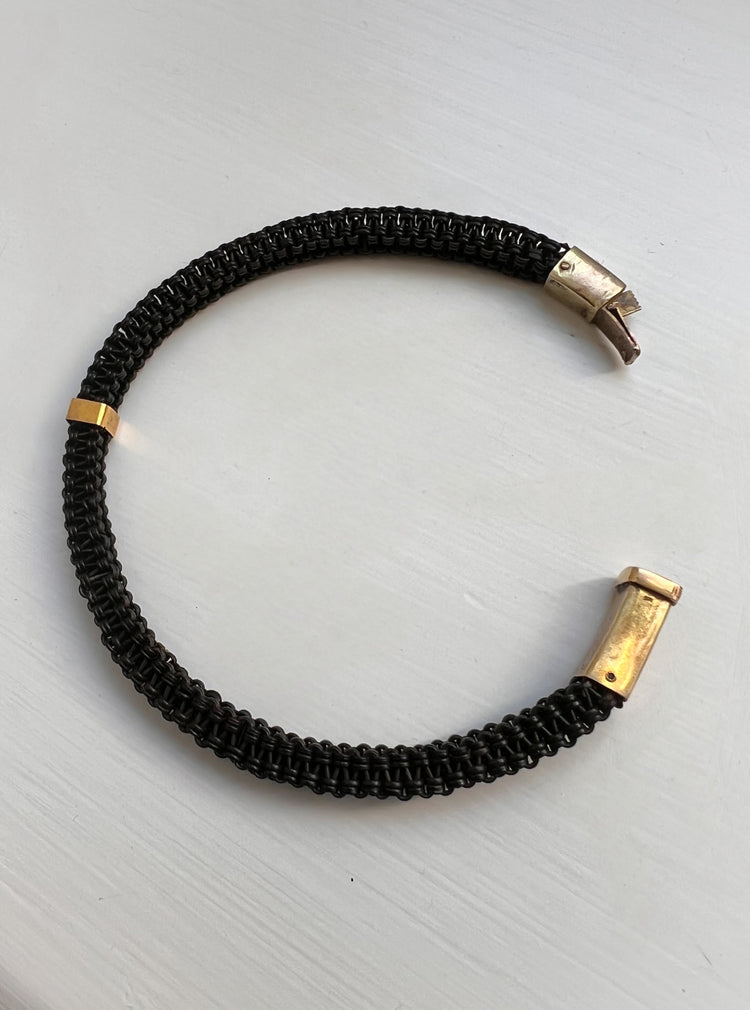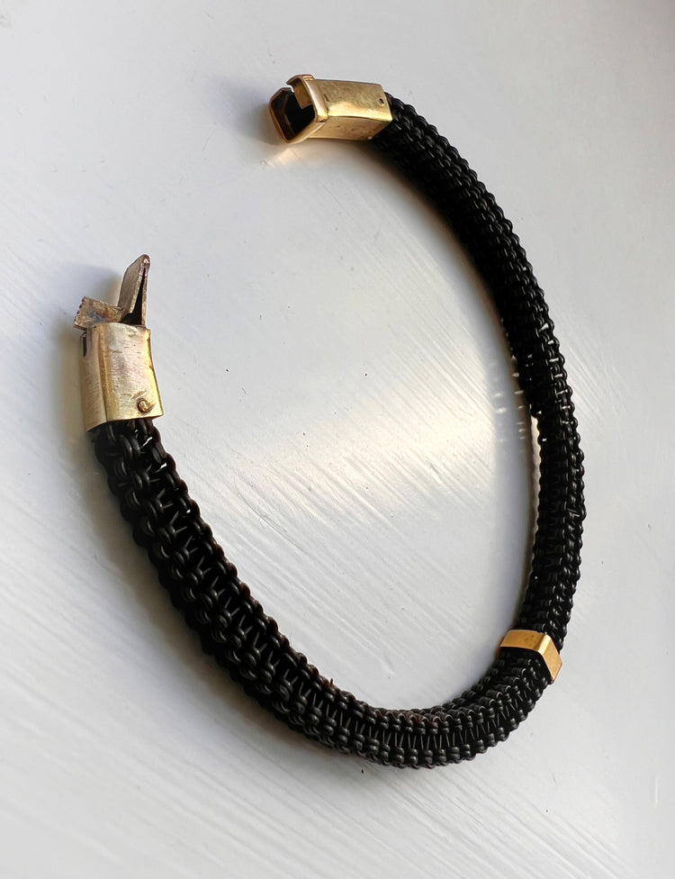 A super cool woven elephant hair bracelet with 14ct gold fittings.