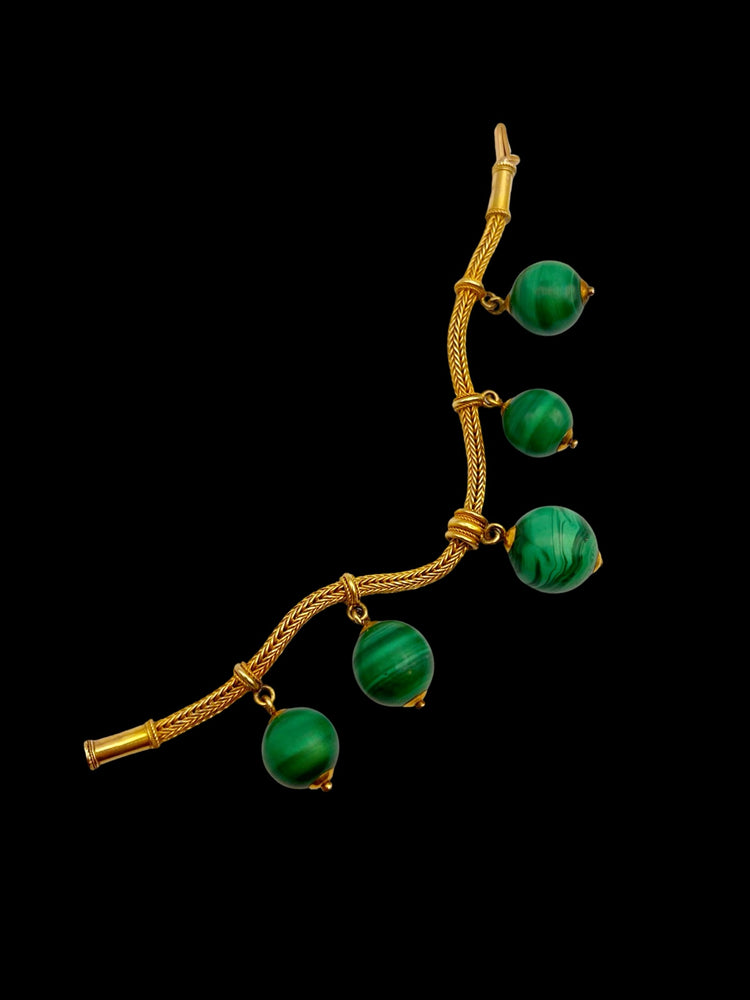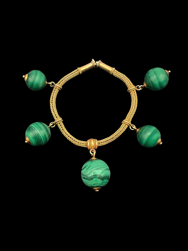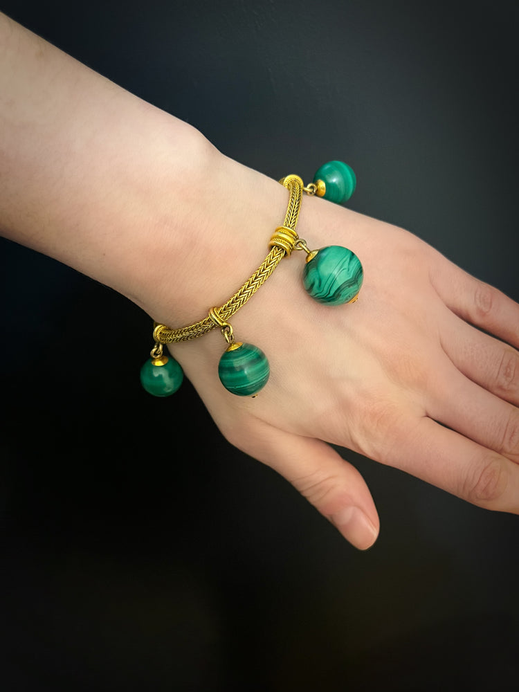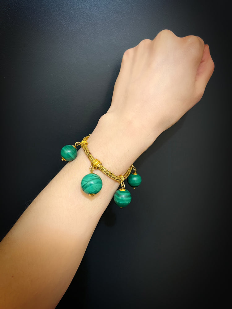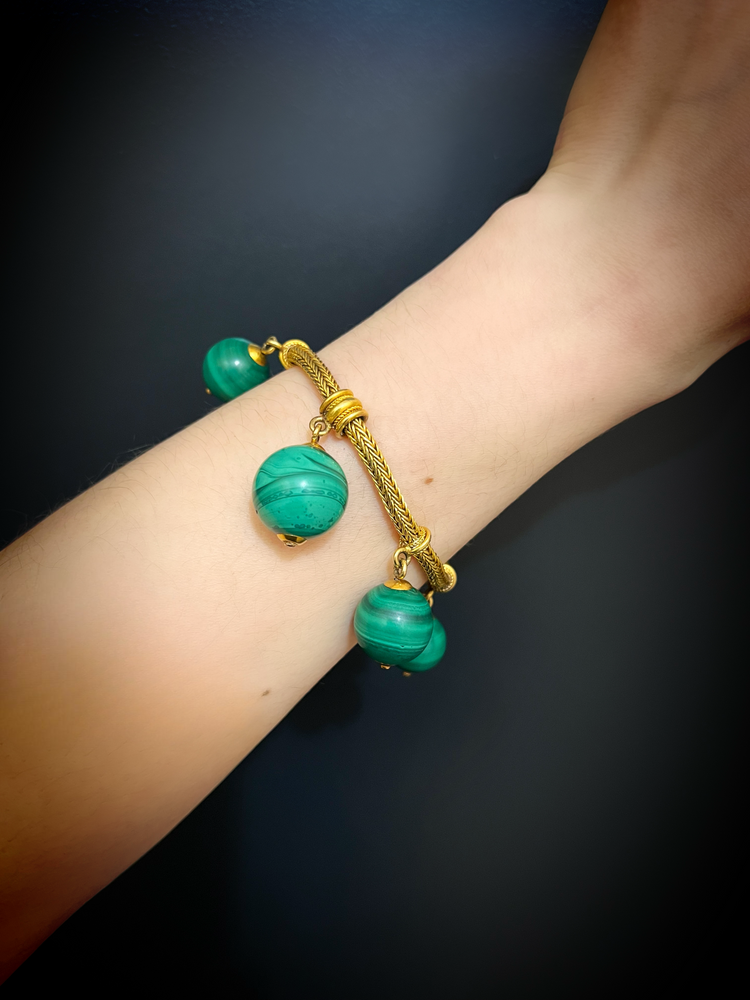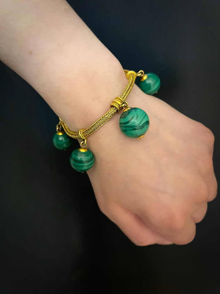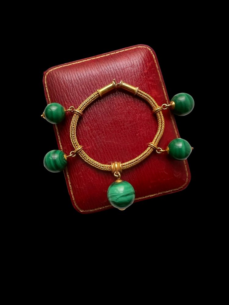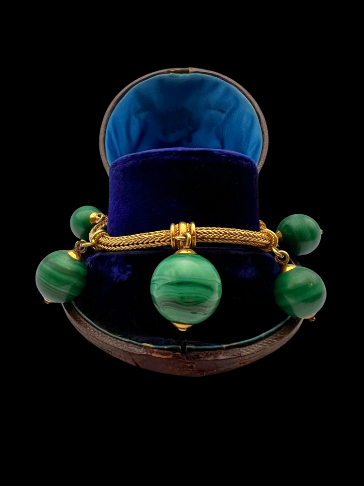 ARCHEOLOGICAL REVIVAL 18CT GOLD & MALACHITE SPHERE BRACELET