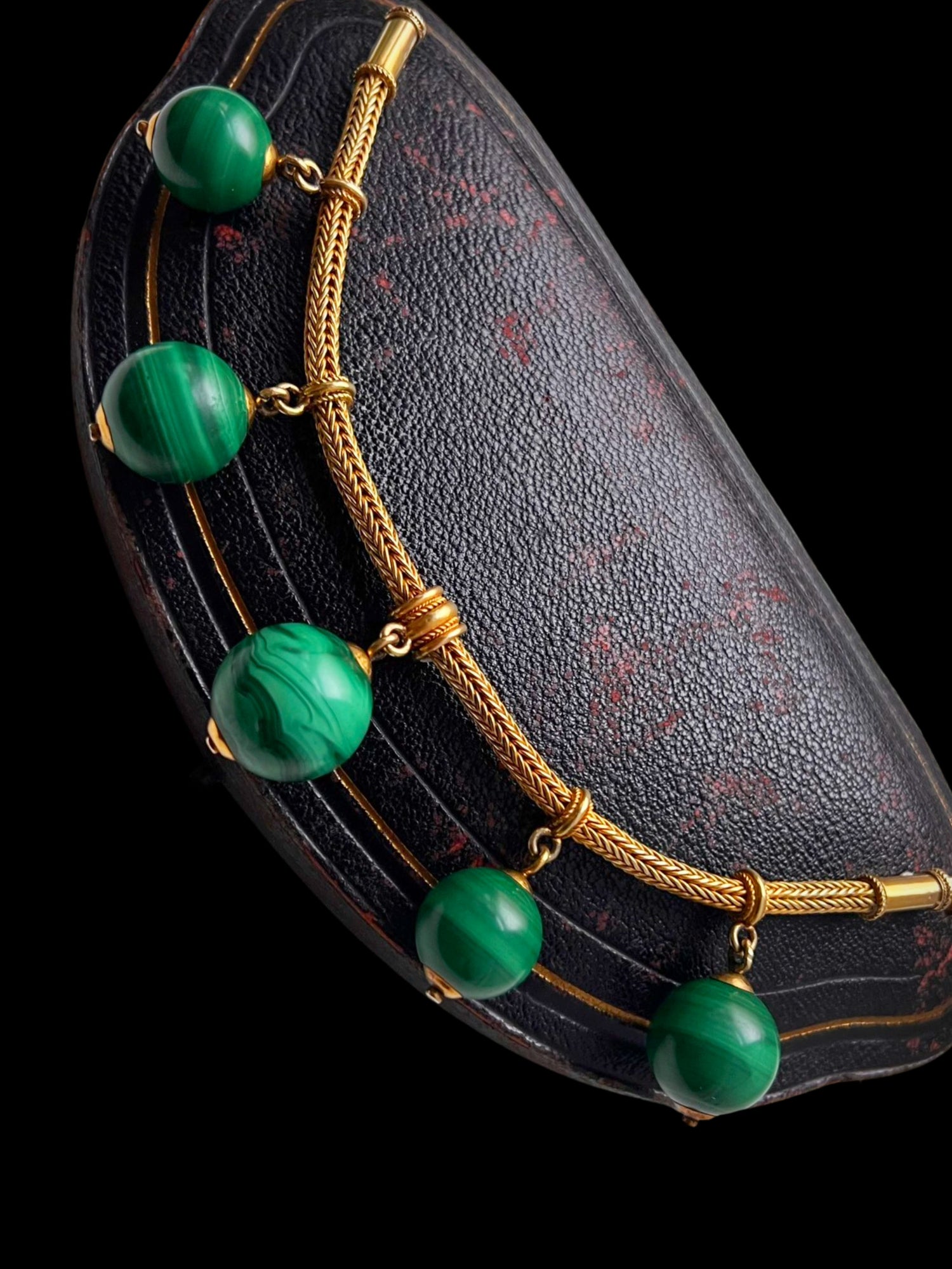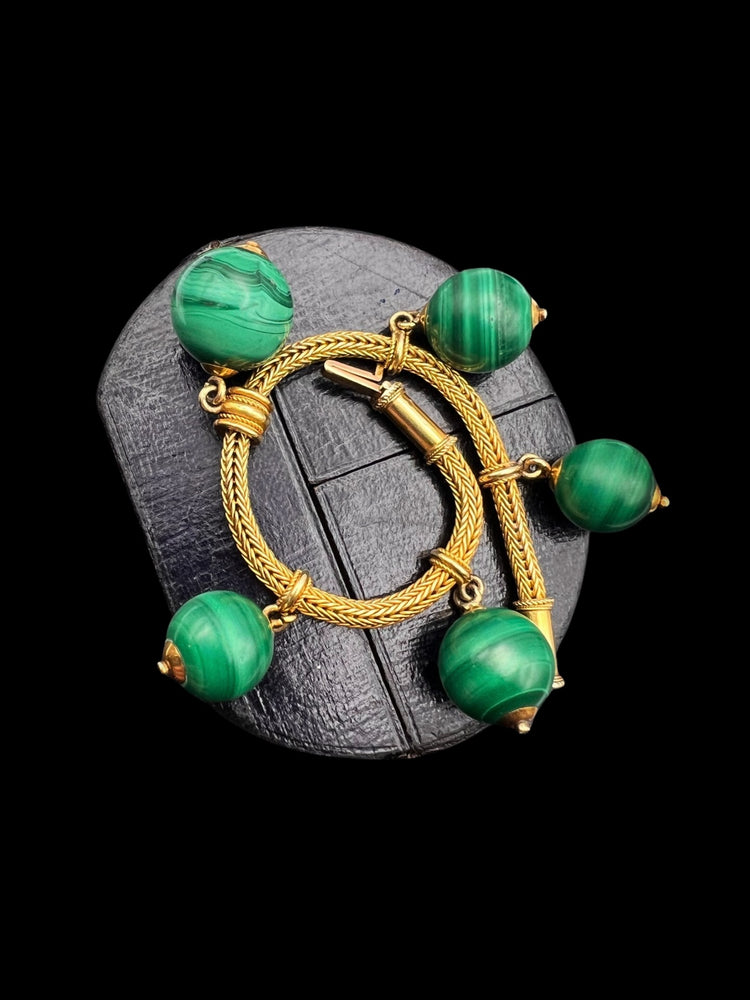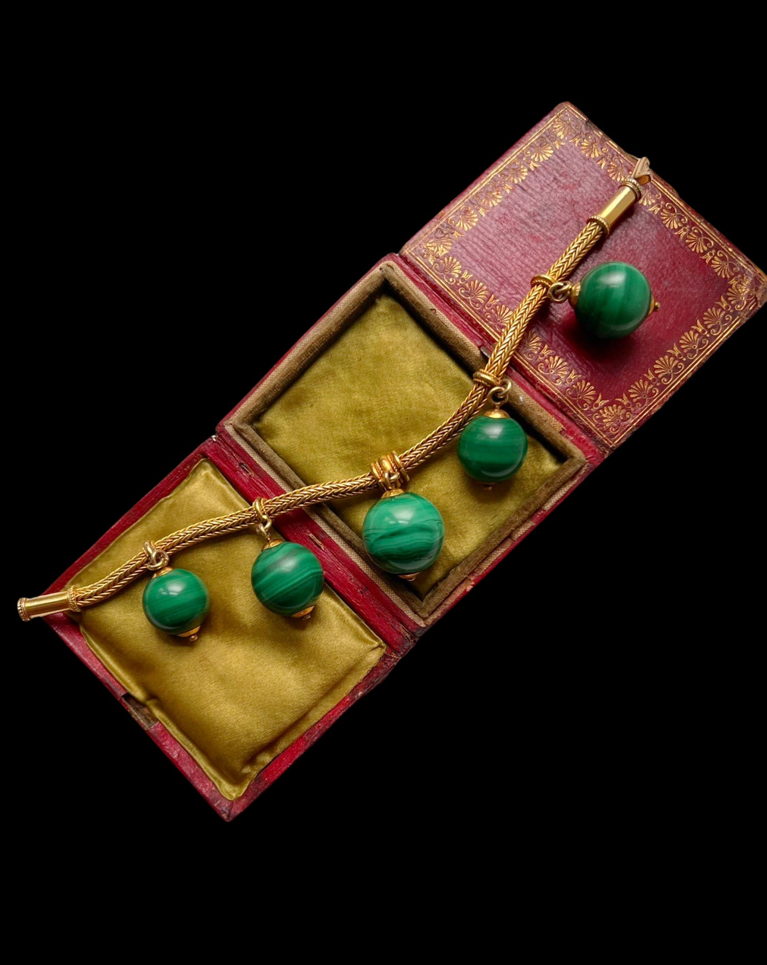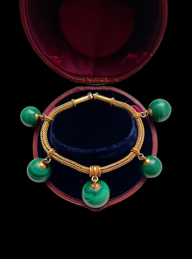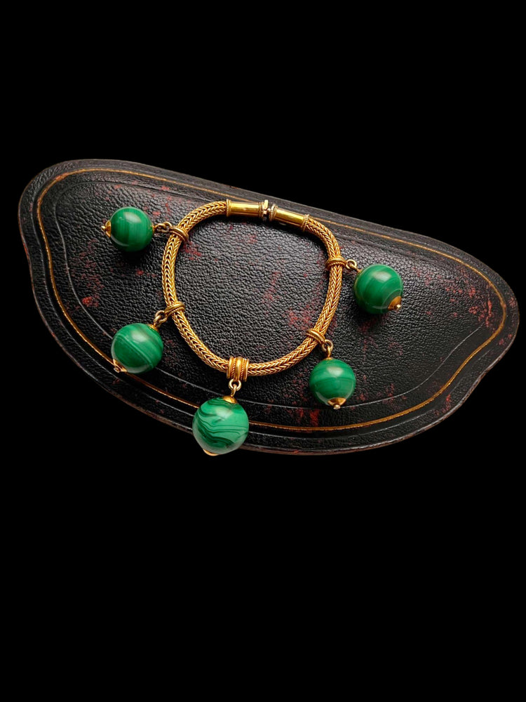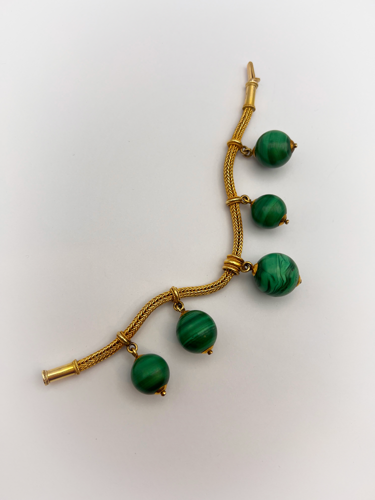 ARCHEOLOGICAL REVIVAL 18CT GOLD & MALACHITE SPHERE BRACELET
