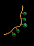 The bright 18ct gold is woven in a foxtail link chain, from which five graduated Malachite spheres are suspended.