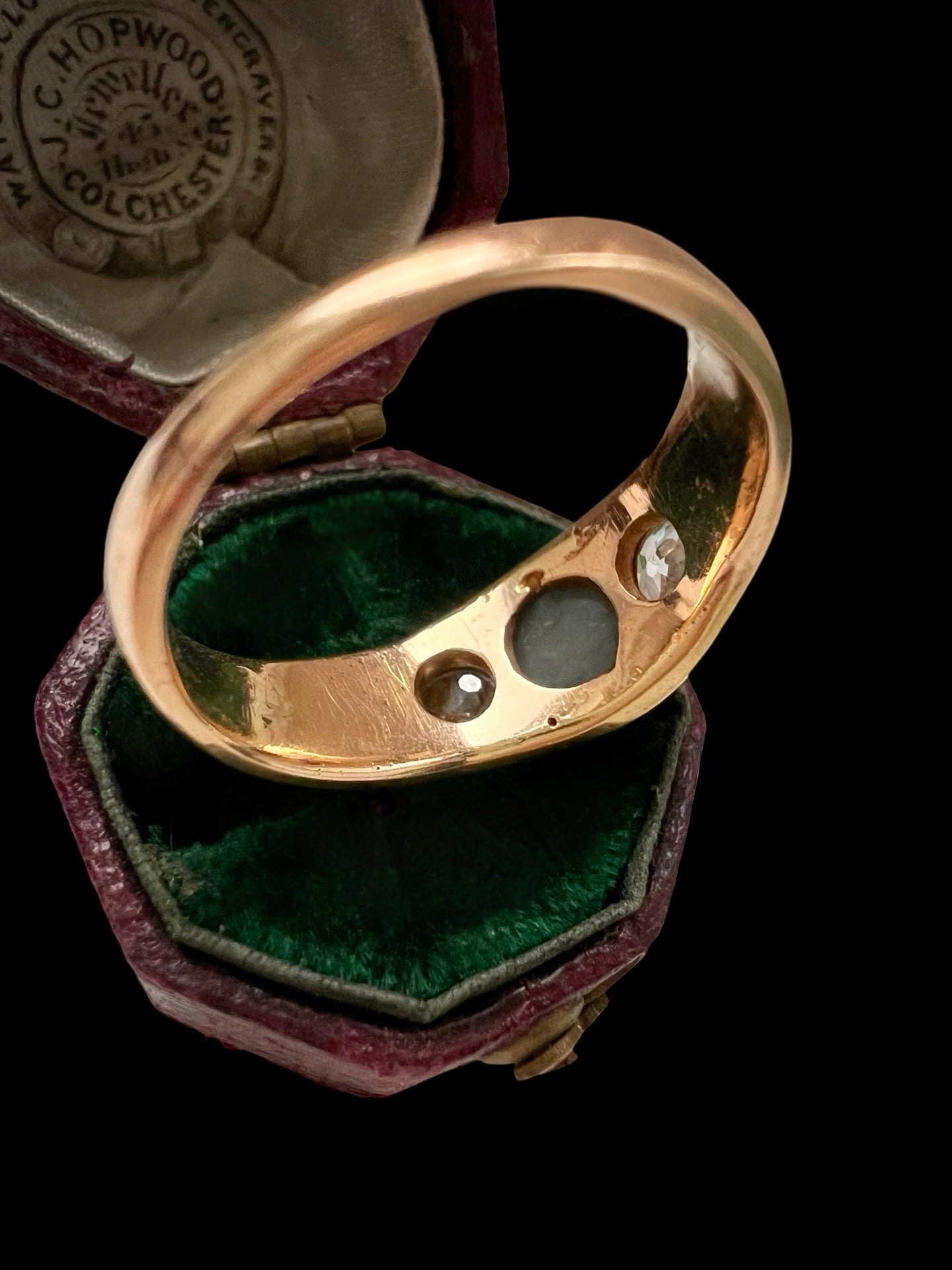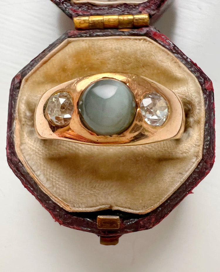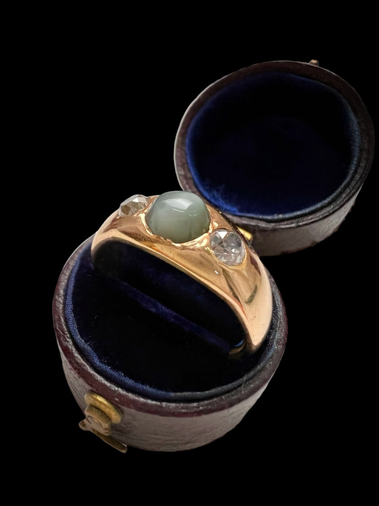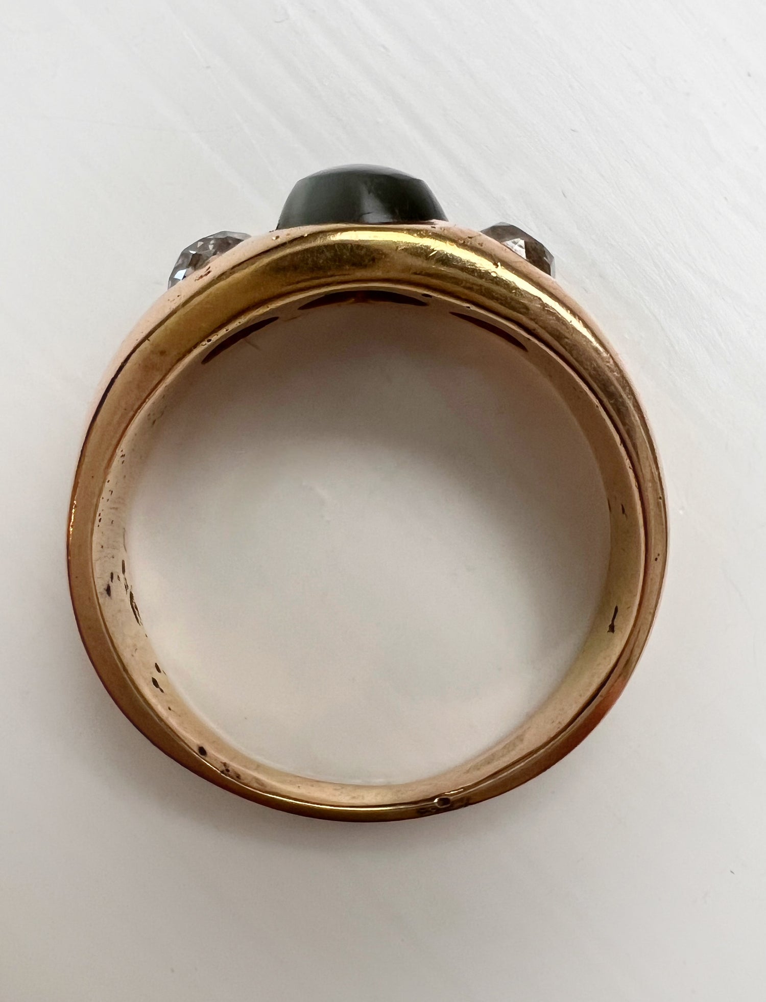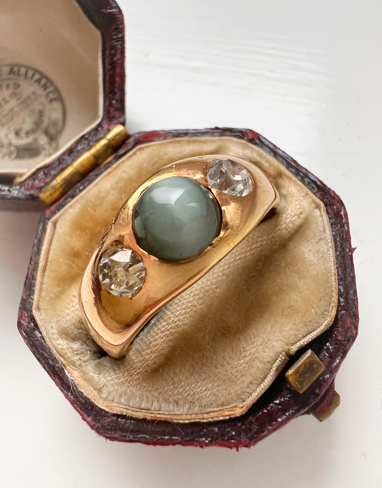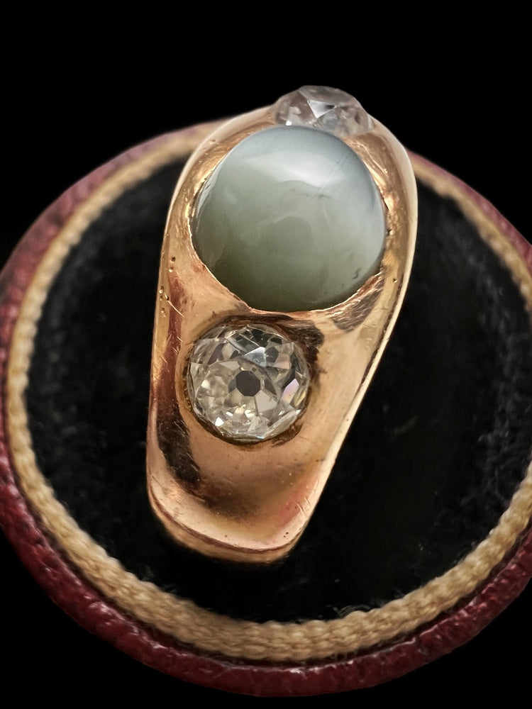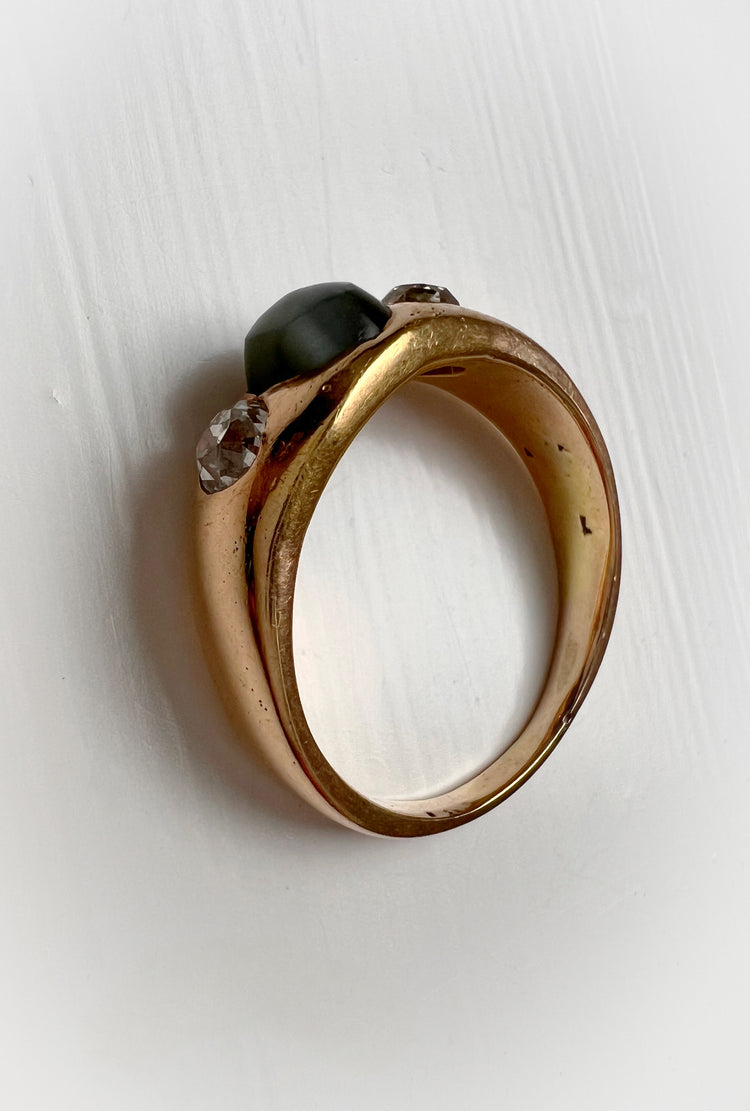 CATS EYE CHRYSOBERYL & OLD CUT DIAMOND GYPSY RING