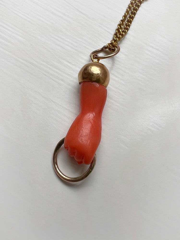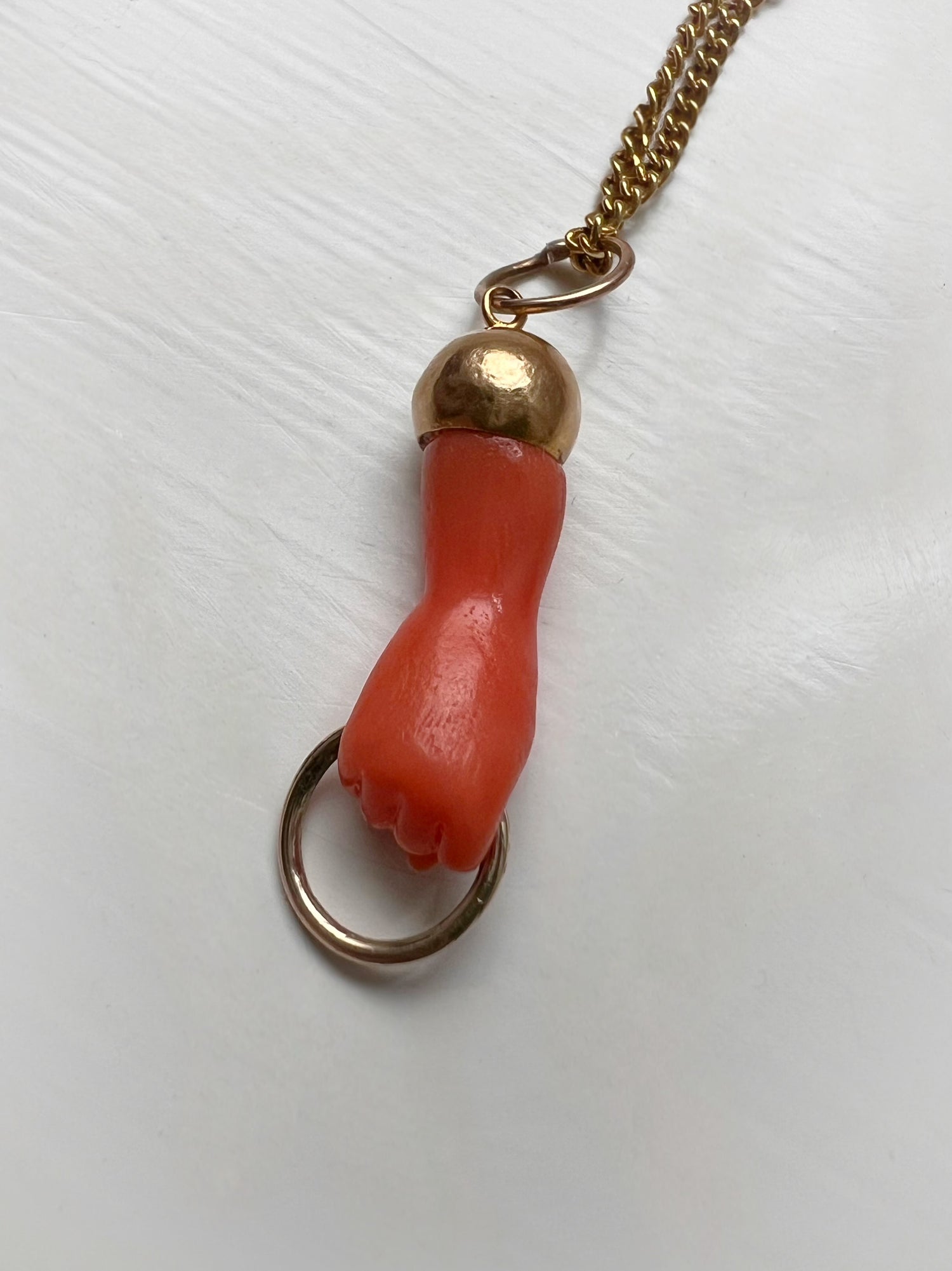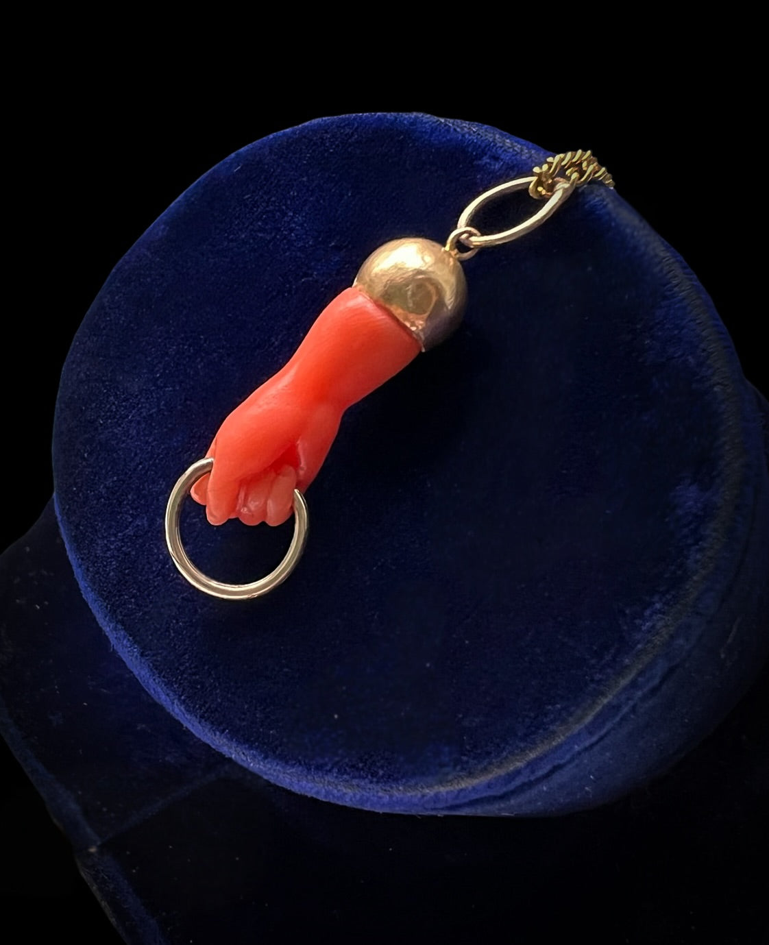 EARLY 19TH CENTURY CORAL HAND PENDANT