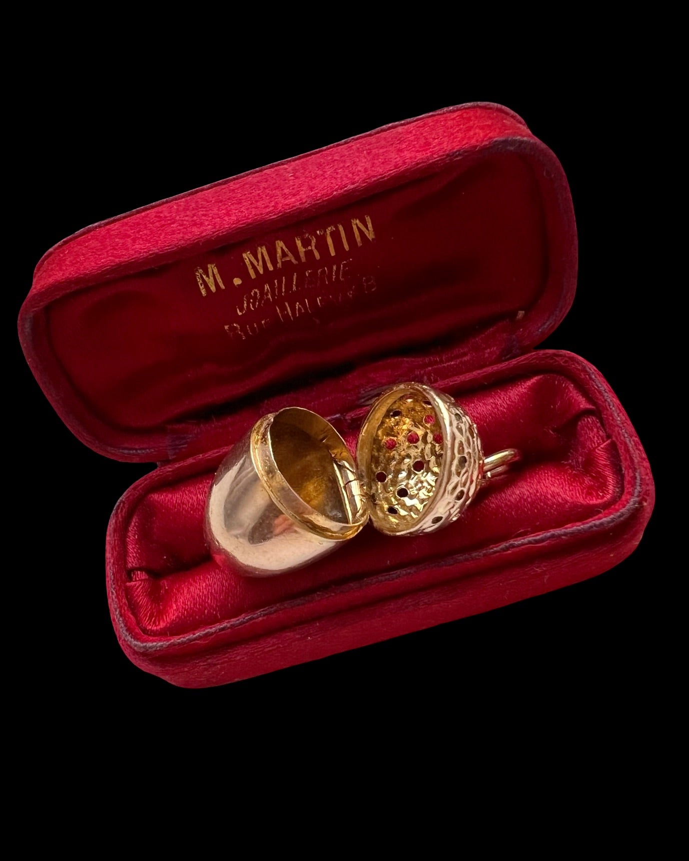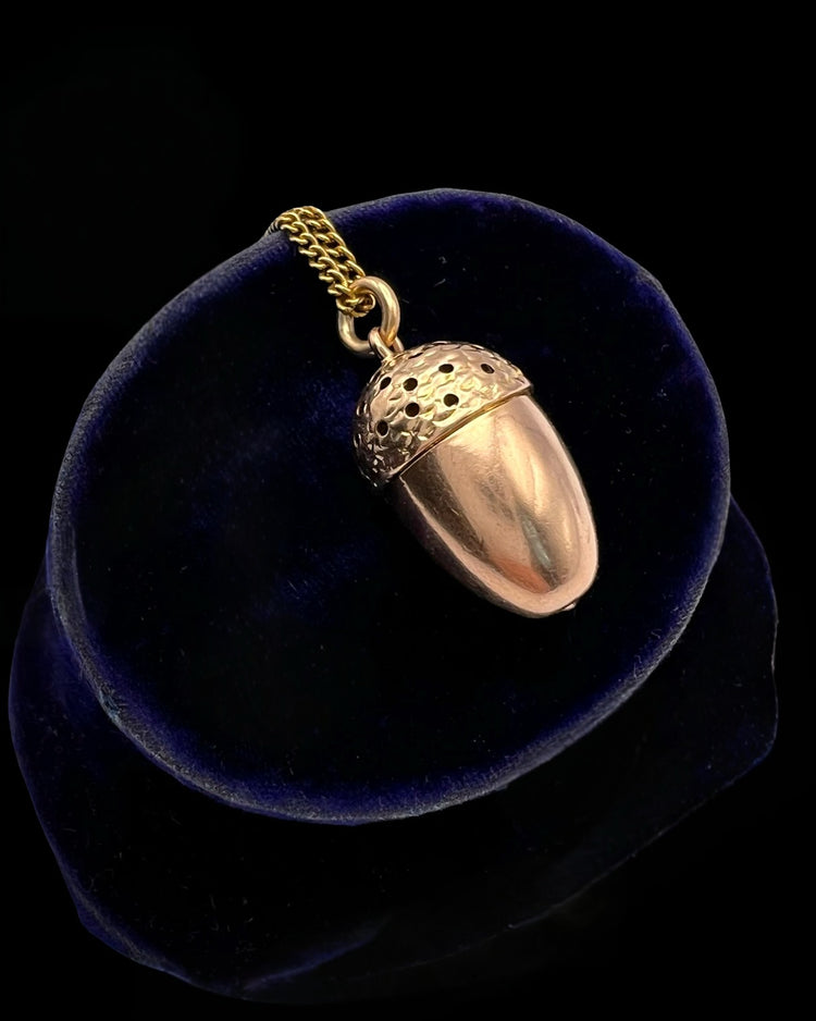 A gorgeous Victorian 9ct gold Acorn pomander pendant.