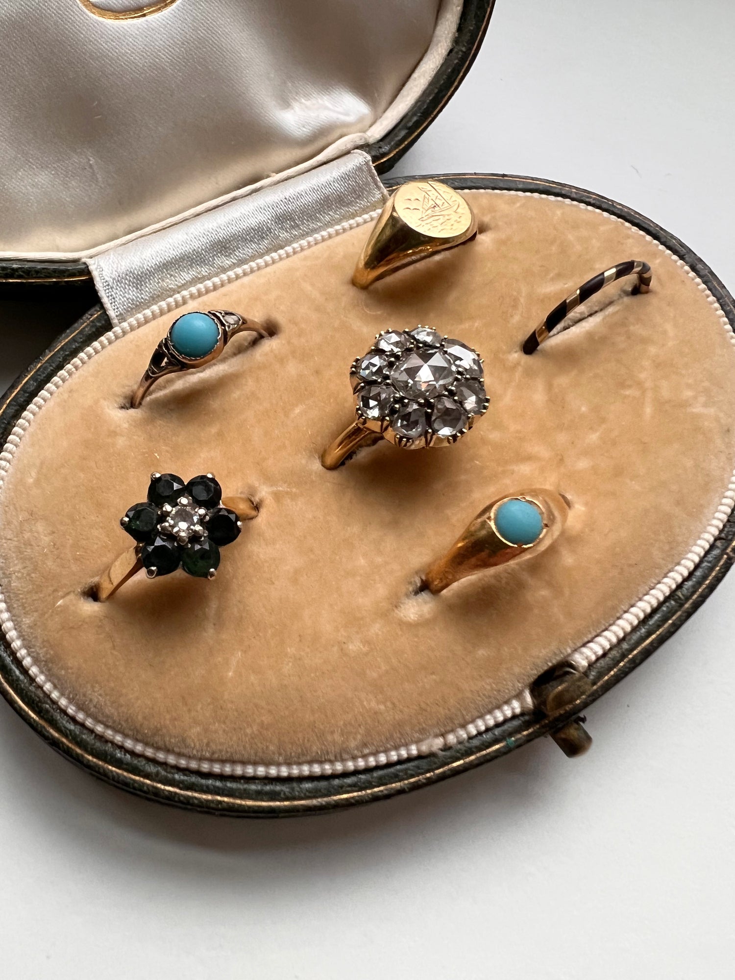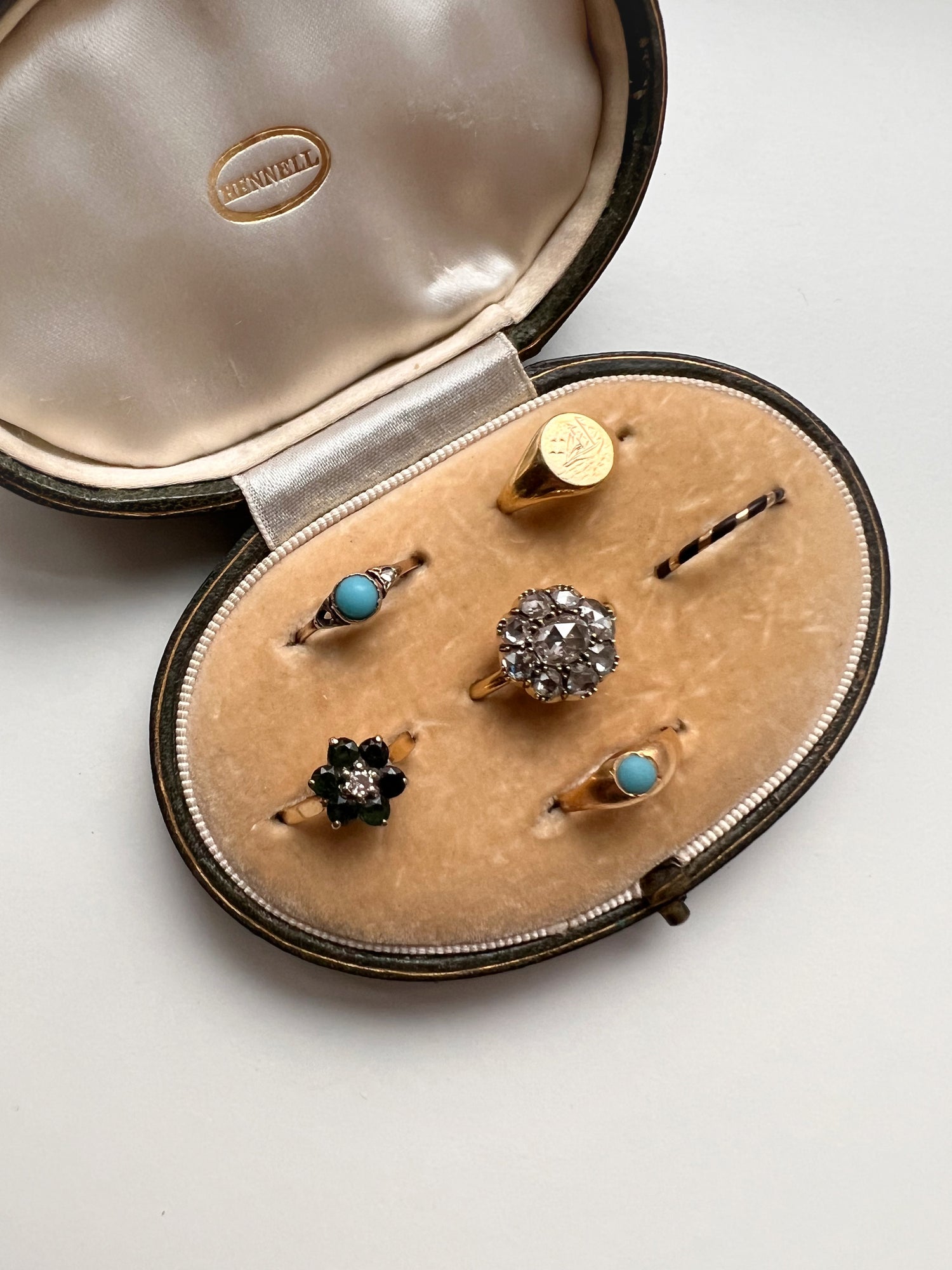 A gorgeous dark bottle green leather multi ring box, circa 1900/1910.