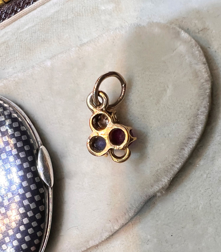 This is a super sweet Entente Cordiale, red white and blue trefoil pendant!