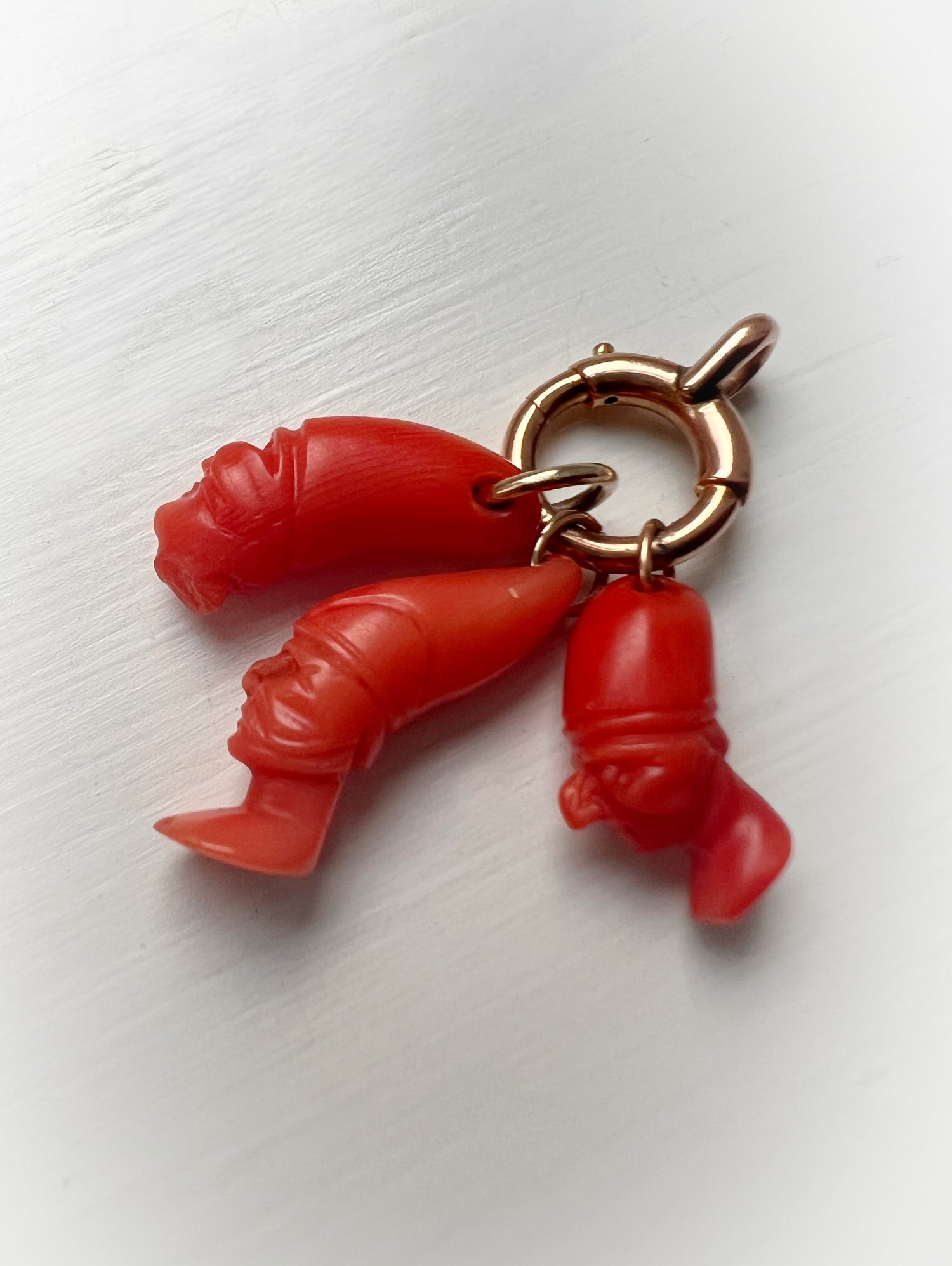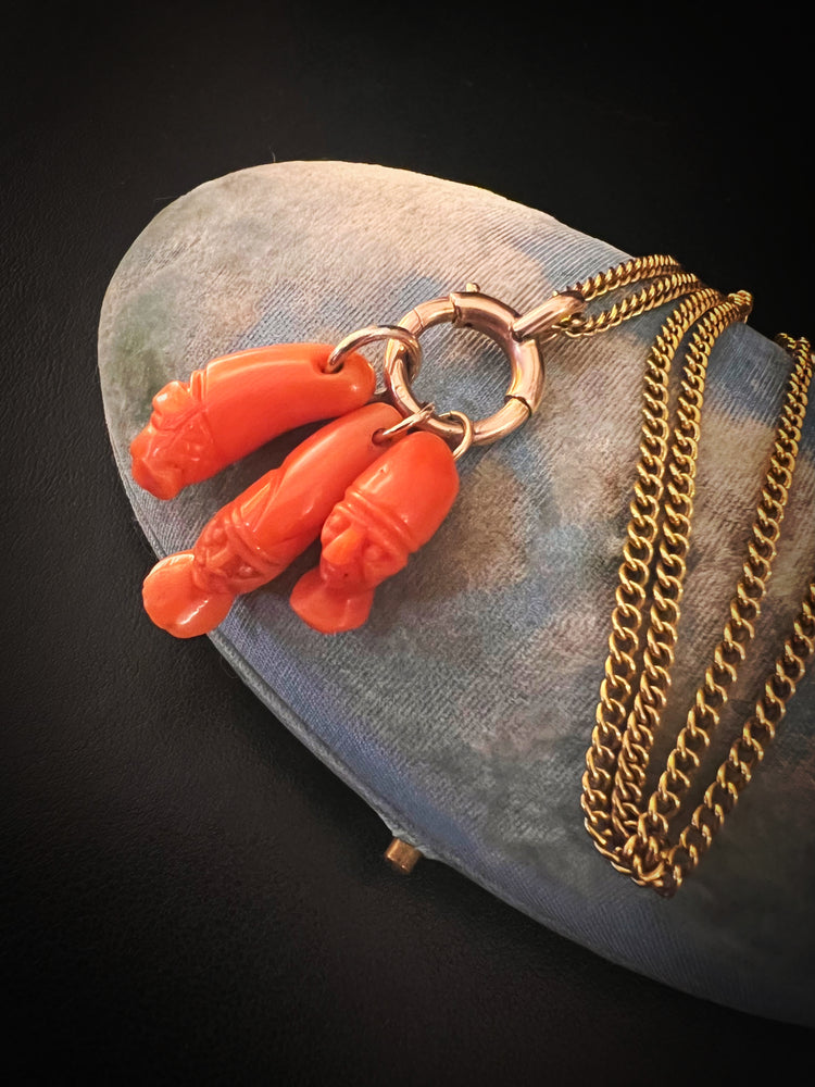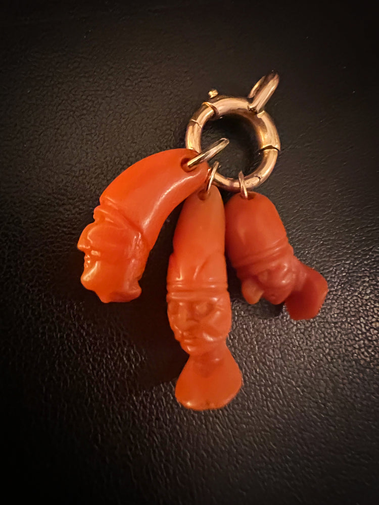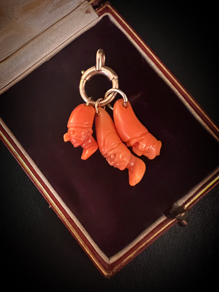 EARLY 19TH CENTURY PUNCHINELLO CORAL PENDANTS WITH LARGE BOLT RING BAIL