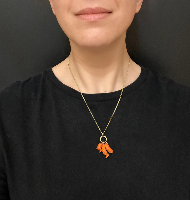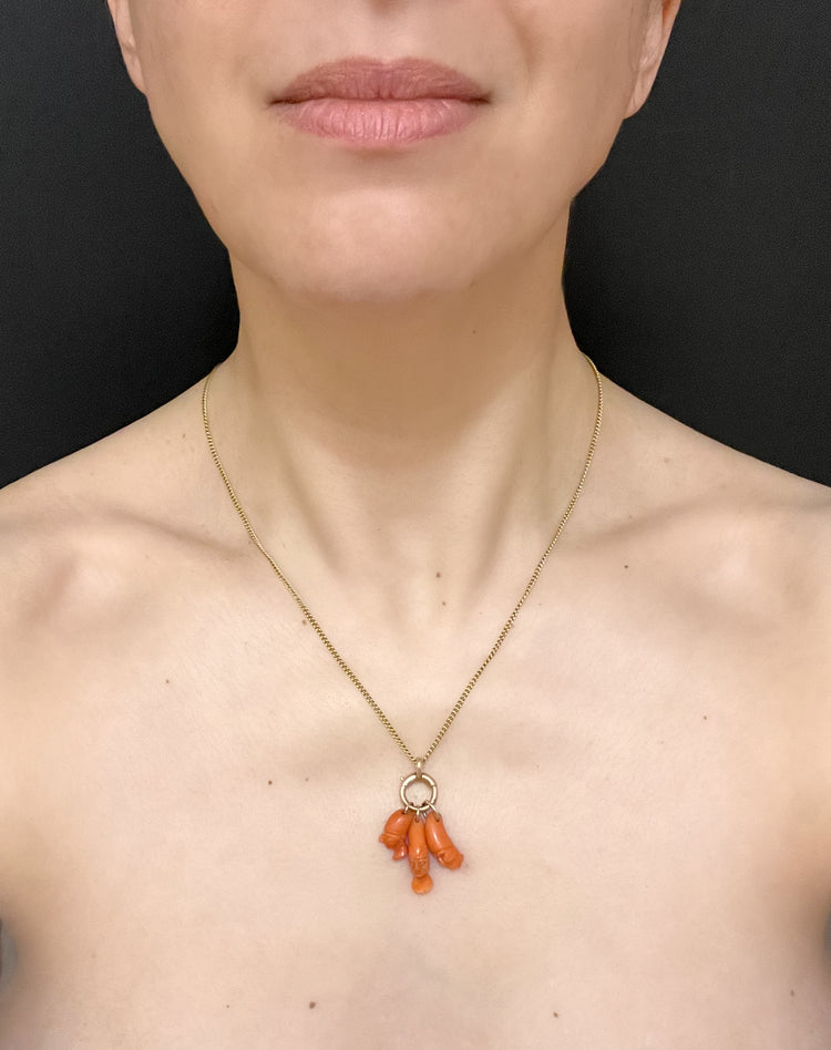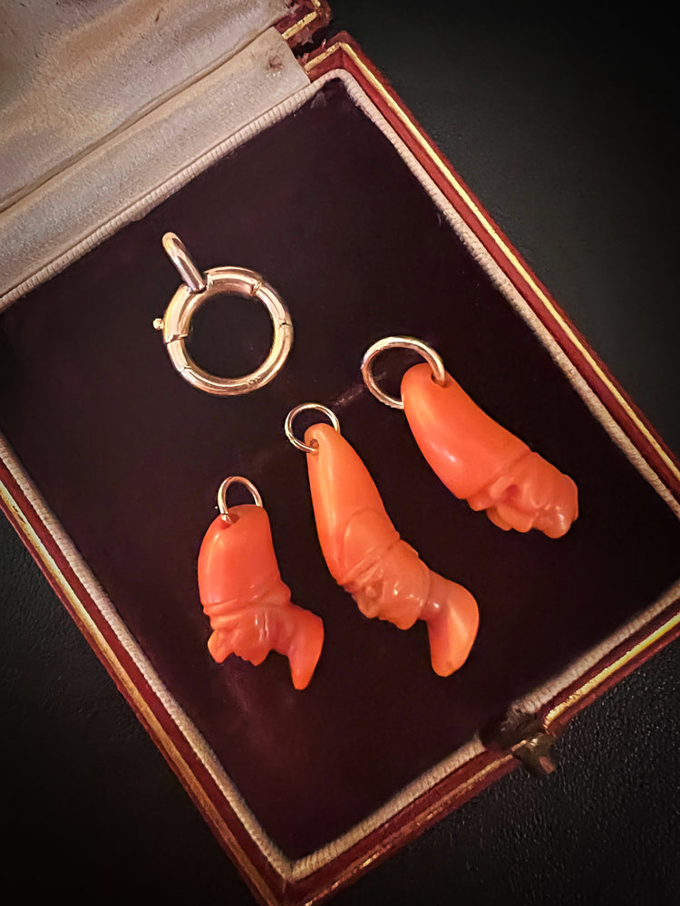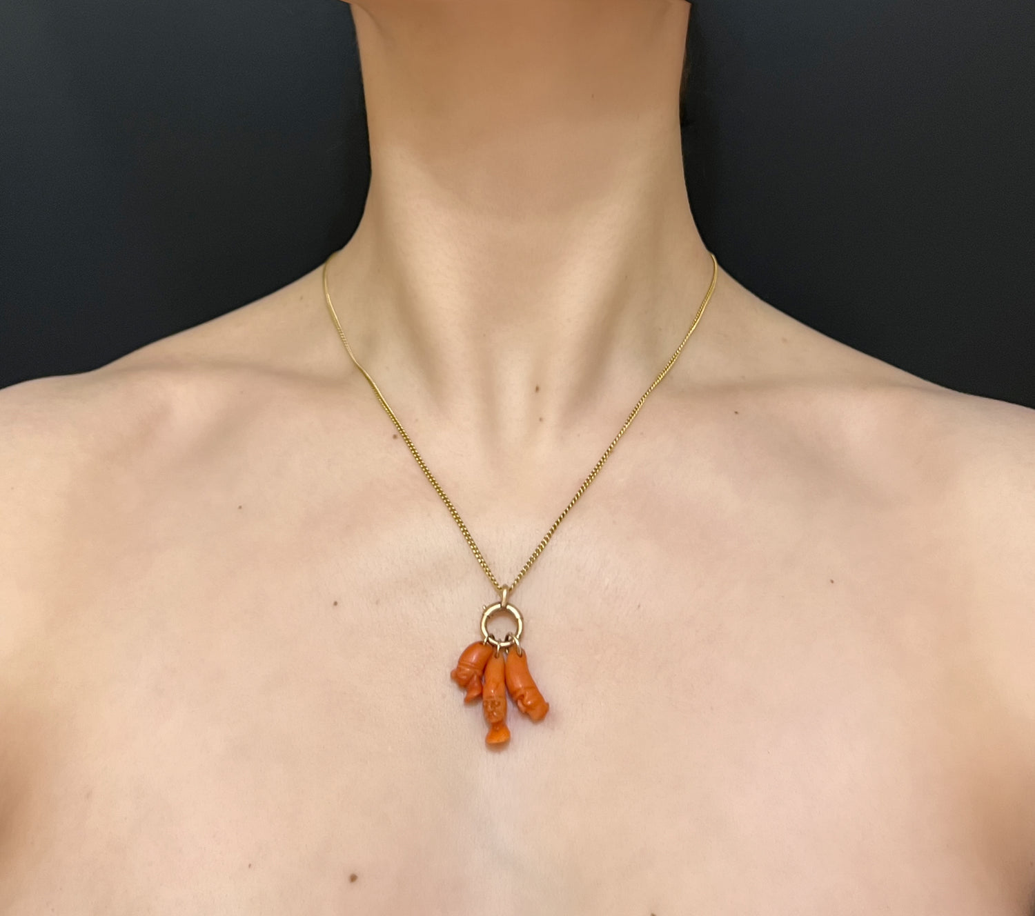 EARLY 19TH CENTURY PUNCHINELLO CORAL PENDANTS WITH LARGE BOLT RING BAIL
