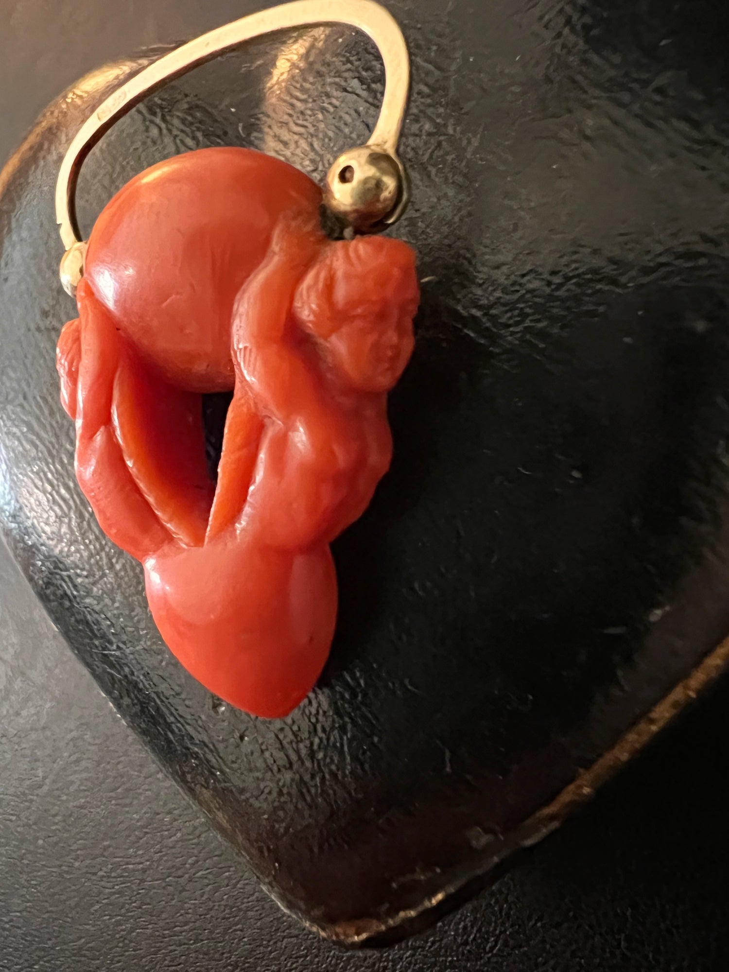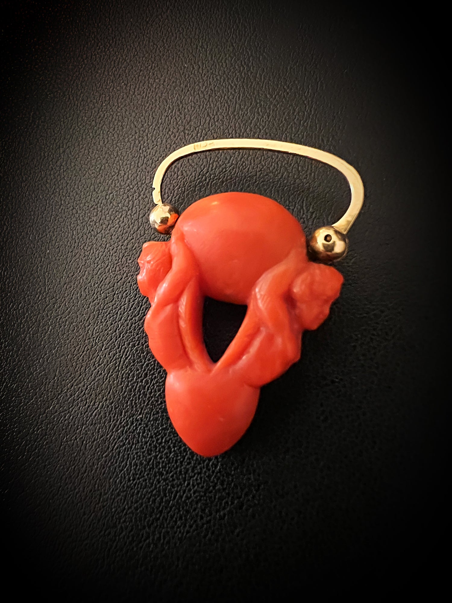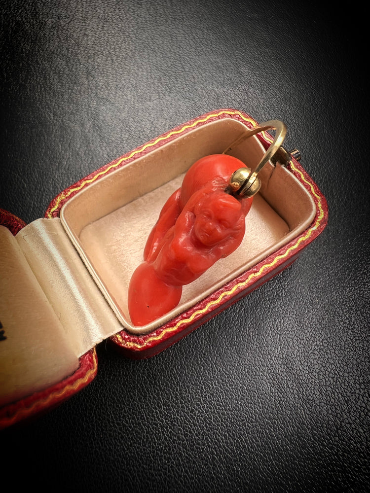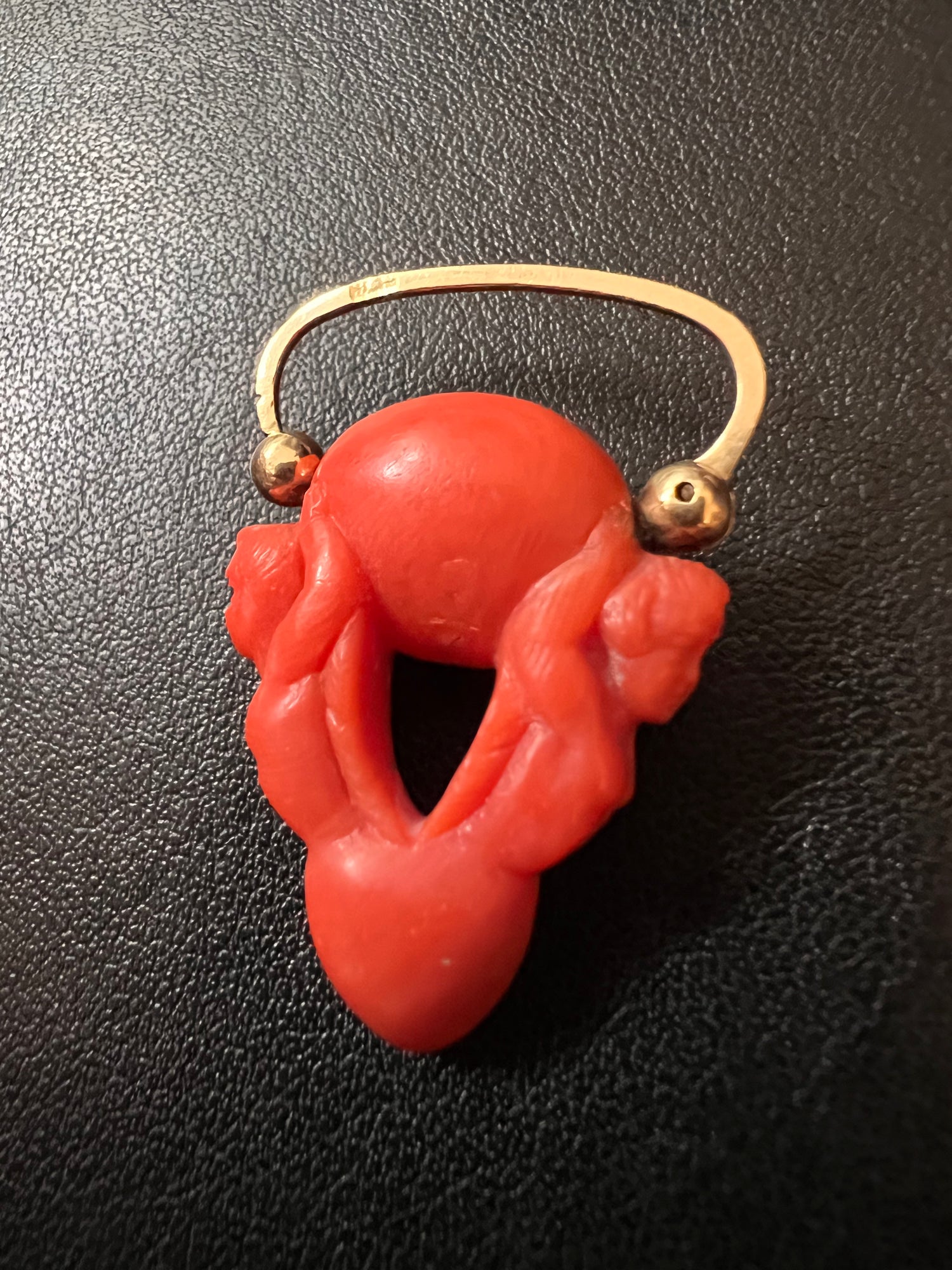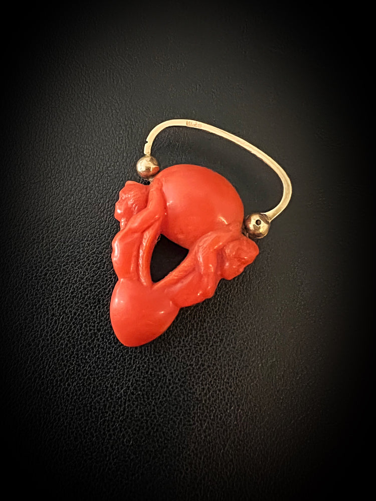 EARLY 19TH CENTURY CORAL CHERUB PADLOCK PENDANT