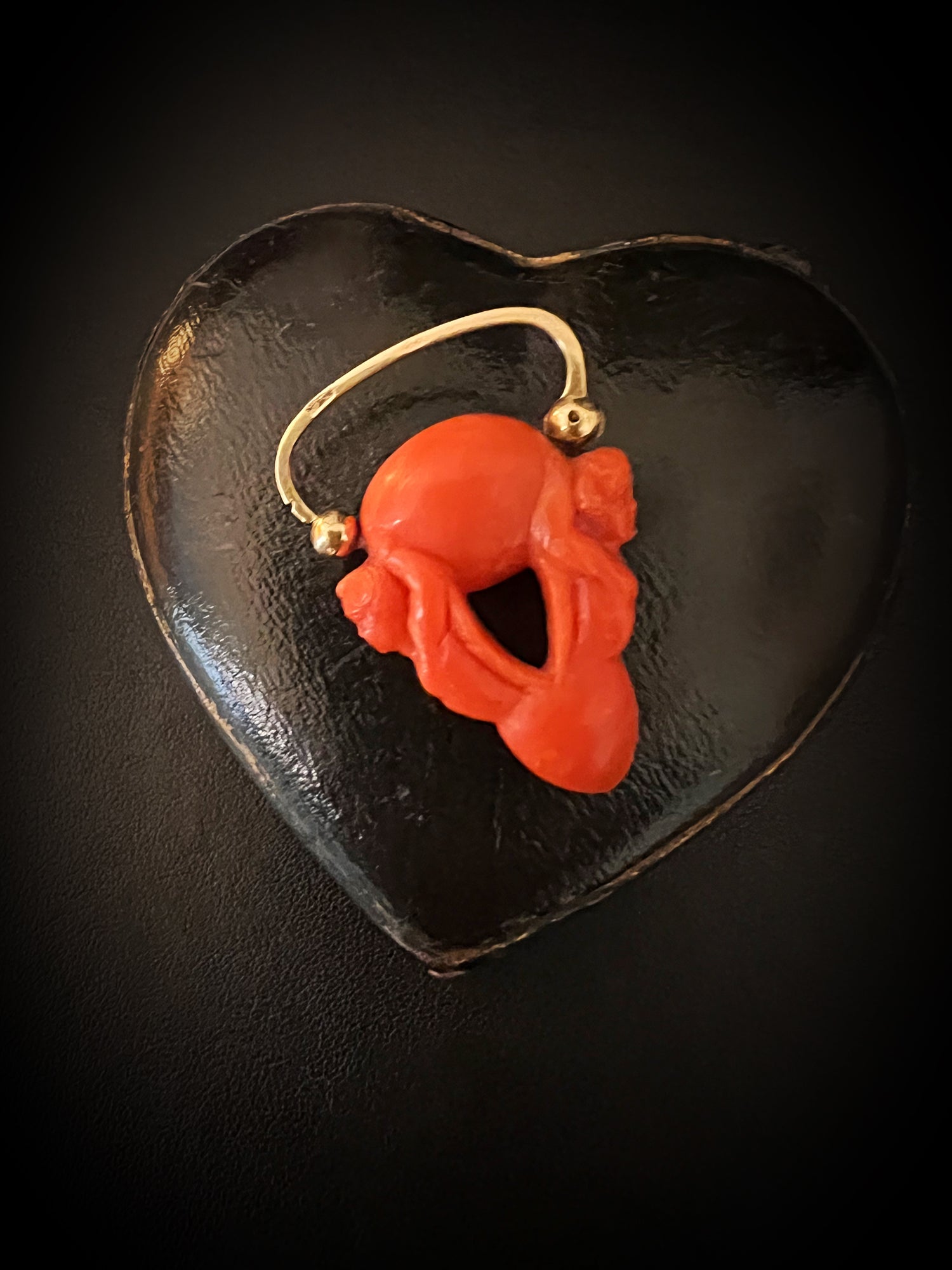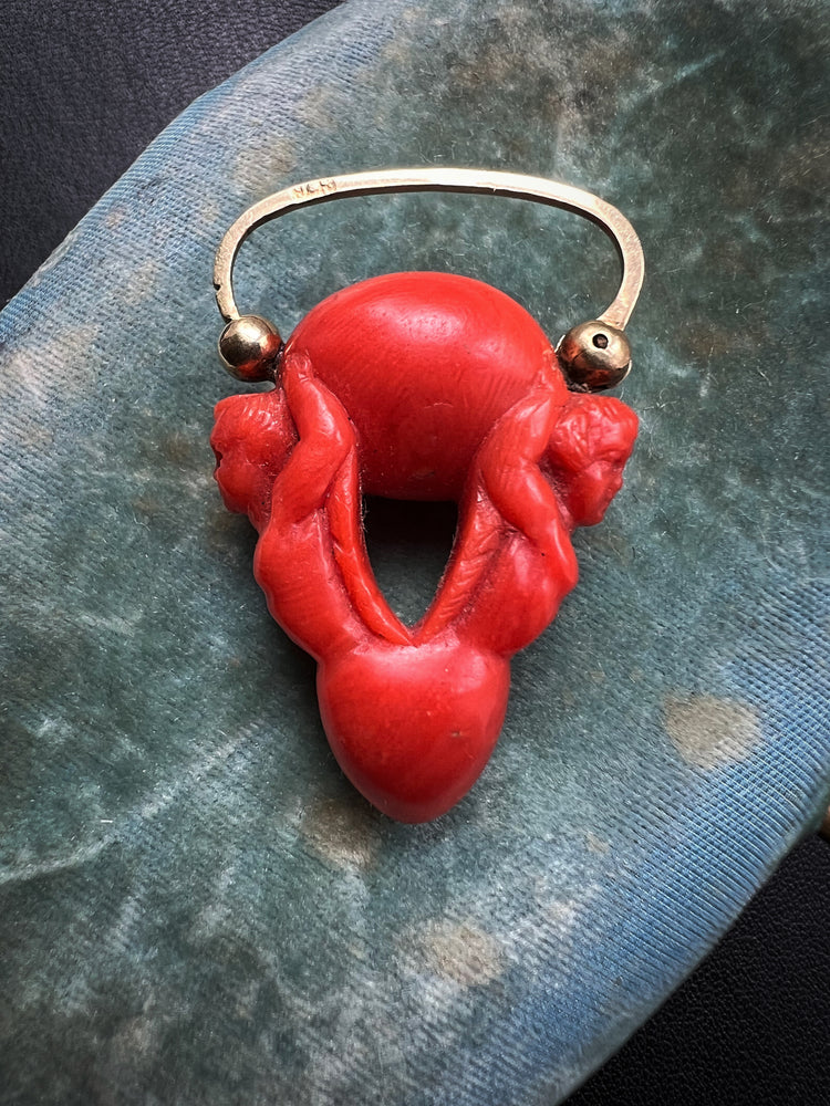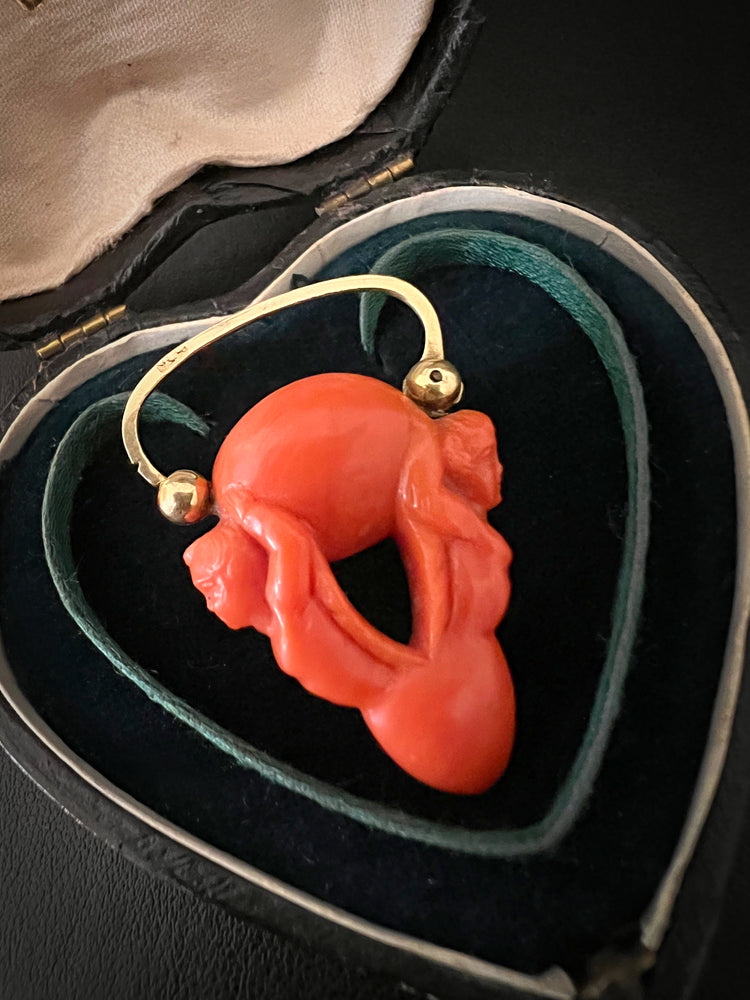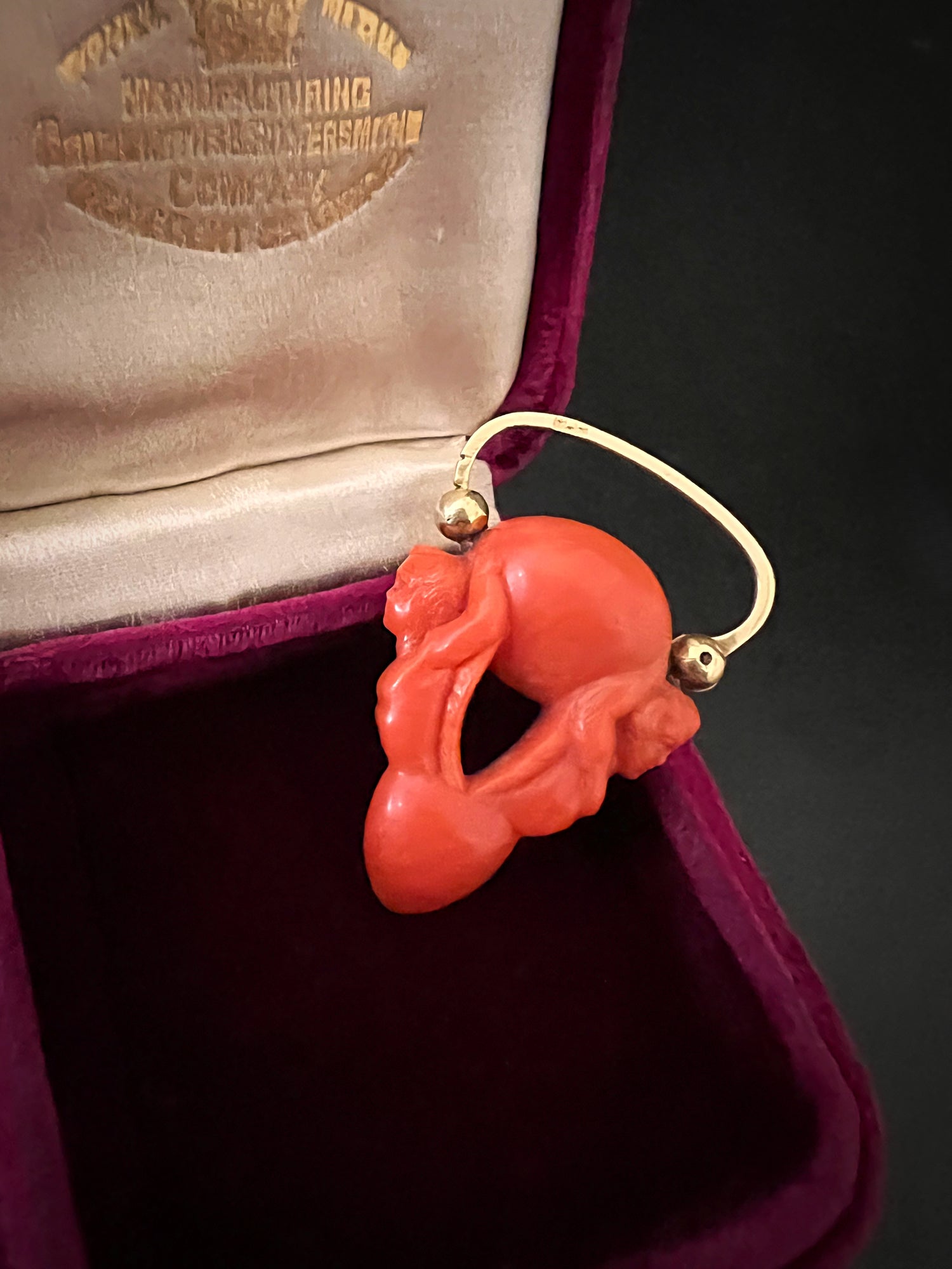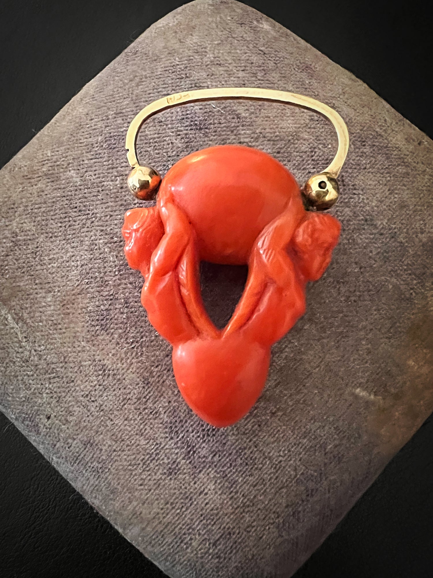 EARLY 19TH CENTURY CORAL CHERUB PADLOCK PENDANT