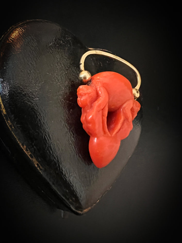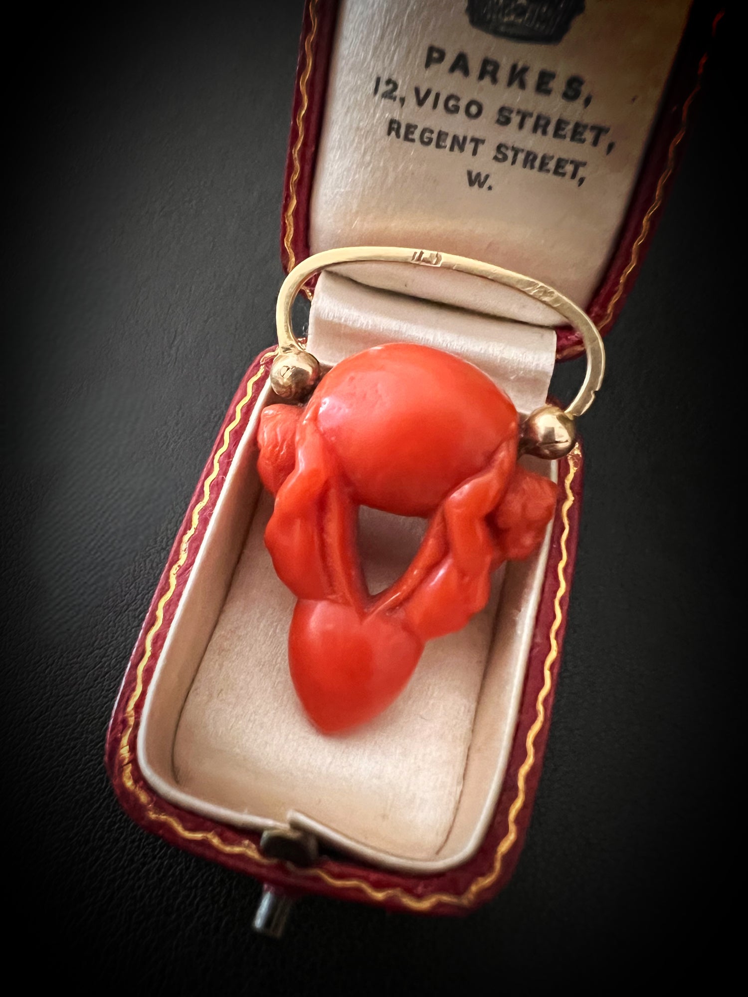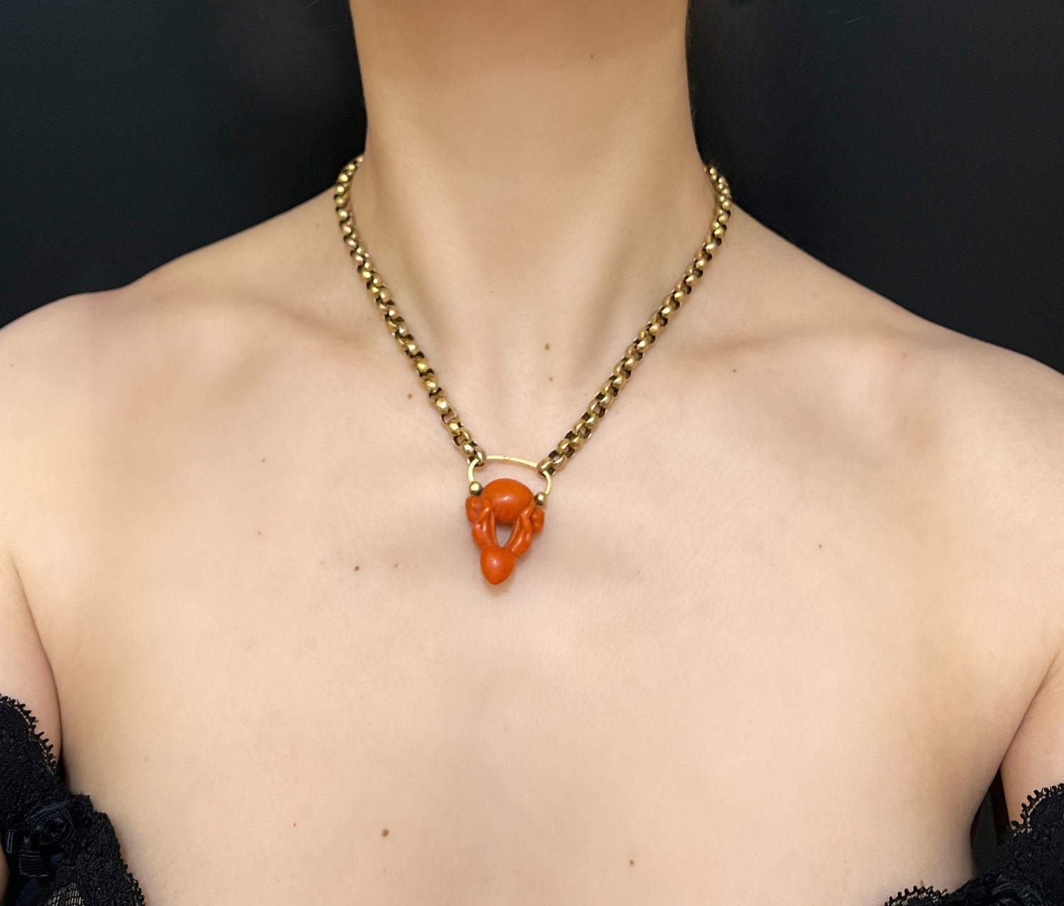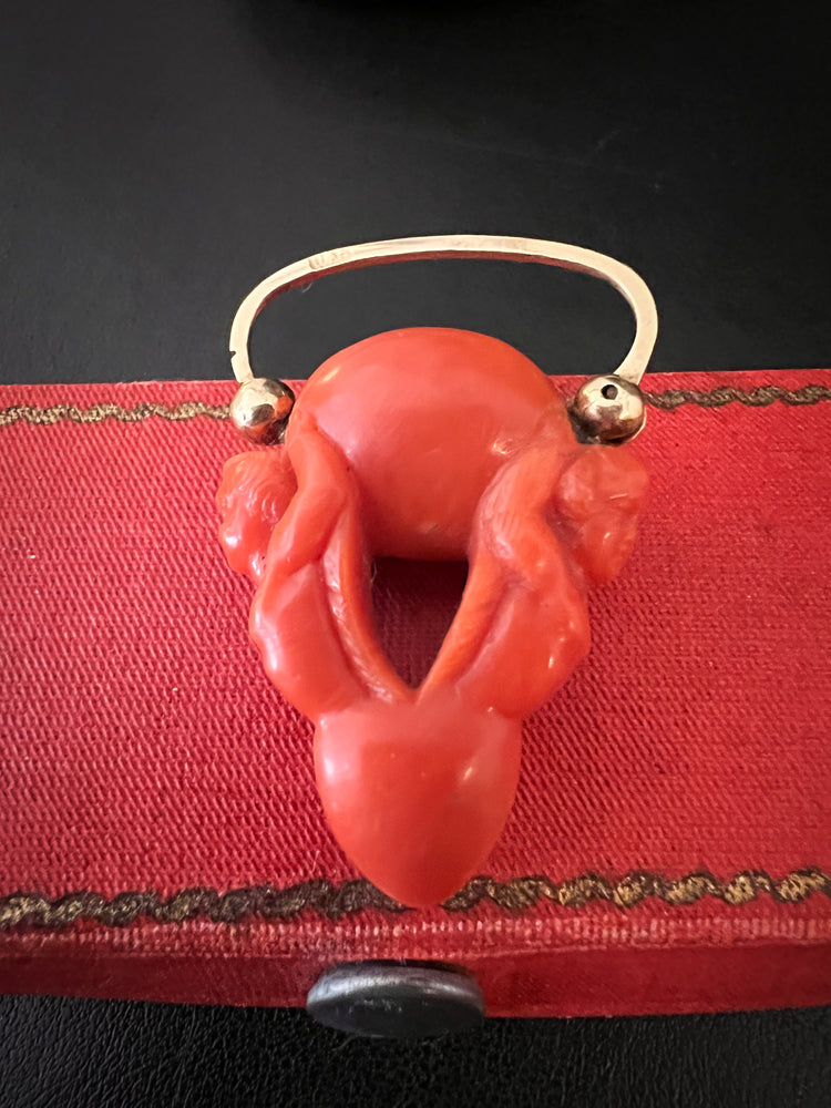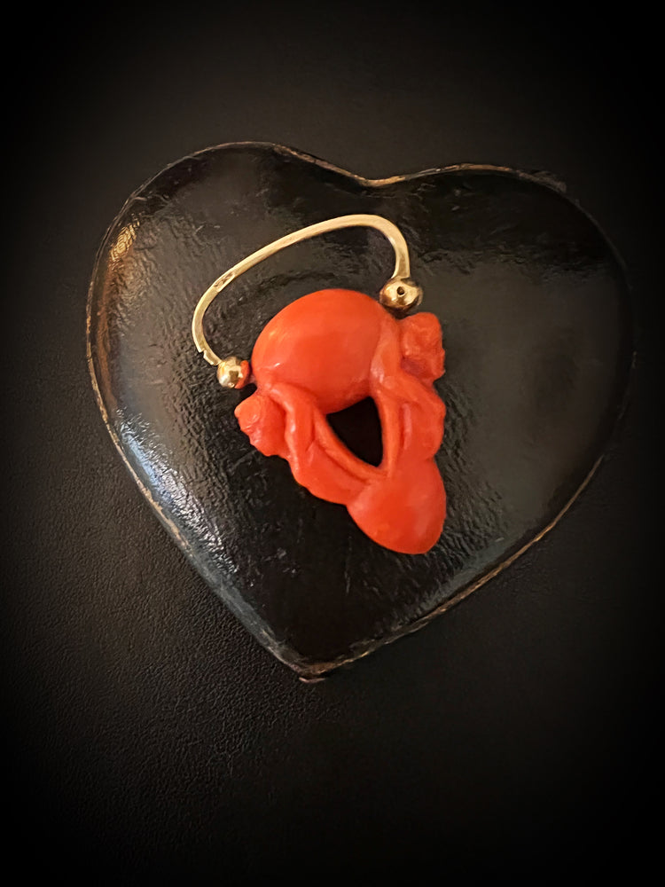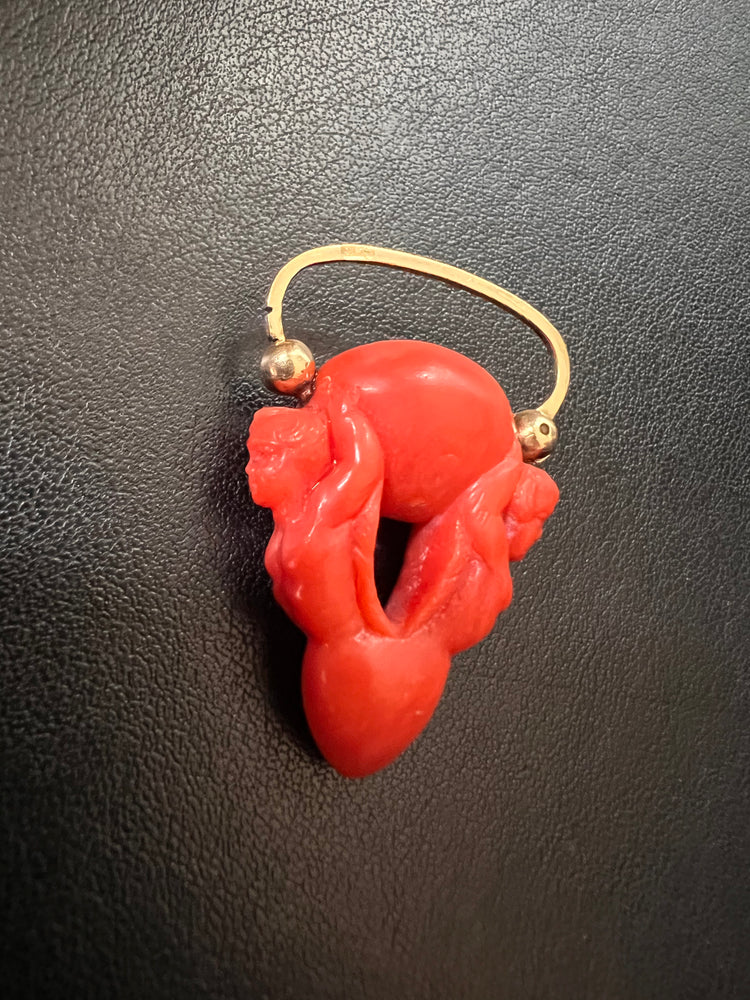EARLY 19TH CENTURY CORAL CHERUB PADLOCK PENDANT