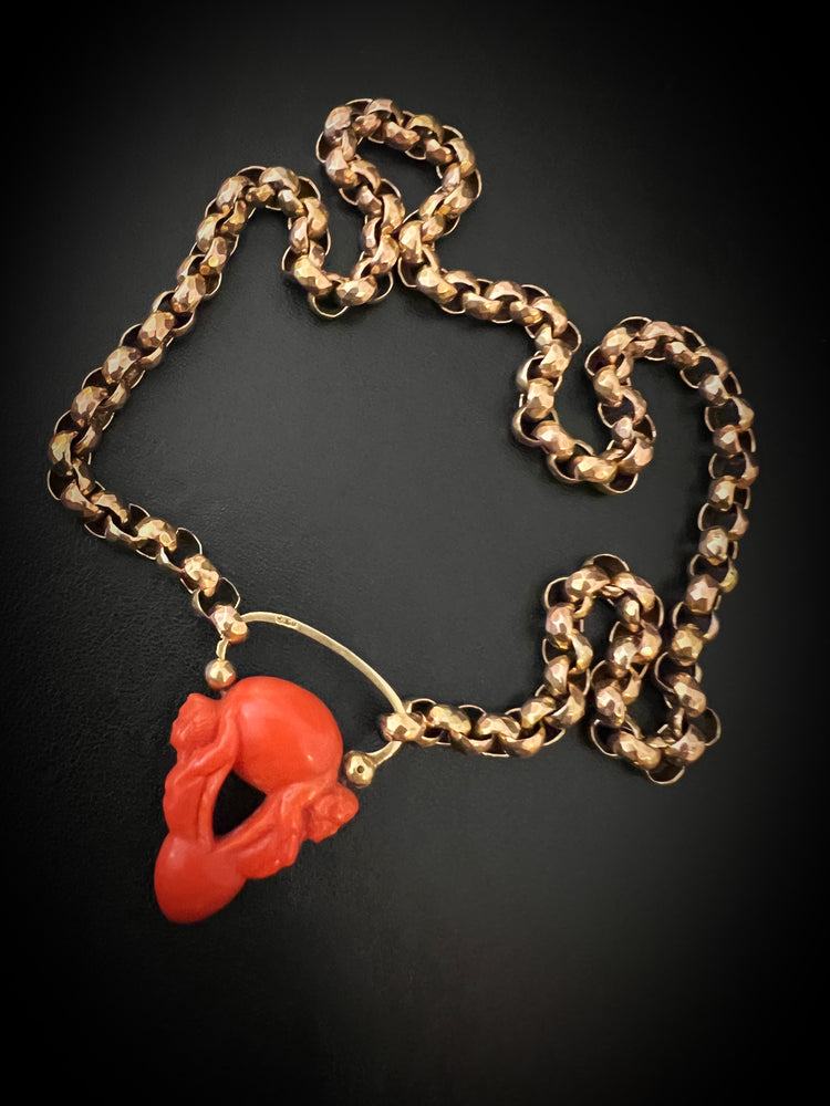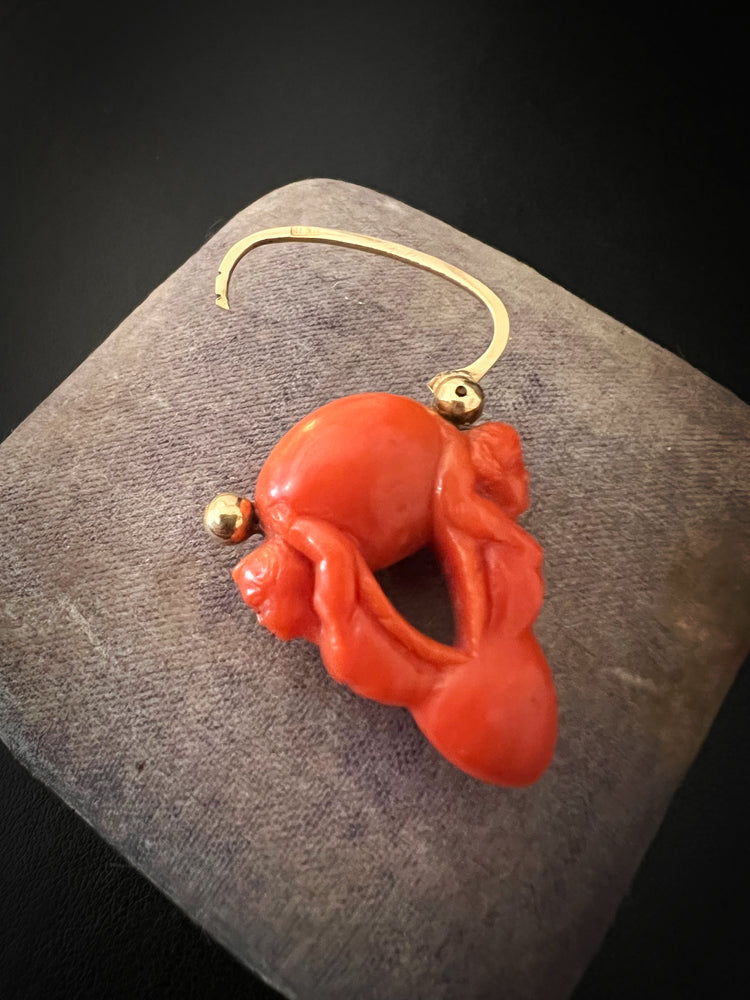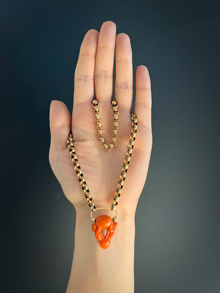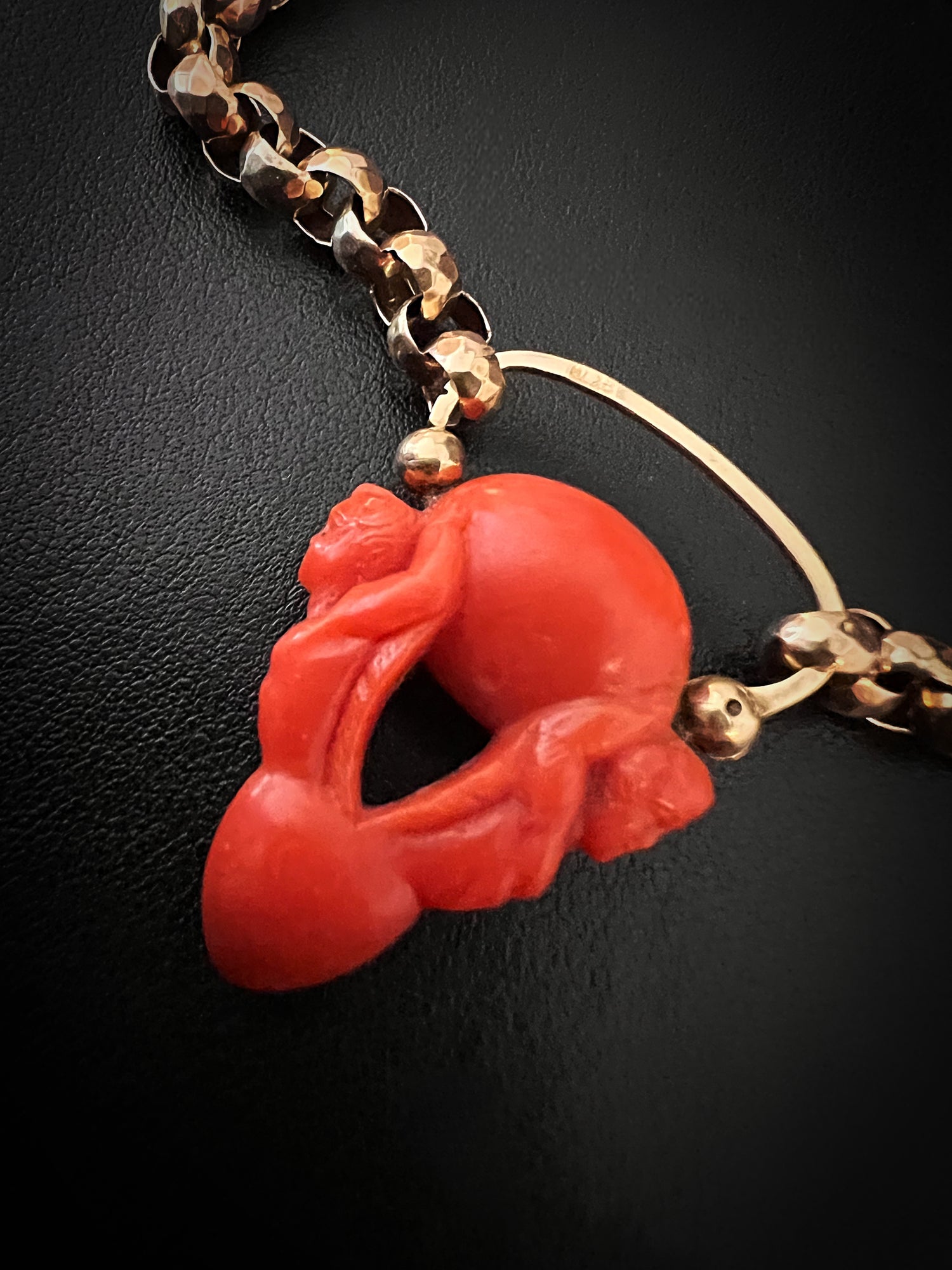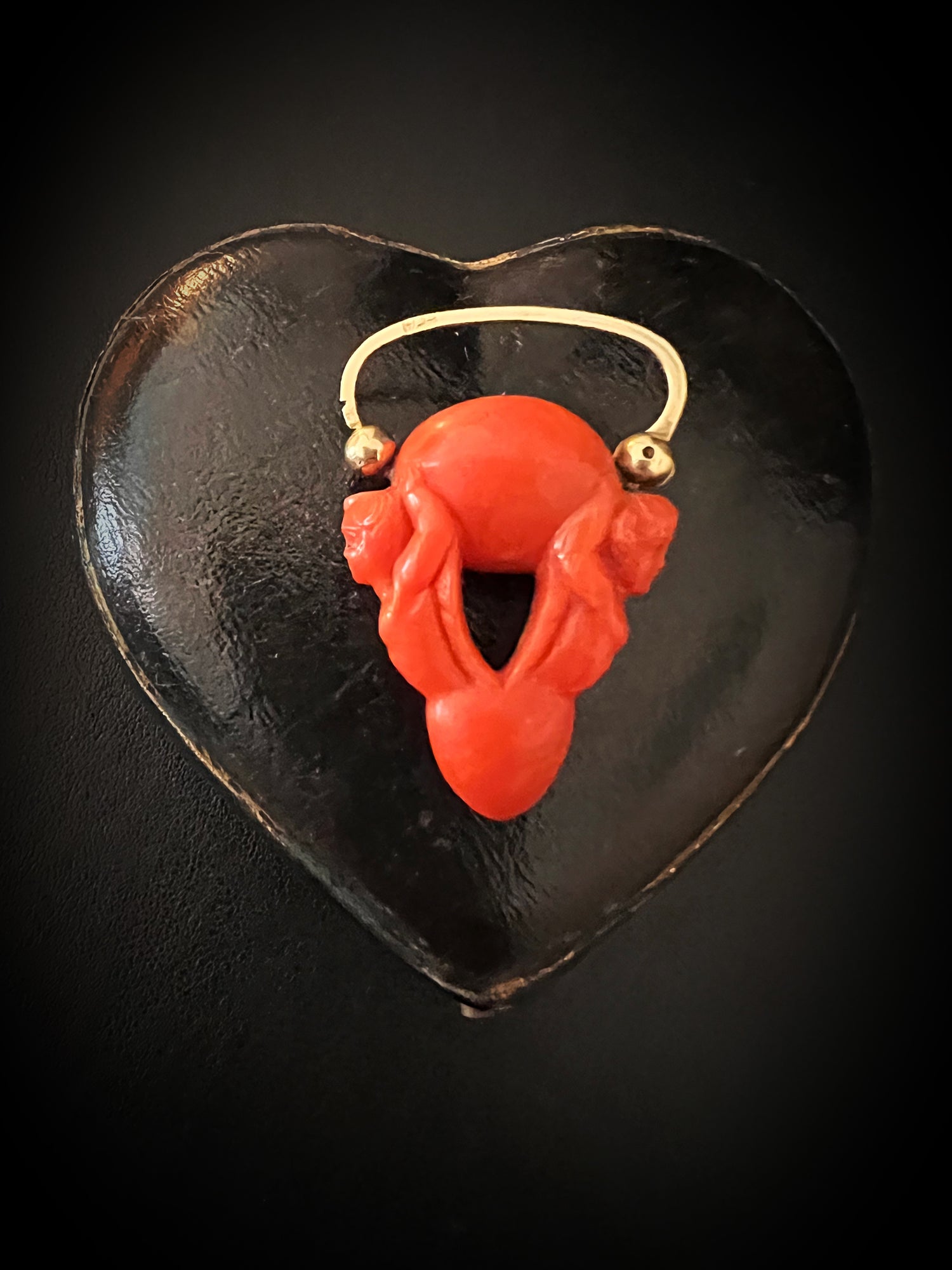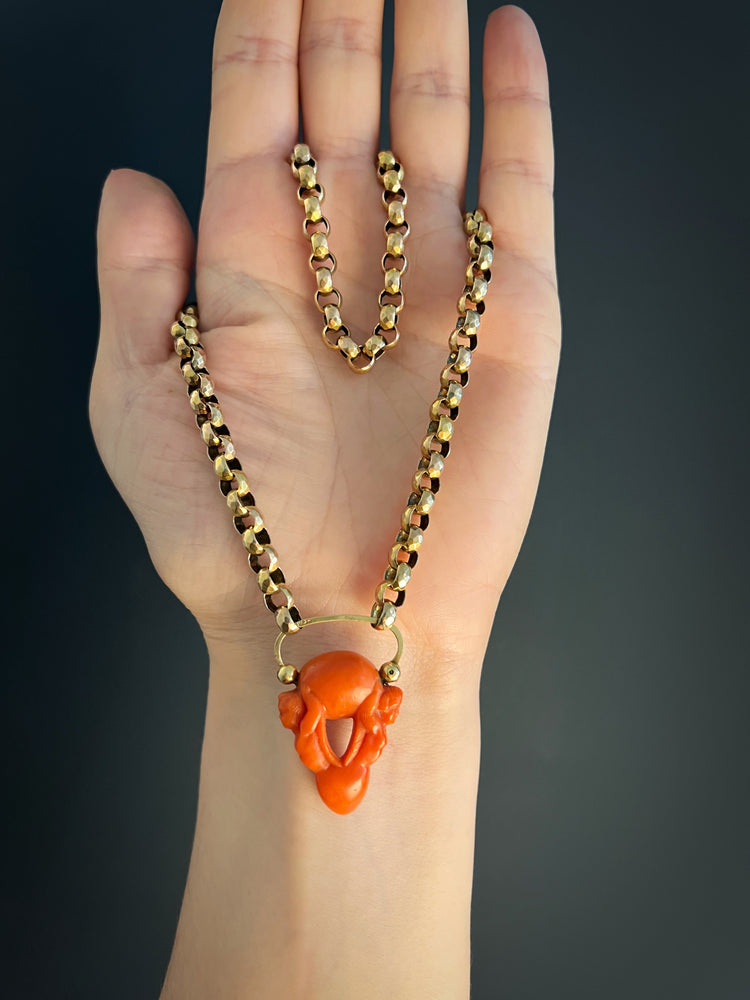 EARLY 19TH CENTURY CORAL CHERUB PADLOCK PENDANT