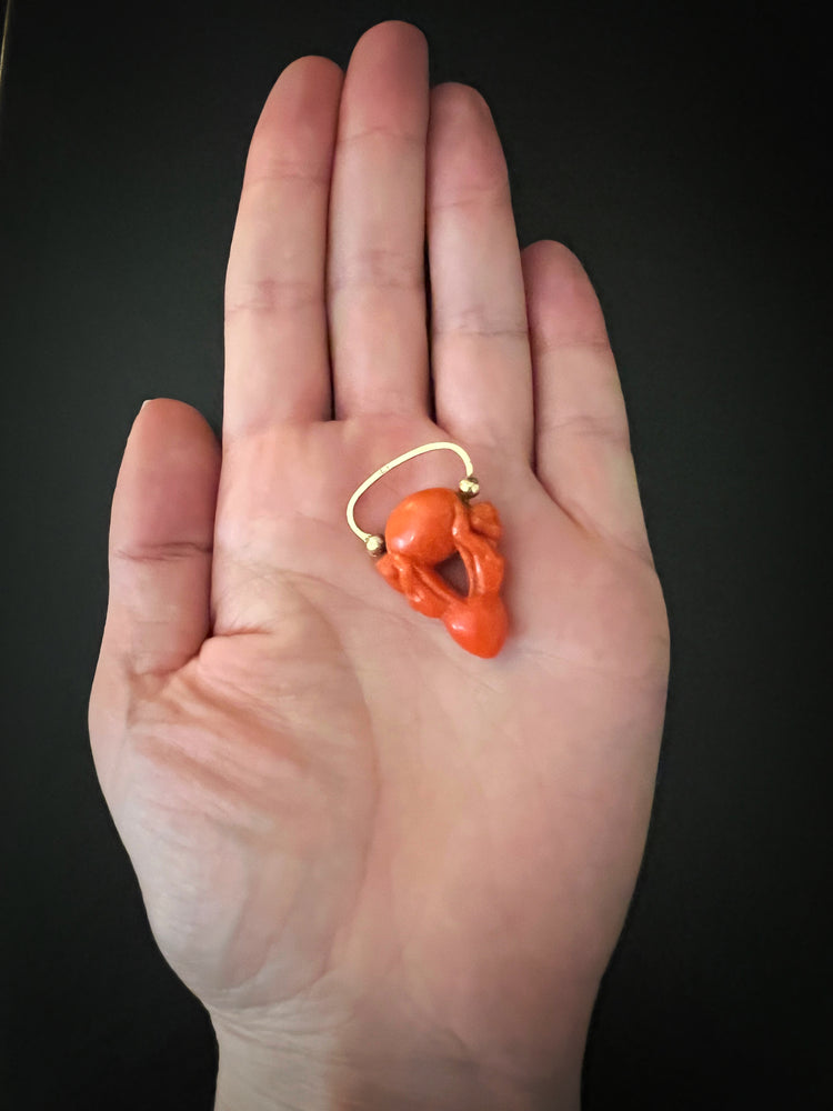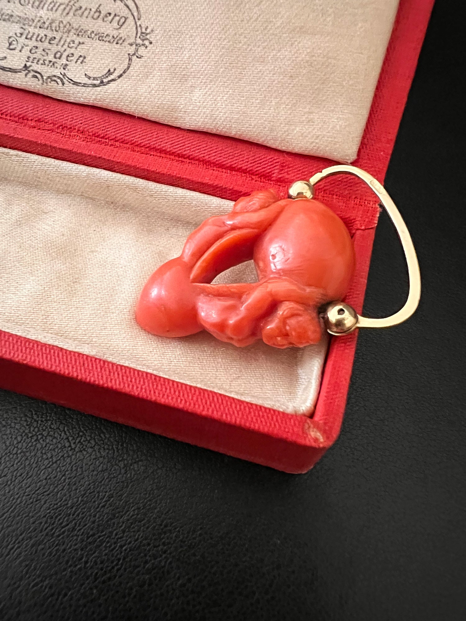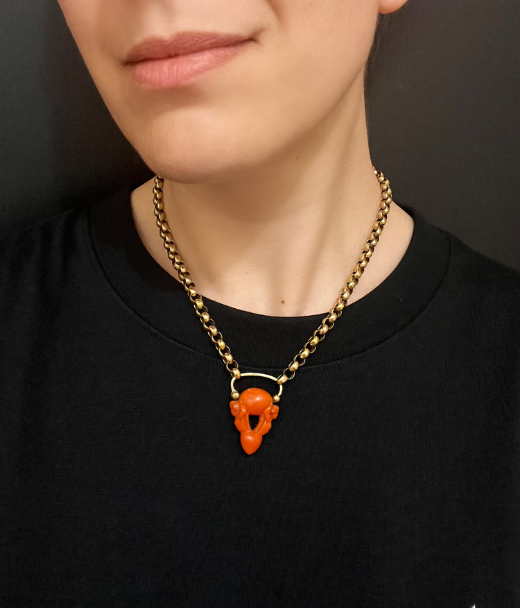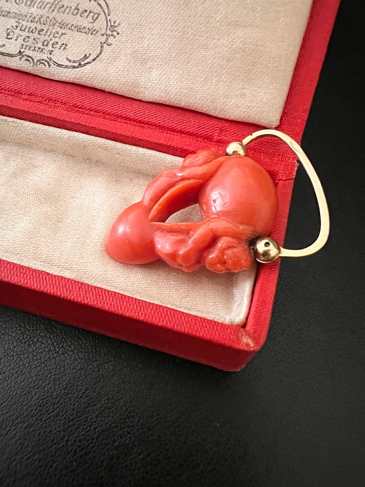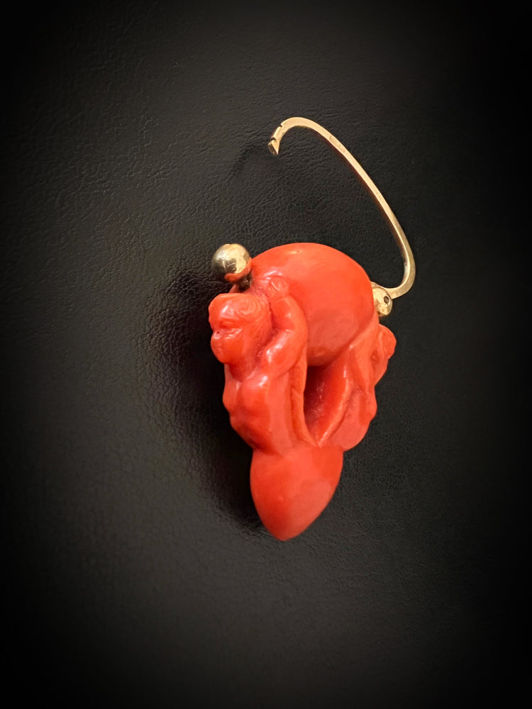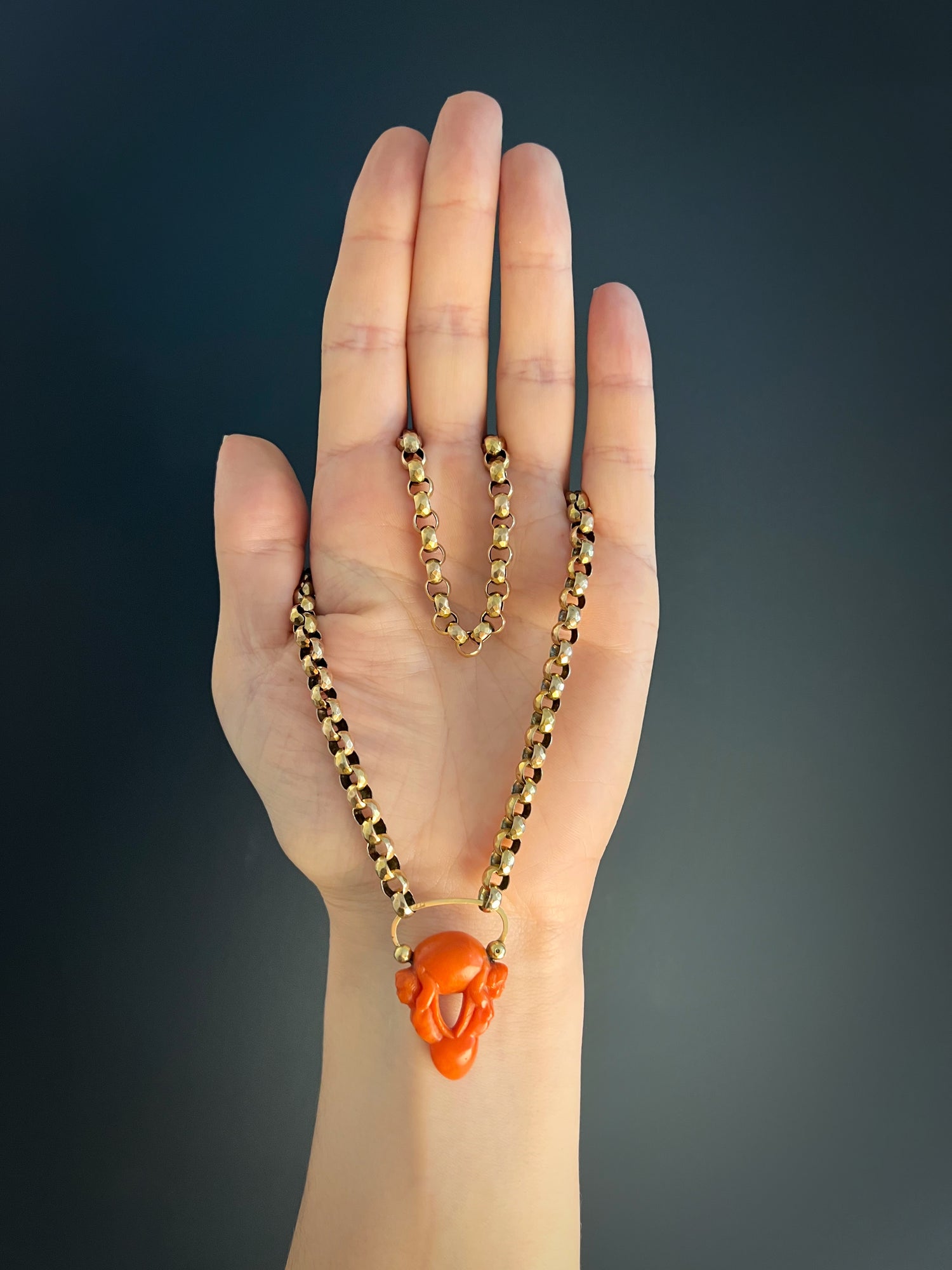 EARLY 19TH CENTURY CORAL CHERUB PADLOCK PENDANT