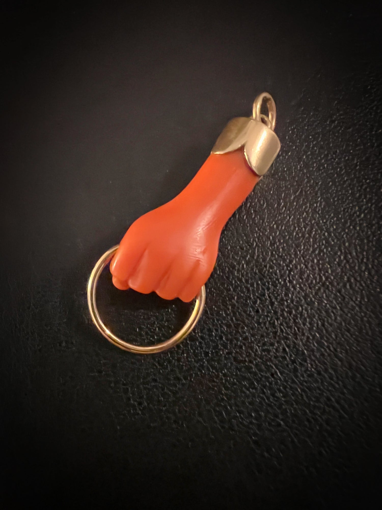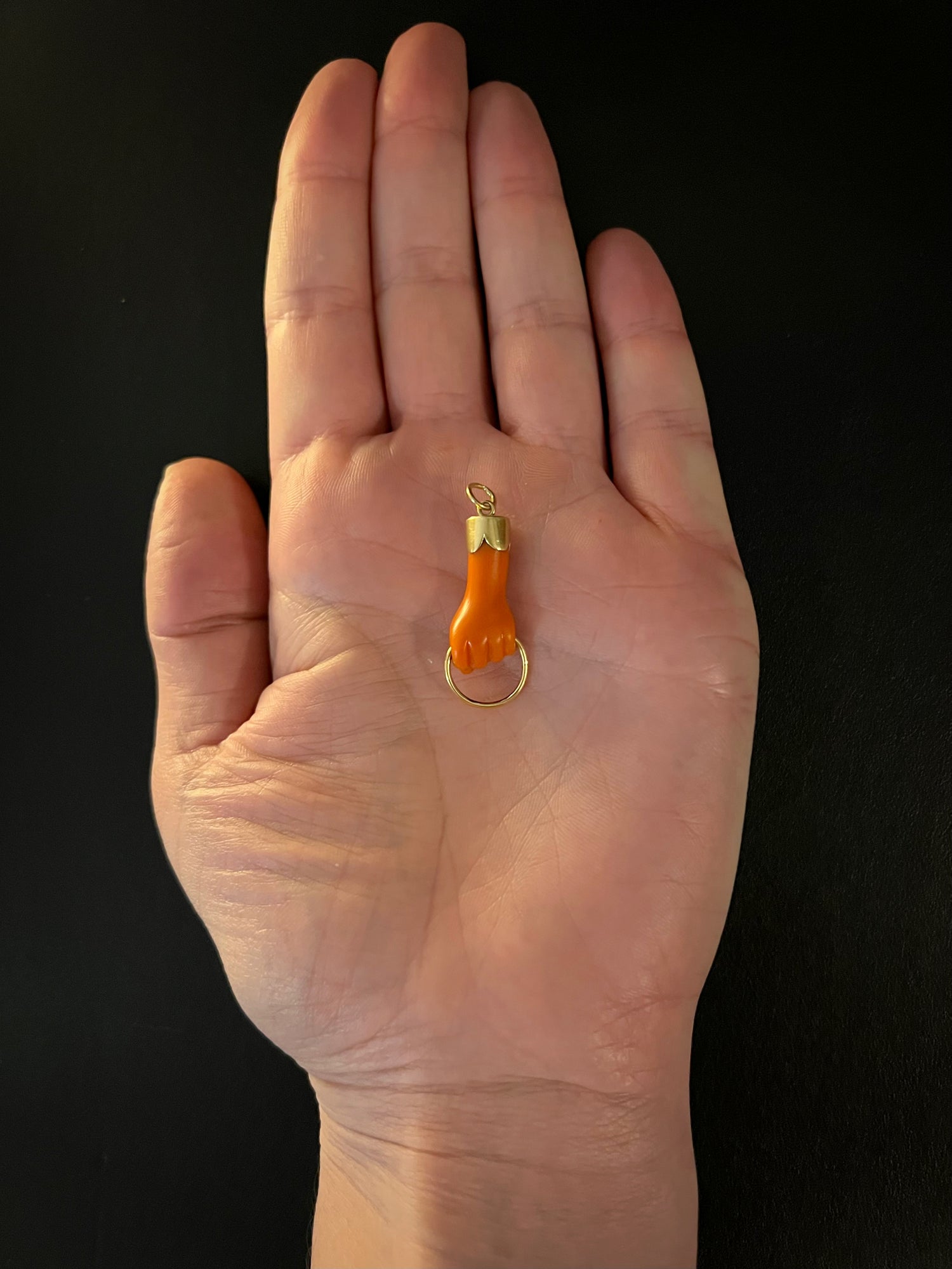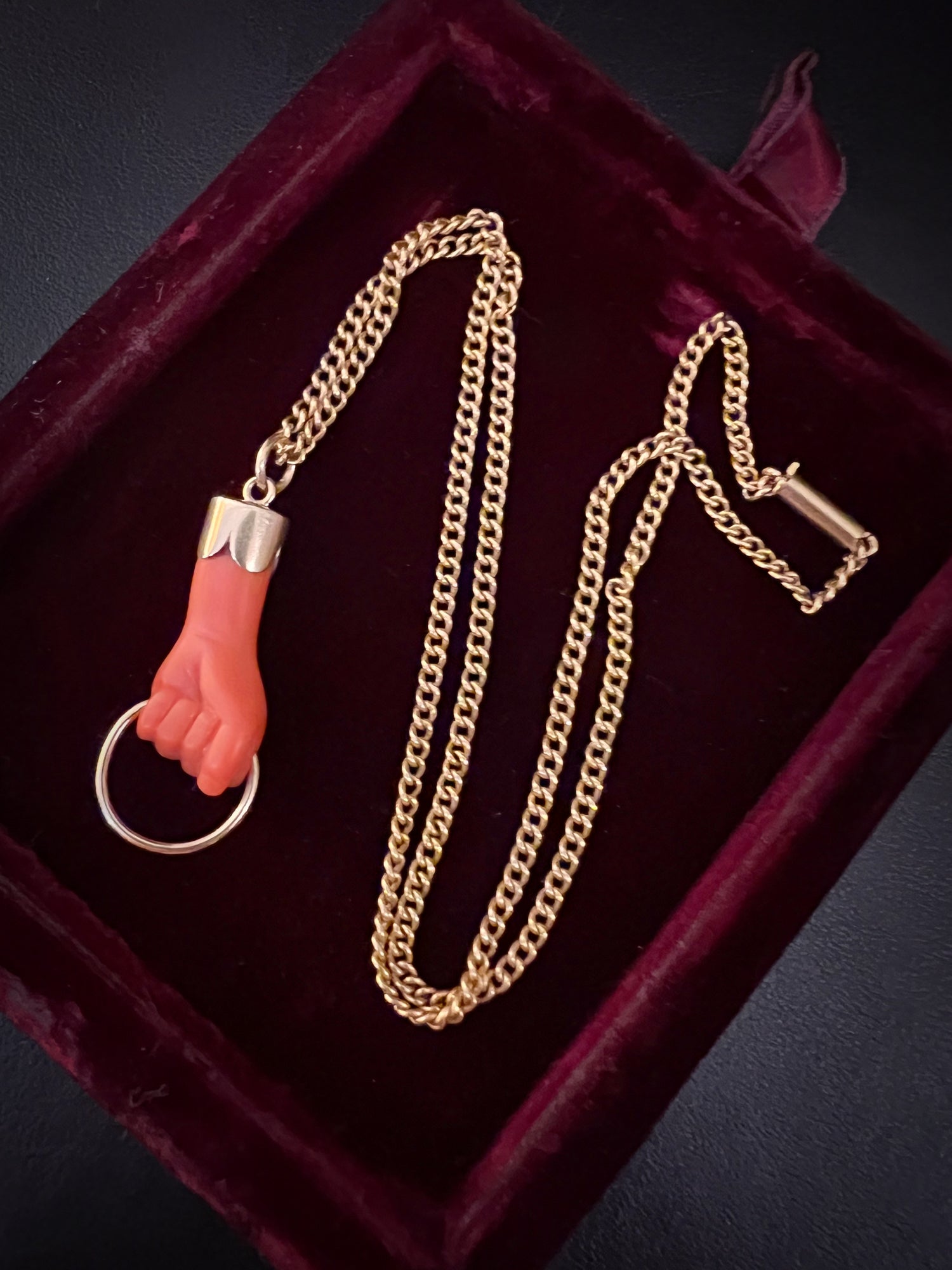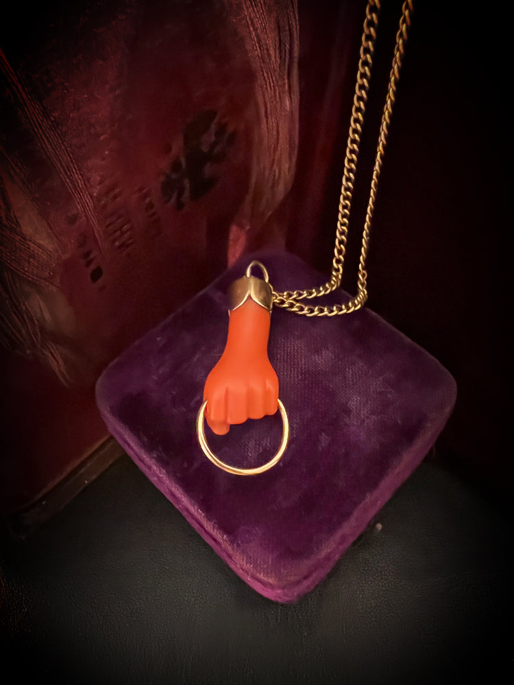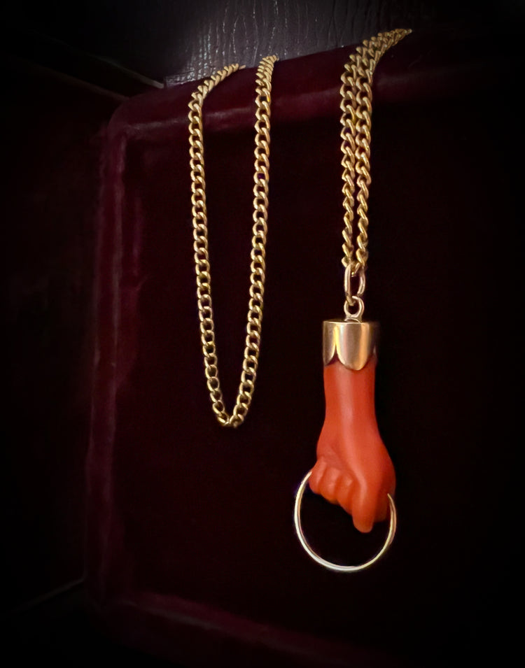 19TH CENTURY CORAL & 18CT GOLD HAND PENDANT