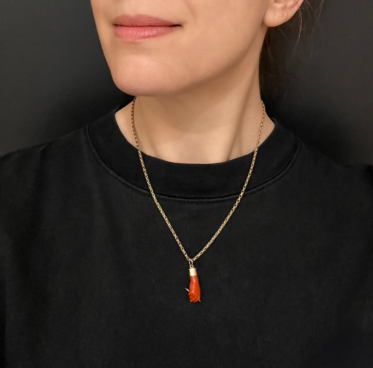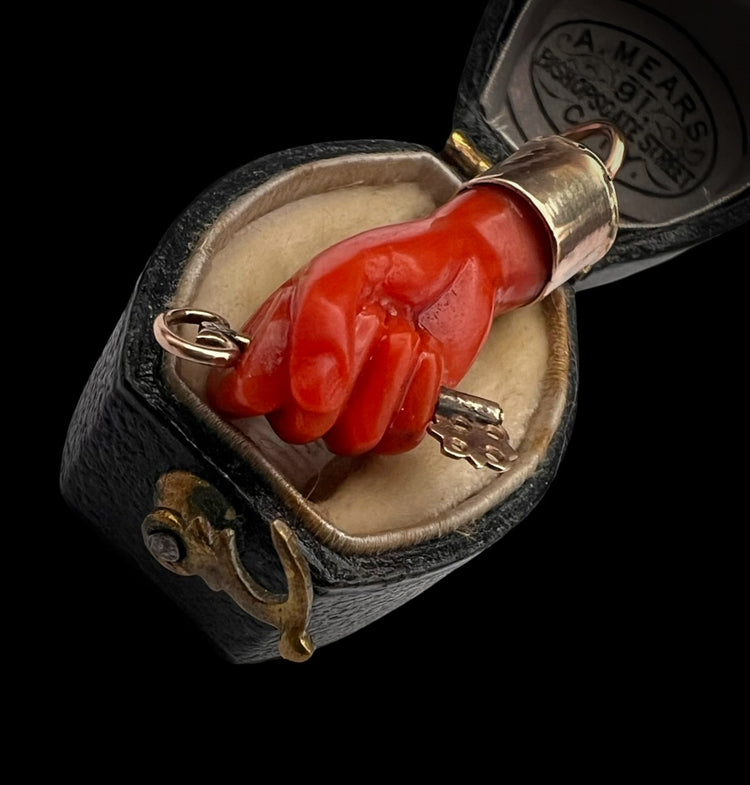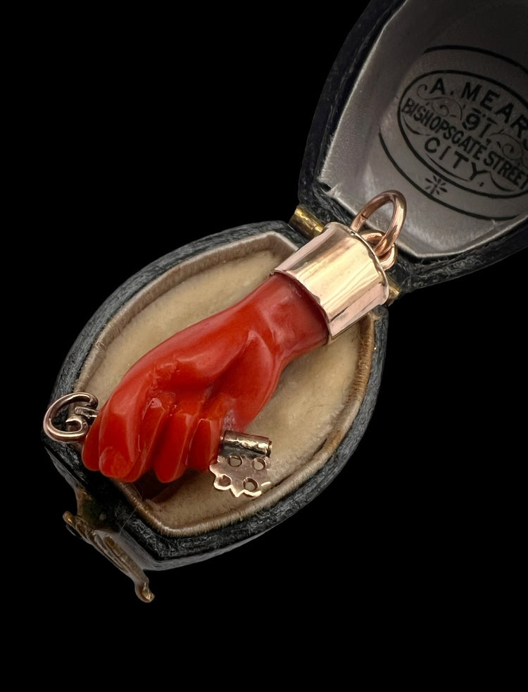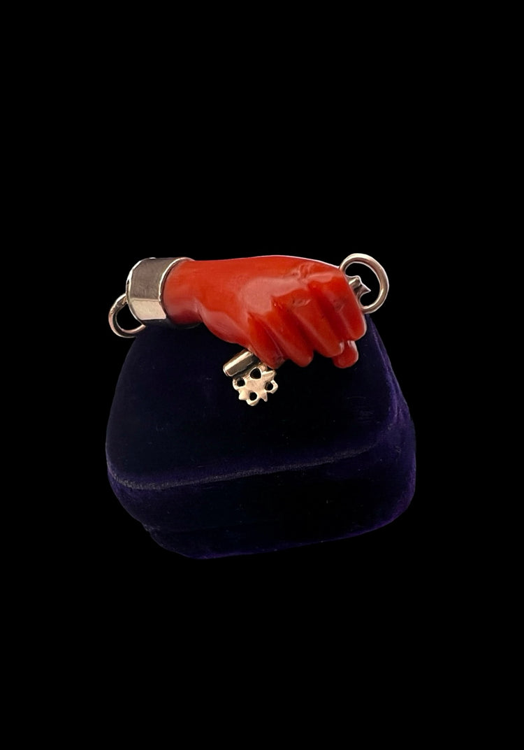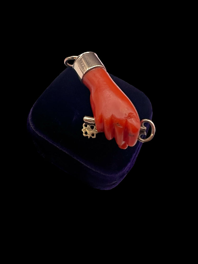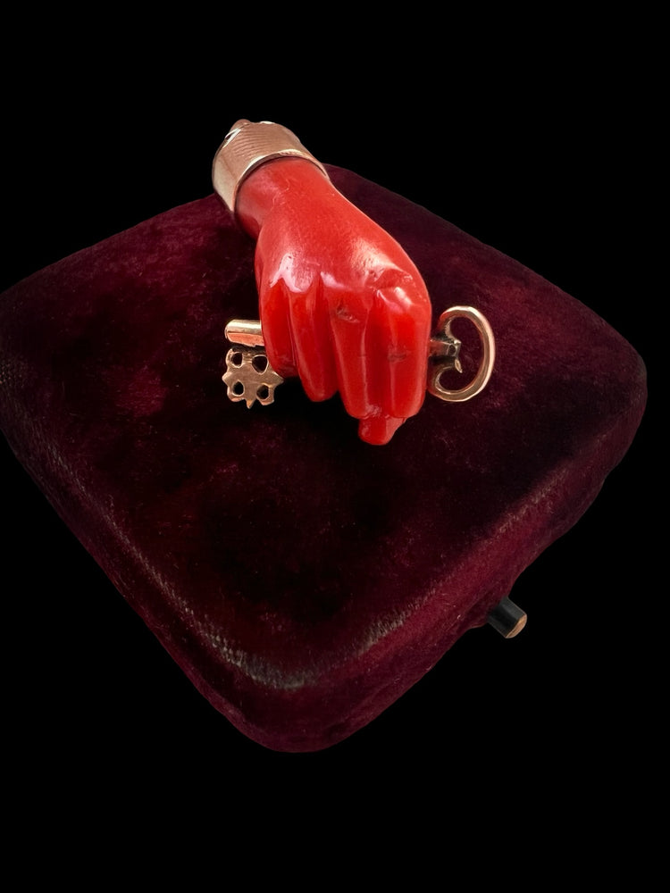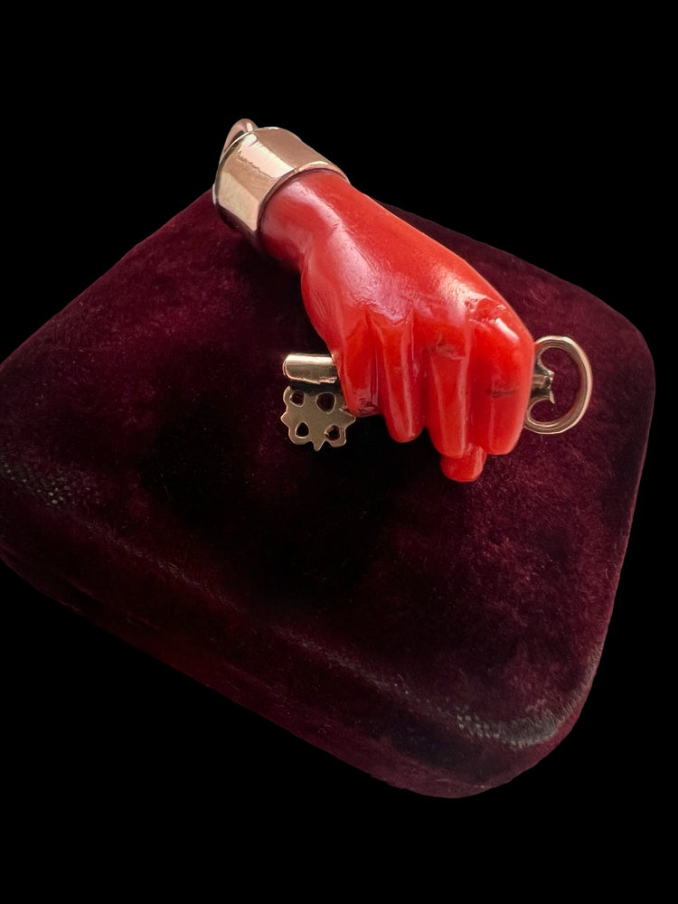 EARLY 19TH CENTURY CORAL HAND WITH GOLD KEY PENDANT