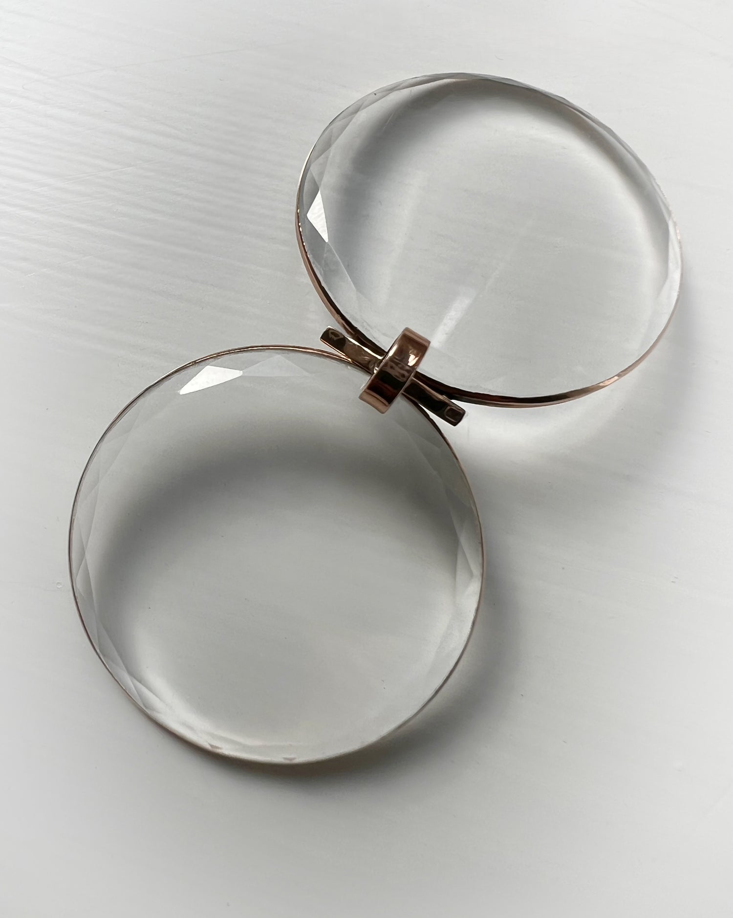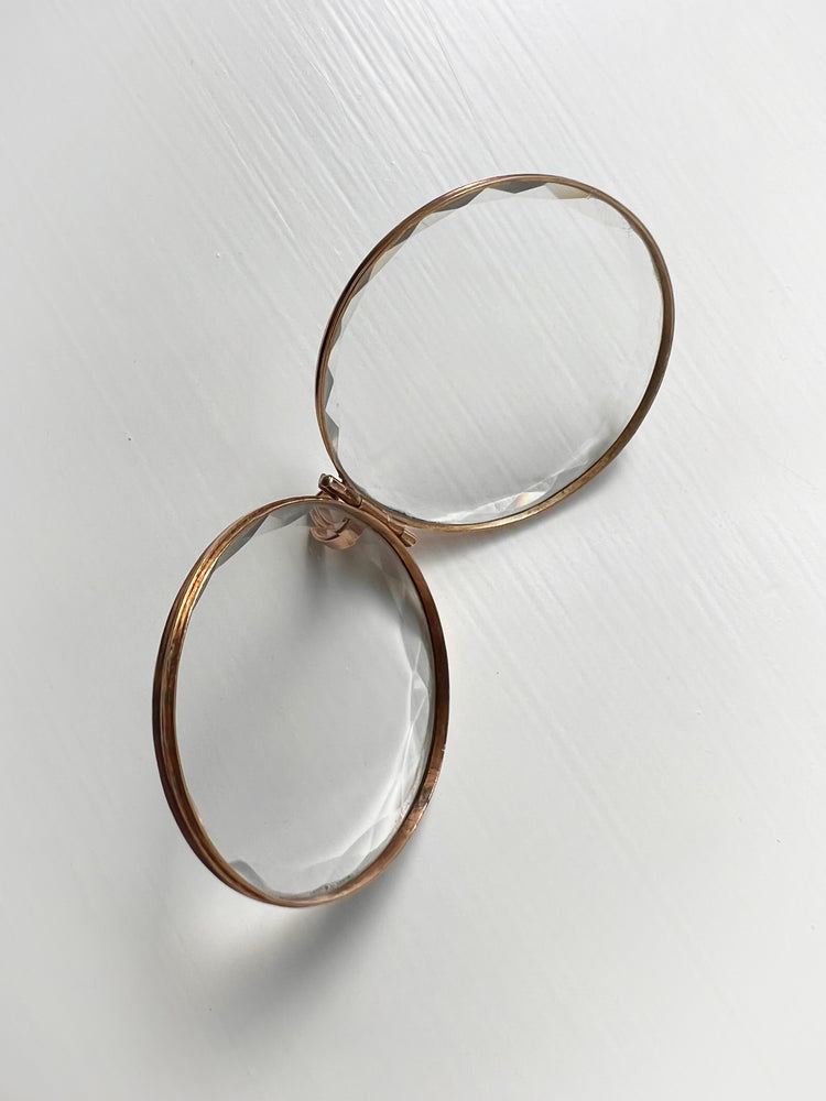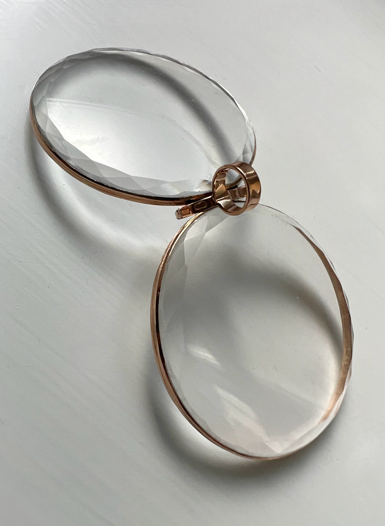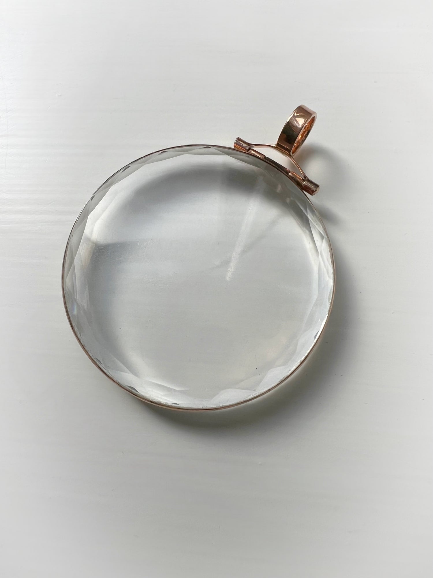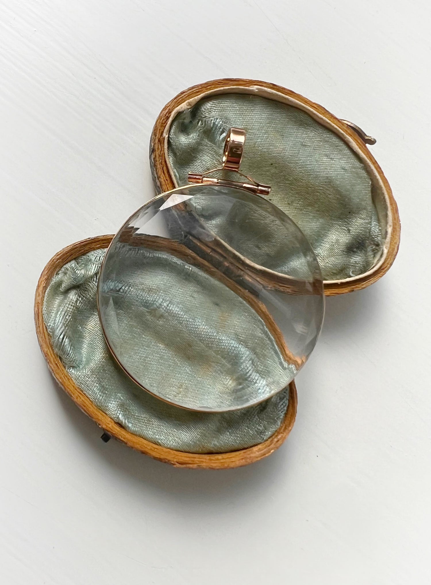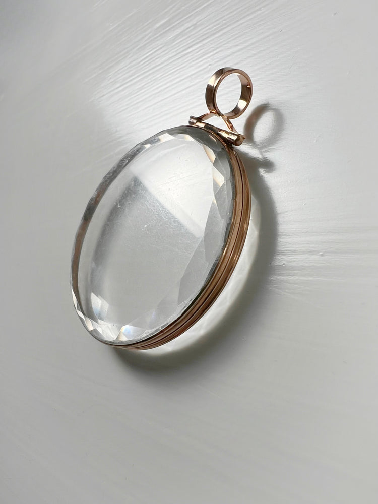 A beautiful early 19th century double sided faceted glass locket with a 9ct gold frame.