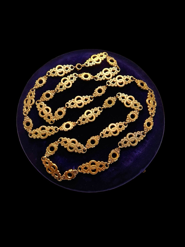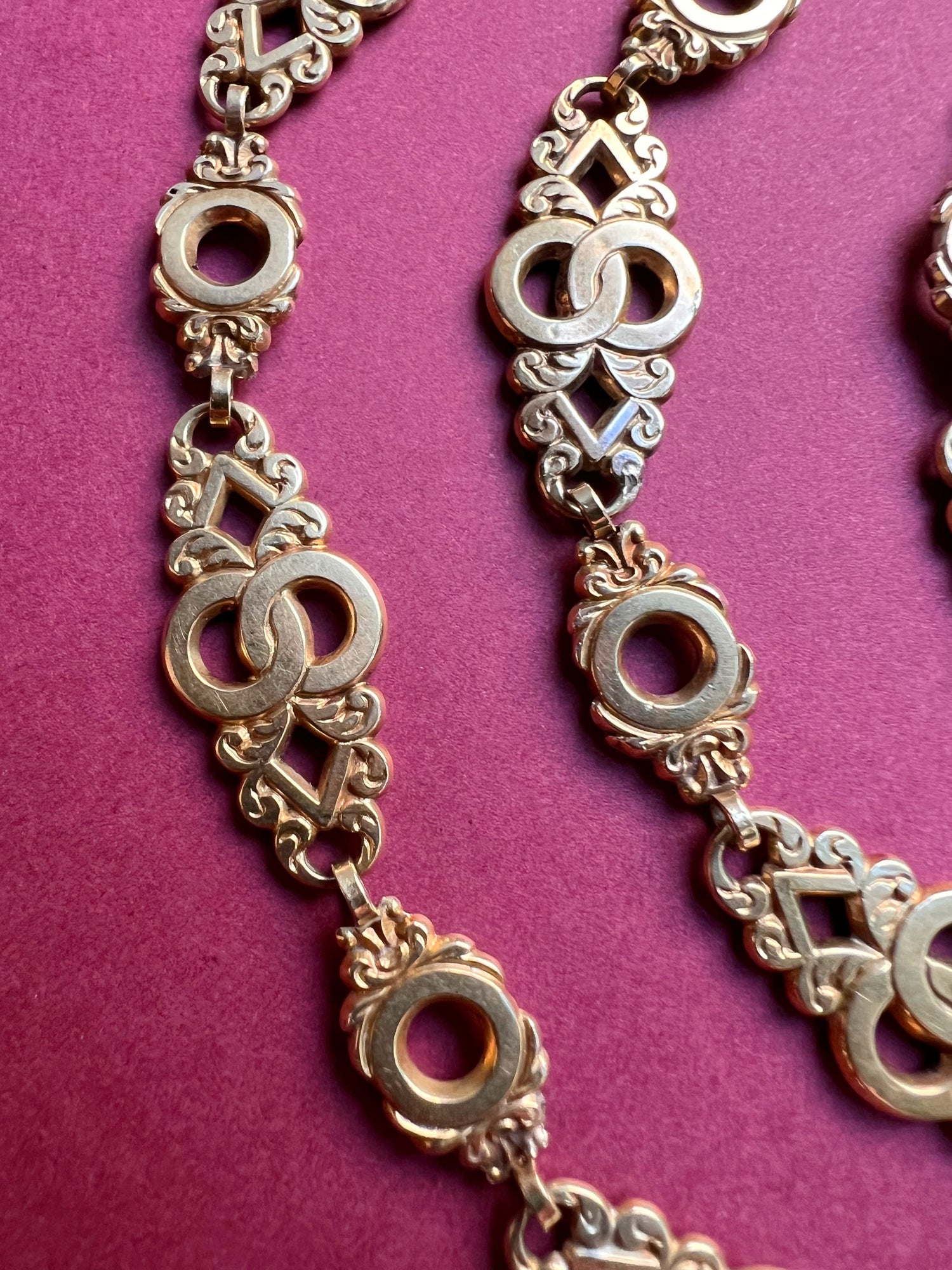 Circa 1830, the flat fancy links combine intertwined circles with foliate scroll surrounds.