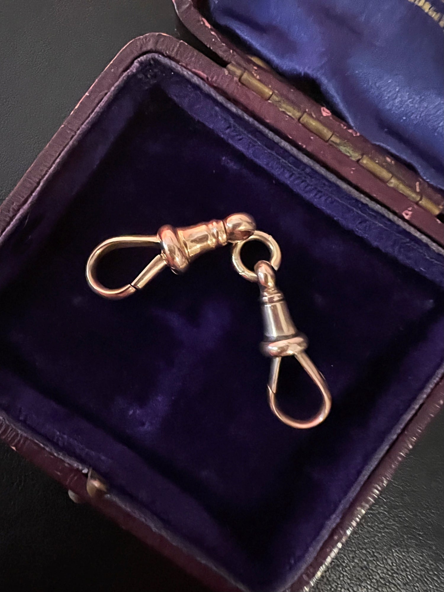 A super chunky early Edwardian dogclip made of 9ct gold with a slight rose patina.