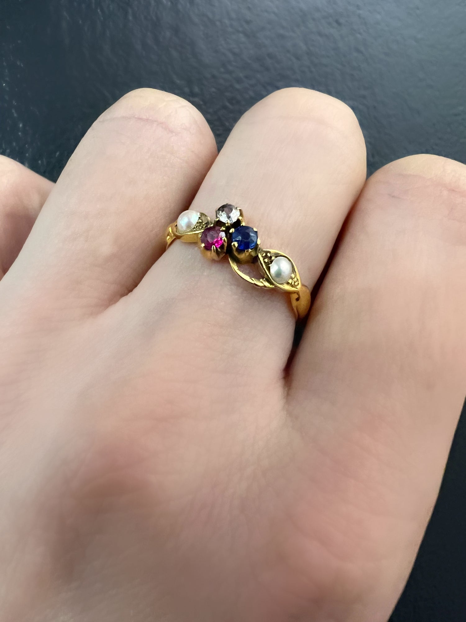 This is a super sweet 18ct gold, Edwardian Entente Cordiale trefoil ring. Circa 1903.