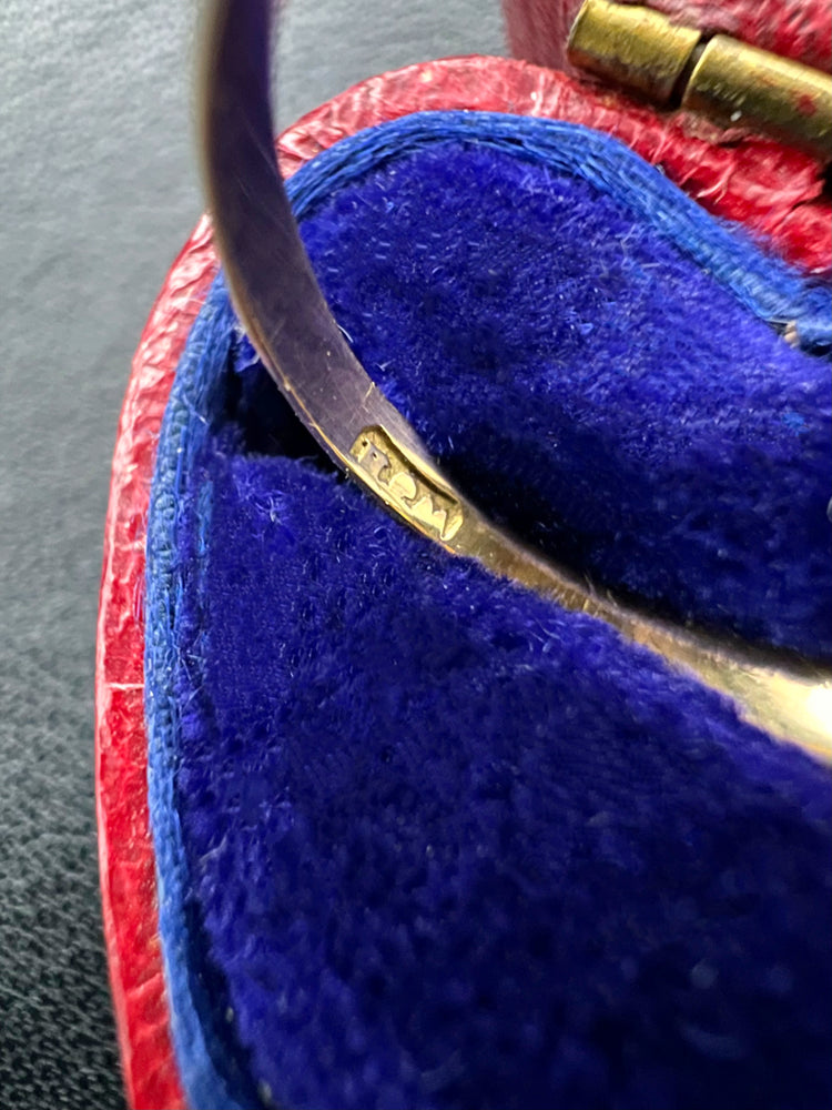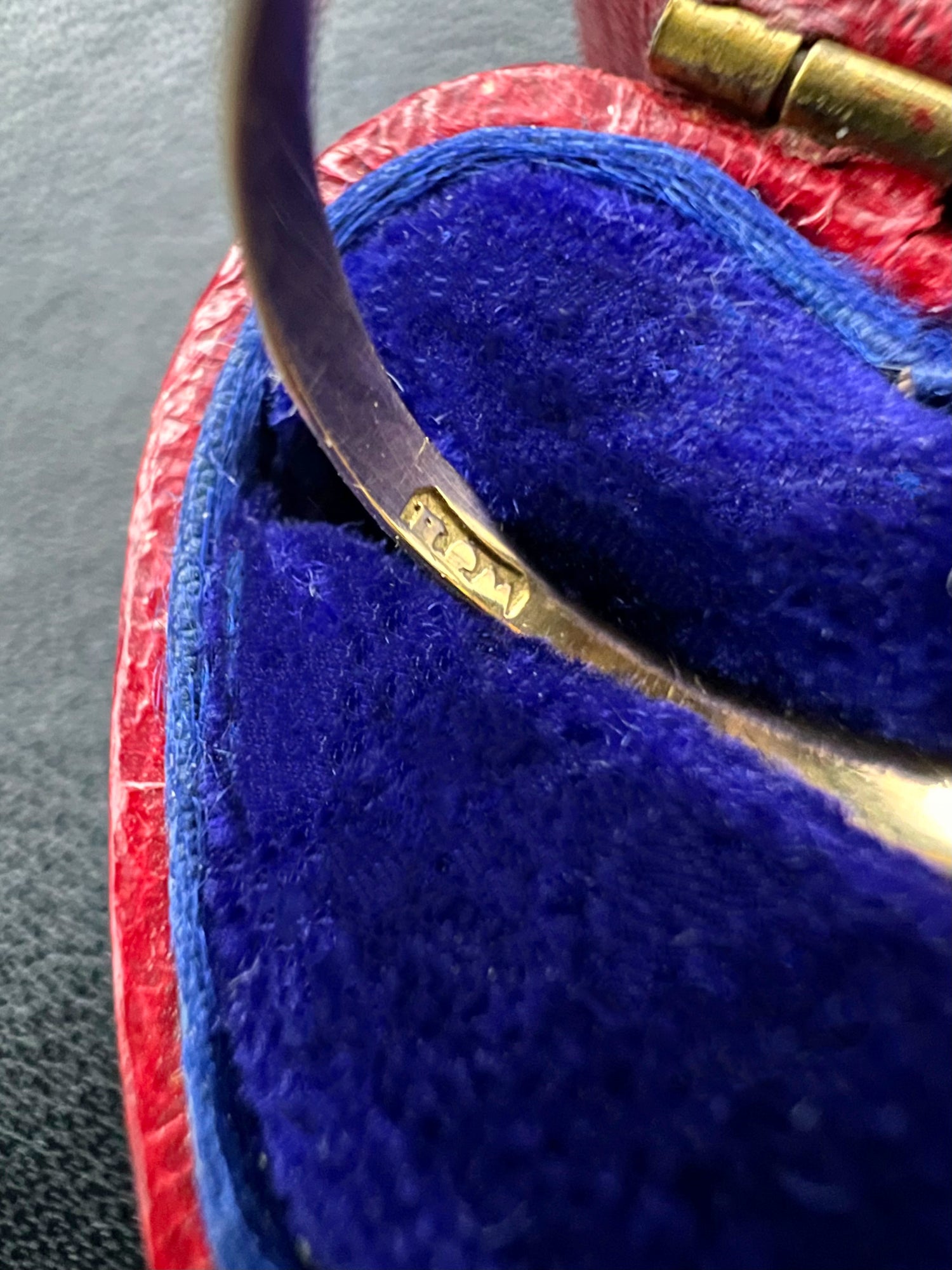The ring has a partially readable makers mark inside the band