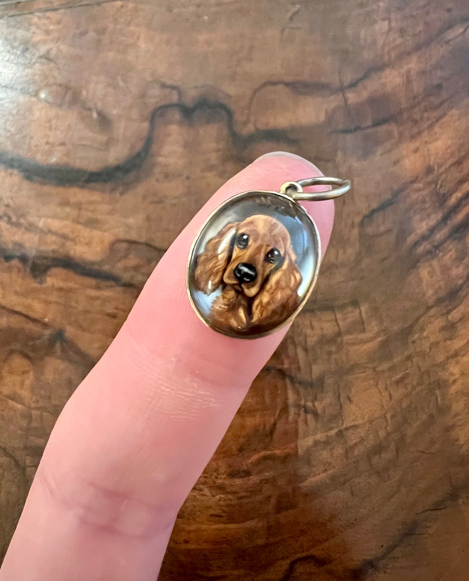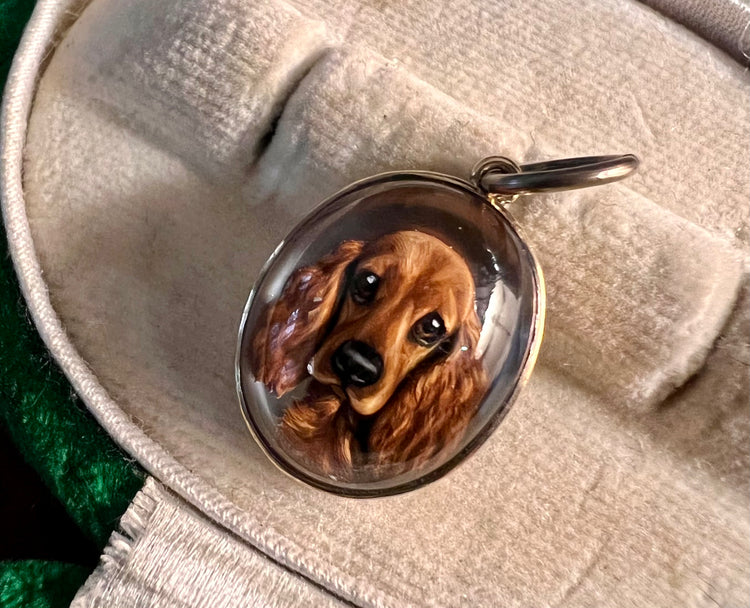 This is an exceptional Essex Crystal Spaniel dog pendant! The detail on this doggo is just so good, and he is in such good condition!!