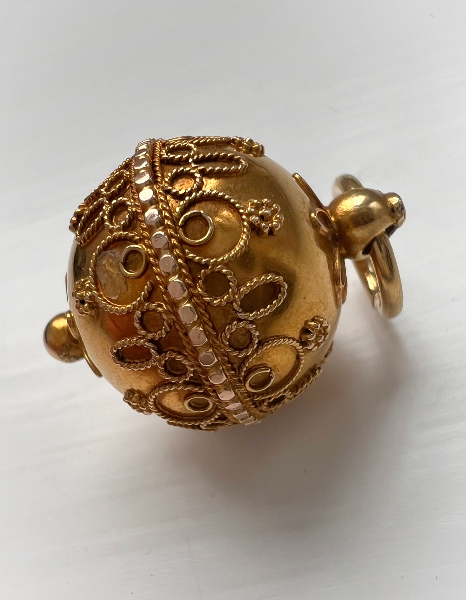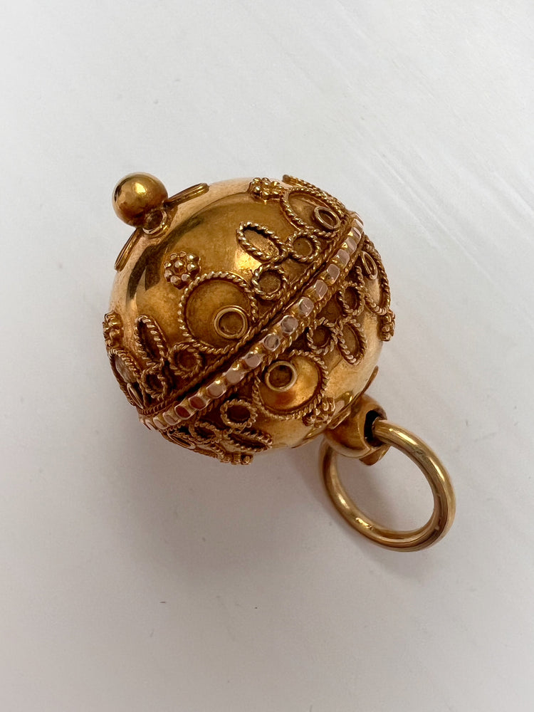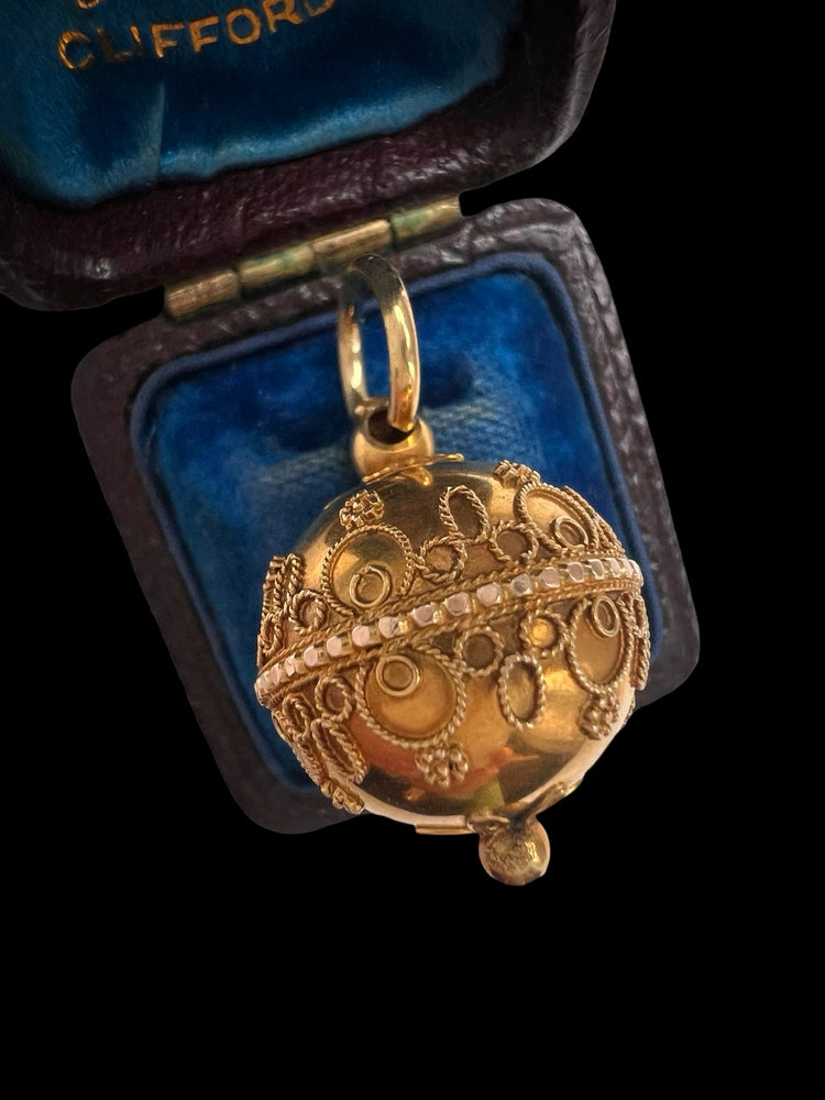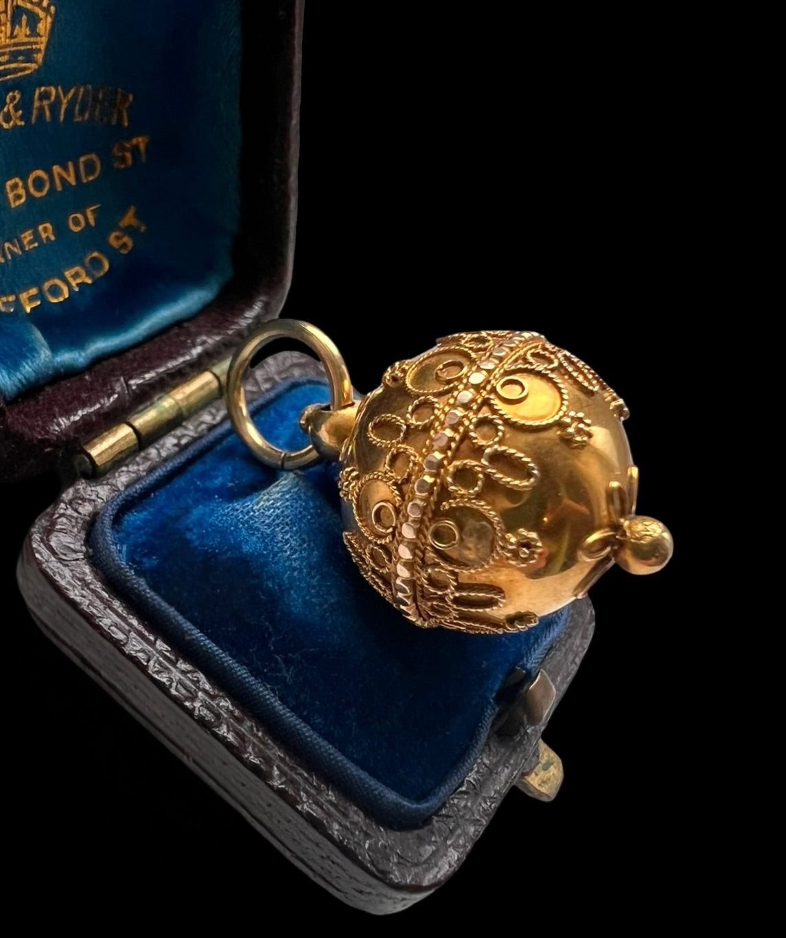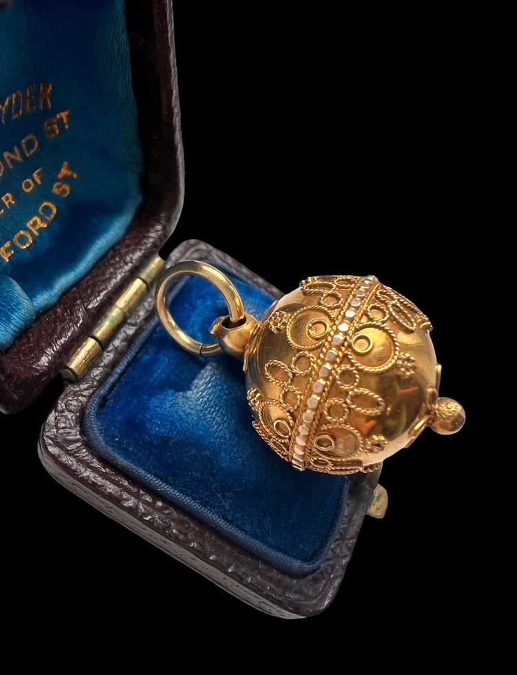 A superb Victorian Etruscan revival sphere pendant made in 10ct gold.