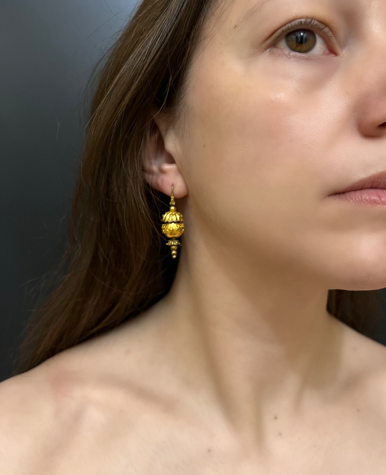 ETRUSCAN REVIVAL SNAKE & SPHERE DROP EARRINGS