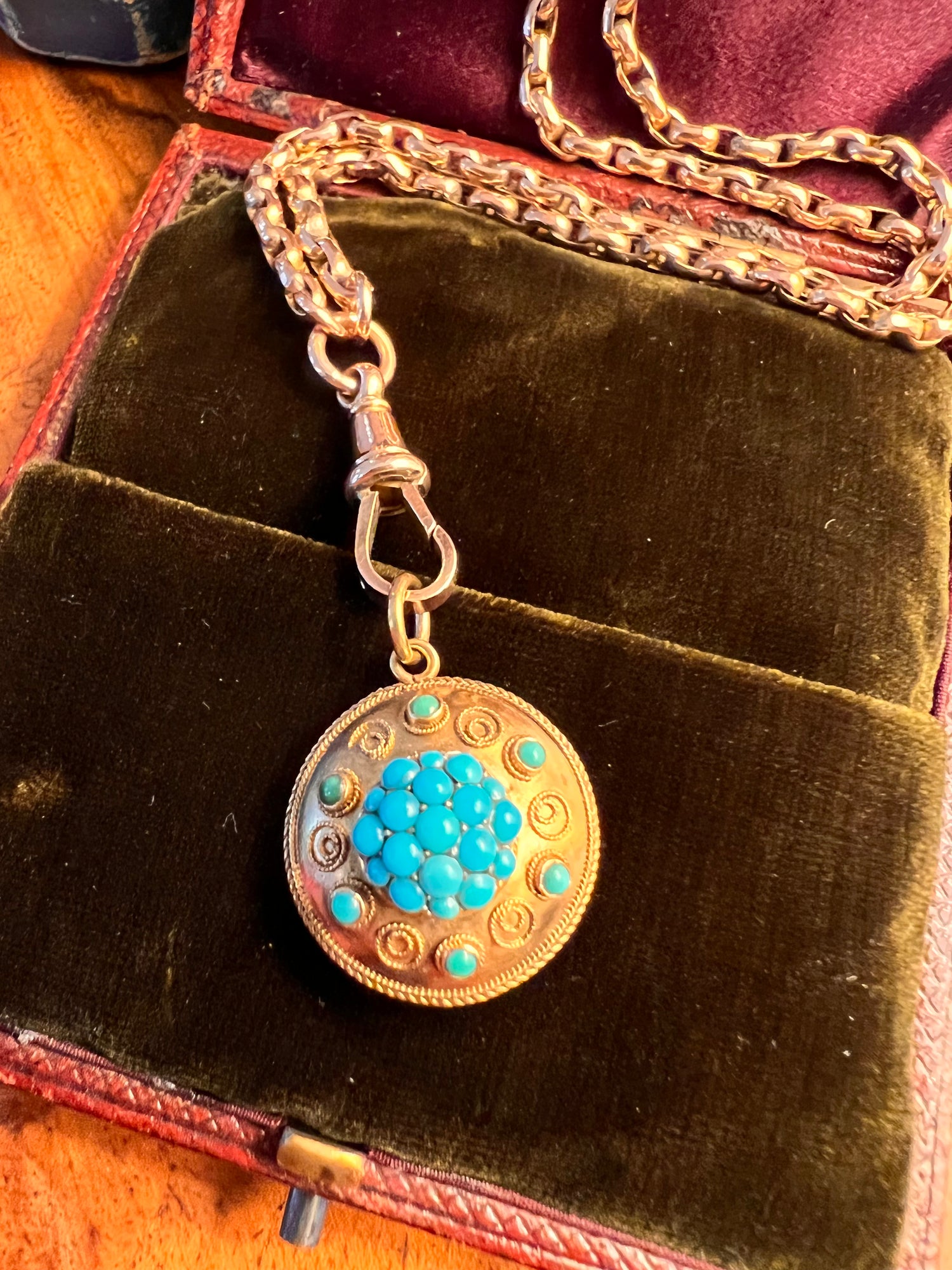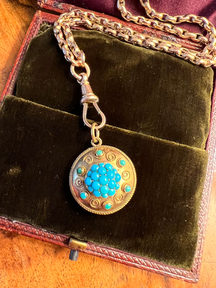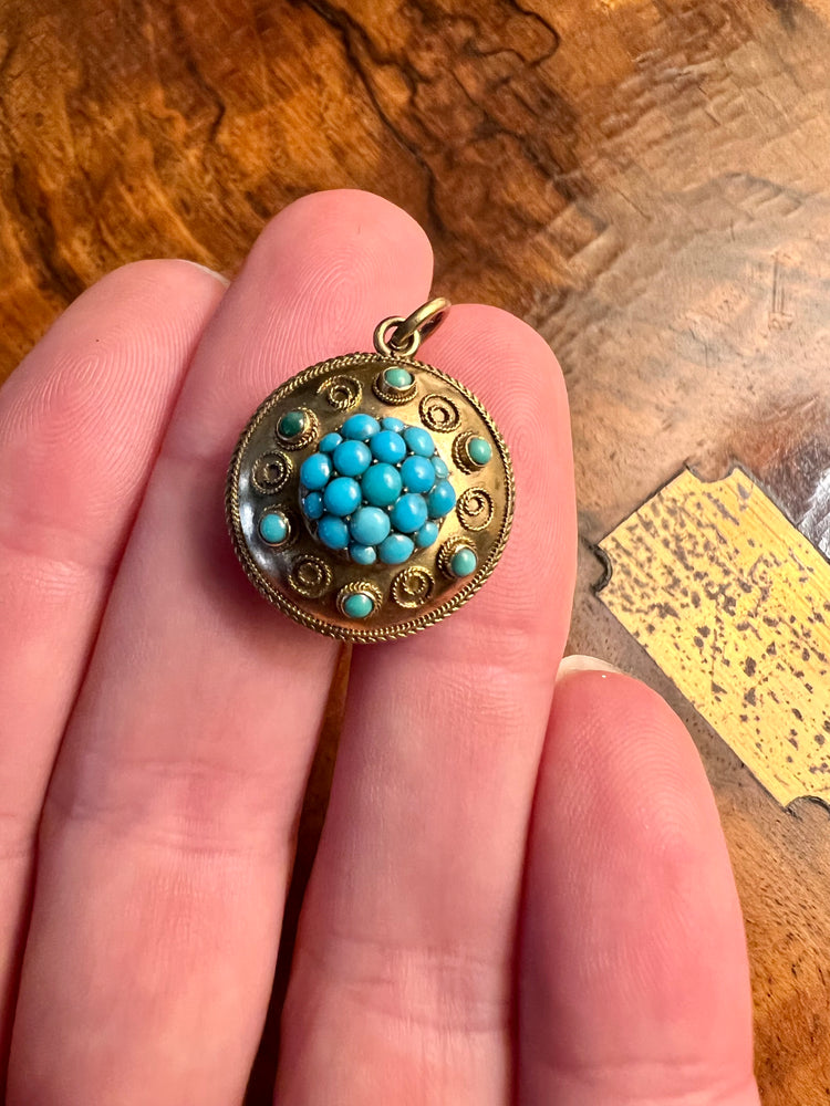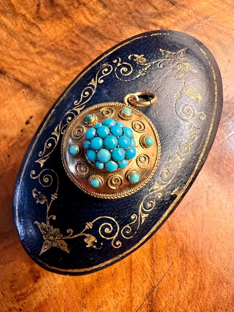 ETRUSCAN REVIVAL TURQUOISE BOMBE PENDANT